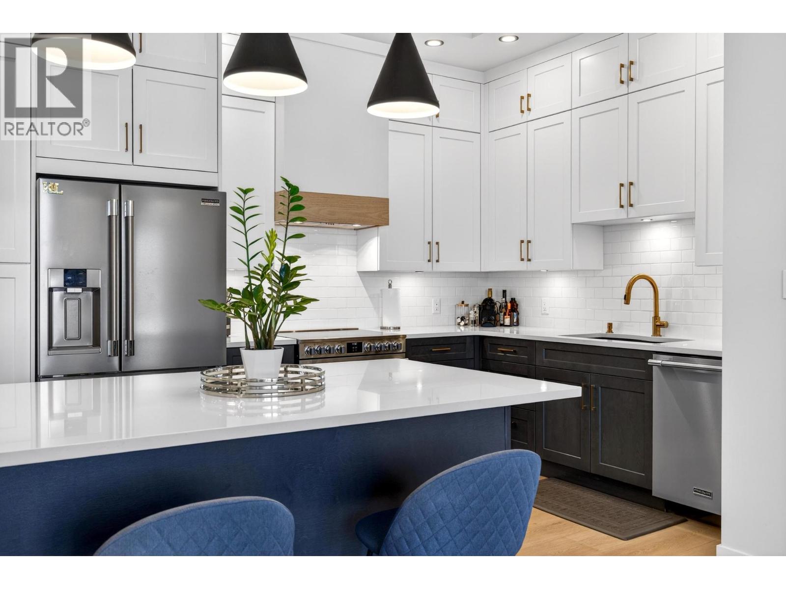 Welcome to #502, an elevated take on downtown living in one of Kelowna’s iconic concrete residences, The Lofts, set in the heart of the Cultural District. This fully renovated 5th-floor residence offers over 1,300 sq. ft. of bright, open living with lake and city views that reflect the Okanagan lifestyle. With only five homes per floor, enjoy a quiet, boutique feel within a vibrant urban setting. Over $160,000 in renovations have transformed this home into a refined, move-in ready space. The redesigned kitchen features new cabinetry, updated appliances, and a quartz island with matching countertops—blending function with a clean, modern aesthetic. New lighting, paint, baseboards, and fully redone bathrooms—including the main and ensuite—carry a consistent level of finish throughout. The primary suite is complemented by a custom walk-through closet with built-ins. Soaring 11-foot ceilings, exposed concrete, and expansive windows create a bright, airy space that feels both modern and timeless. The layout offers flexibility for both everyday living and entertaining. Step outside and enjoy walkable access to beaches, restaurants, cafes, and the waterfront. Residents of The Lofts enjoy a fitness centre and social room, along with secure parking, a storage locker, and generous in-unit storage. A rare opportunity in a building known for its design, scale, and location. Book your showing today! (id:58842)