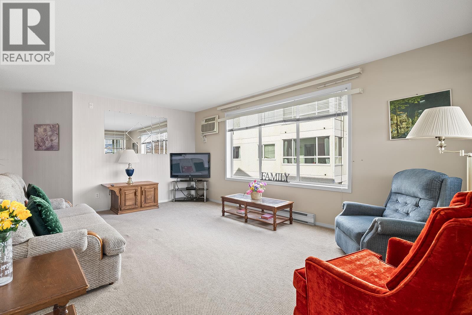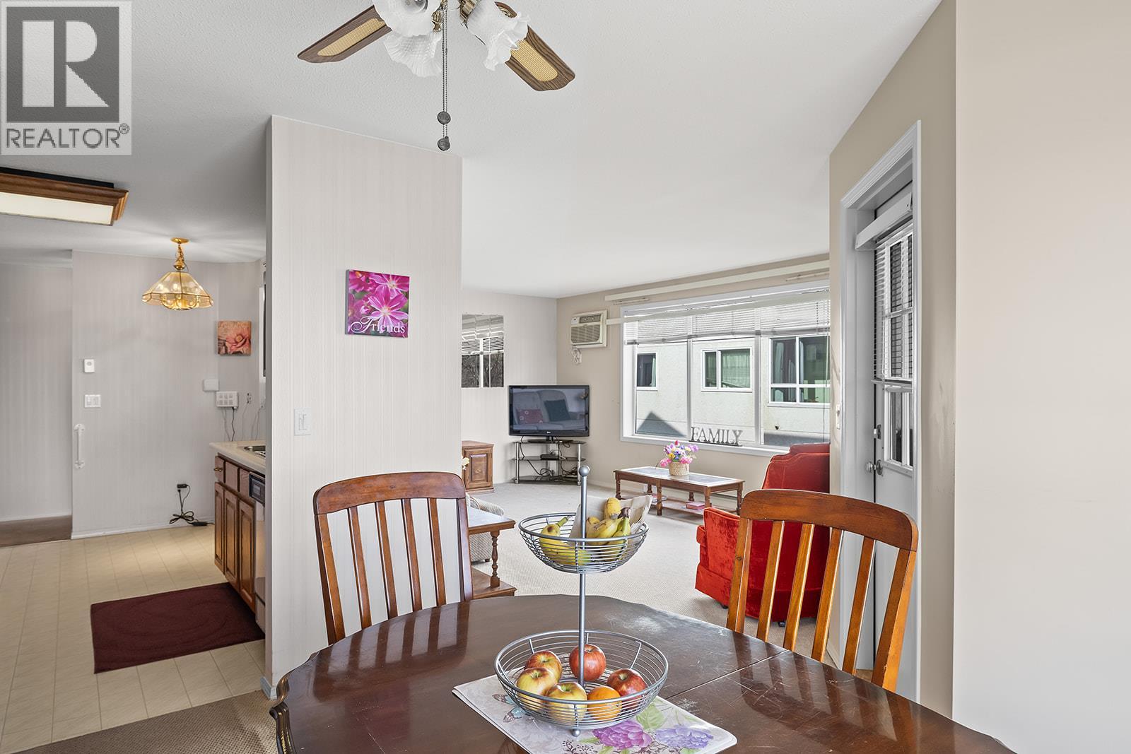 Bright 2-bedroom, 2-bathroom corner unit with desirable north-east exposure, ideally located near the Lower Mission shopping district. This home features updated carpeting and a comfortable layout filled with natural light. Situated in the Gordon Park Housing Community (50+), residents enjoy access to excellent amenities including a communal kitchen, games room with pool table, fitness room, library, and a well-equipped woodworking shop. Conveniently located close to shopping, restaurants, medical services, walking trails, and Okanagan Lake. The unit also includes single parking in a shared garage and a private enclosed patio. Cash purchase only. No pets or rentals permitted. Quick possession available. (id:58842)