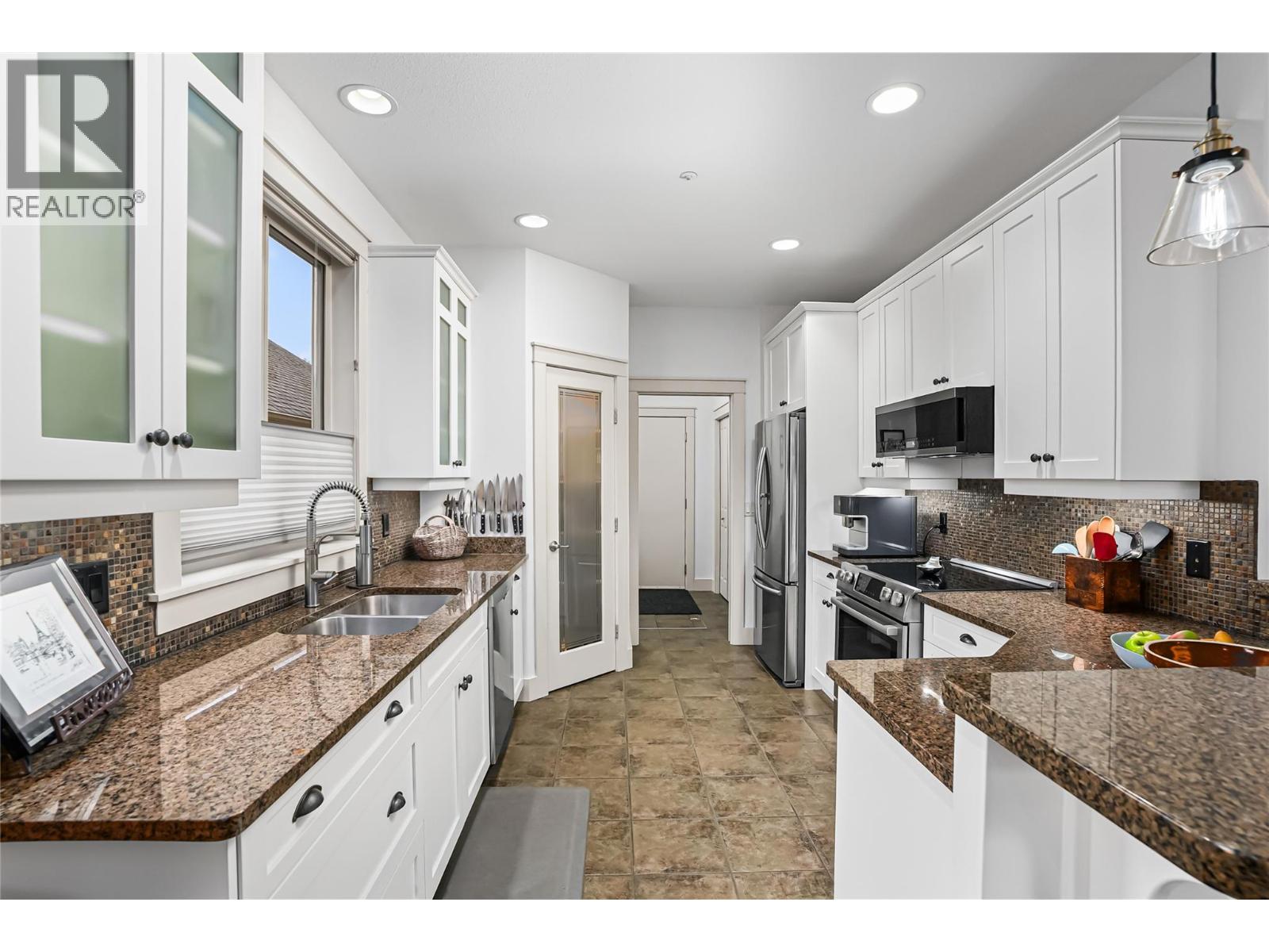 For those looking for a second home or to downsize, embrace the ease of single level living in this charming and bright bungalow in the heart of Predator Ridge within walking distance of the golf course, clubhouse/restaurant and amenities including a fitness centre, tennis court, swimming pool, and the sprawling trail system. The compact floorpan is becoming harder to find. It features a spacious living room with a gas fireplace, a large dining room, a generous main bedroom with a five piece en-suite bathroom and walk-in closet, as well as a secondary bedroom, den and updated three piece bathroom. Beyond the kitchen there is a laundry room with a window plus access to utility and storage and a crawl space. The entire roof was replaced in 2025 and comes with a transferable warranty, additional vents, including a solar power vent in the storage area above the garage. There is a tankless hot water unit, updated drip irrigation, and newly painted exterior including stucco are some of the added features. Appliances have been updated over the years as have the toilets, and the furnace is approximately nine yrs old. It includes a double-car garage with a new garage door lift (controlled by Bluetooth) and lots of storage space accessible up in the rafters via pull-down stairs. The exterior garden area flows seamlessly out to an aggregate patio and landscaped private garden. Embrace the Predator Ridge year-round community and resort lifestyle offering fabulous amenities and two of Canada’s finest golf courses. (id:58842)