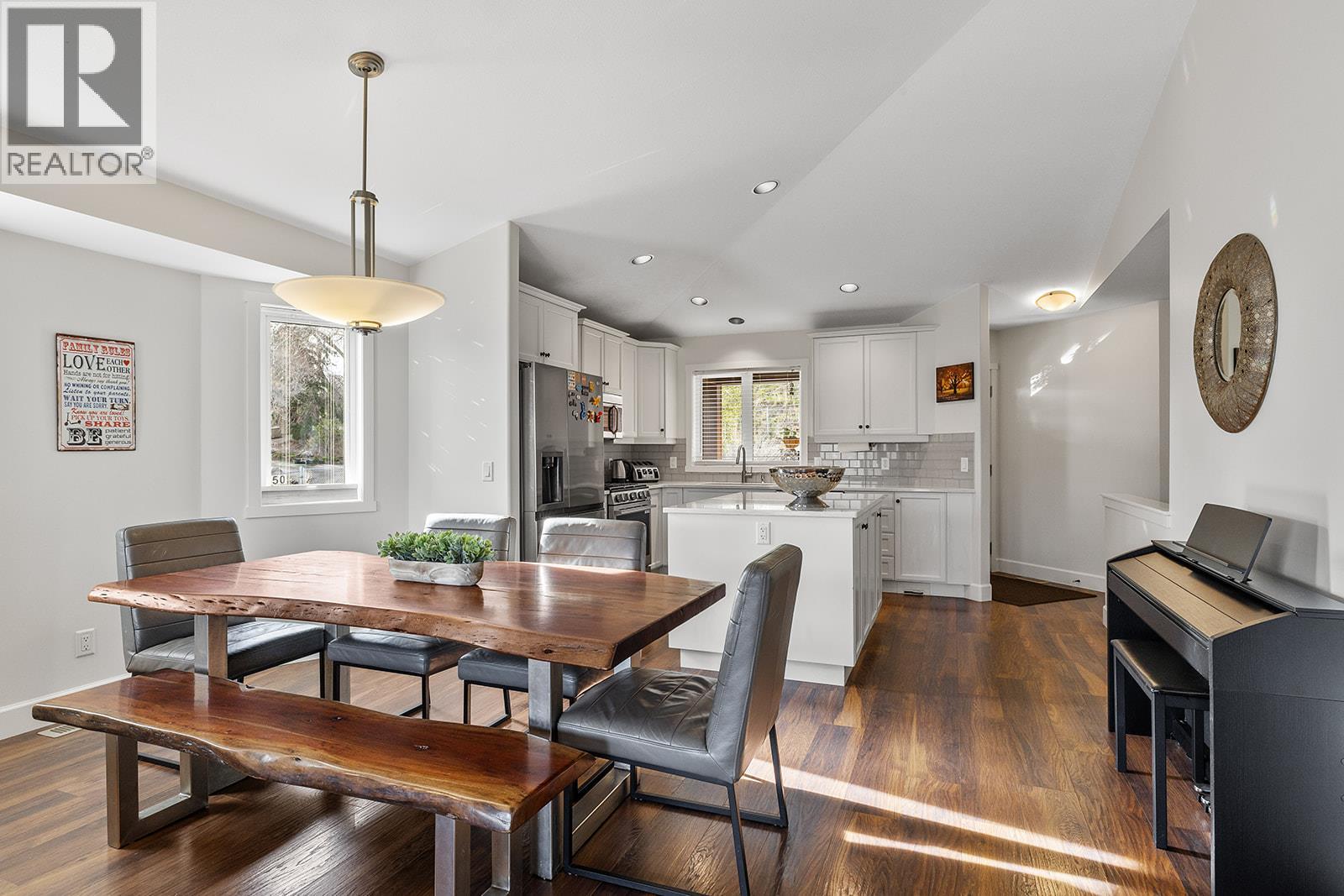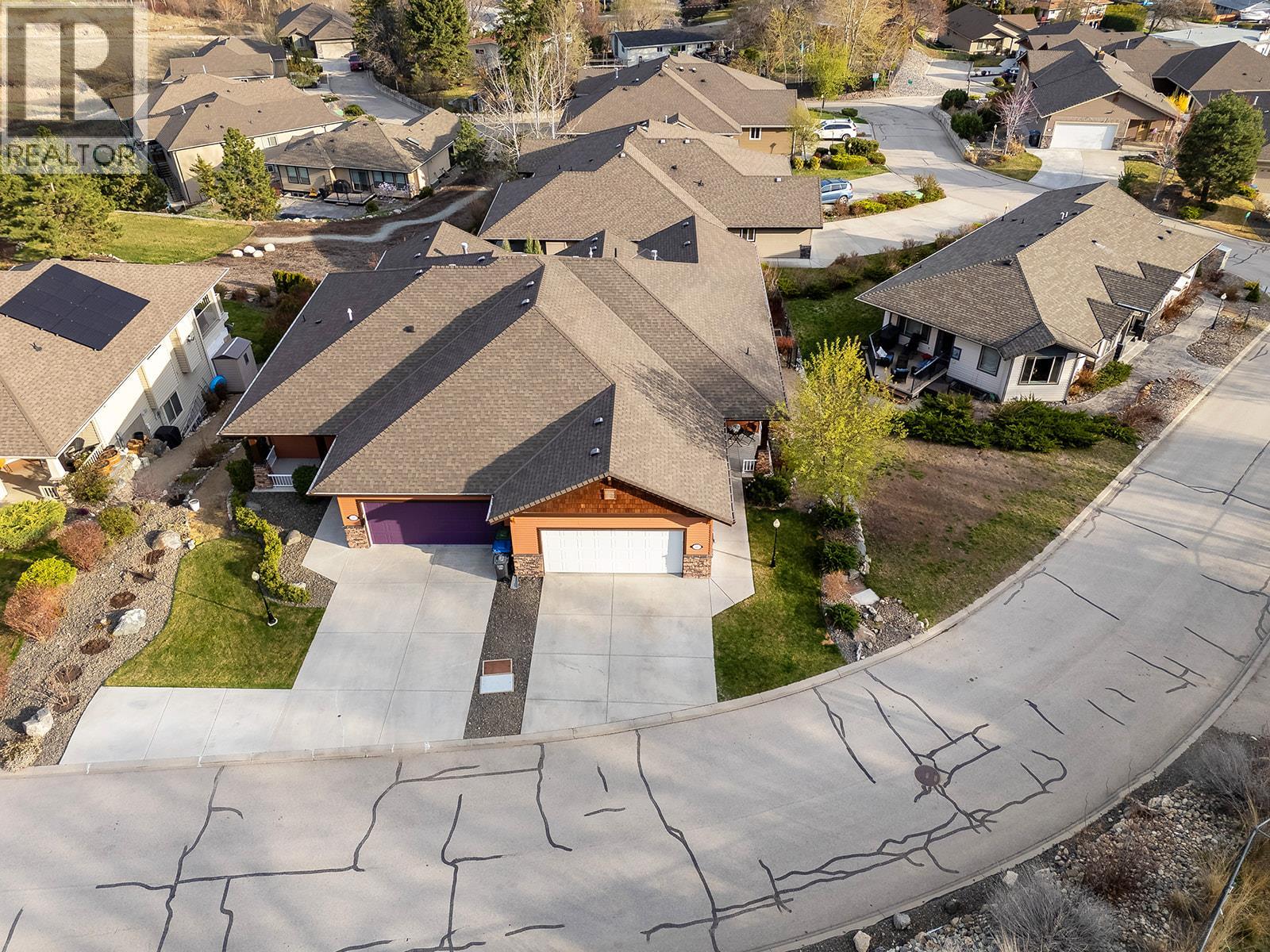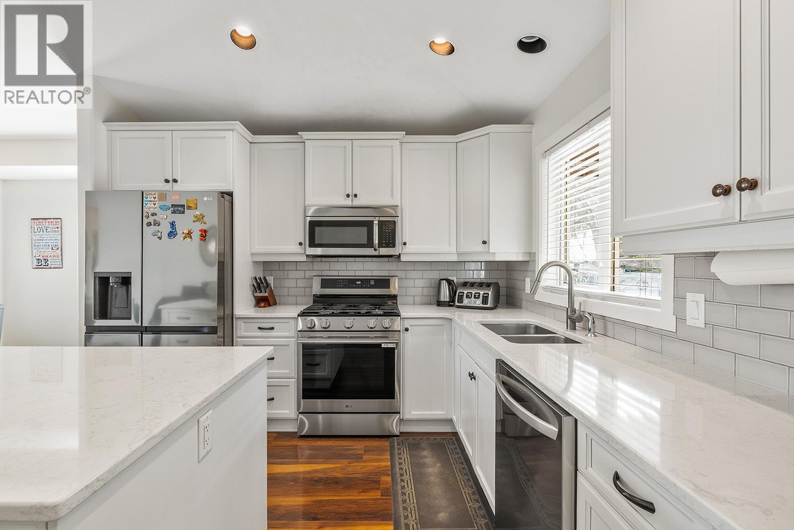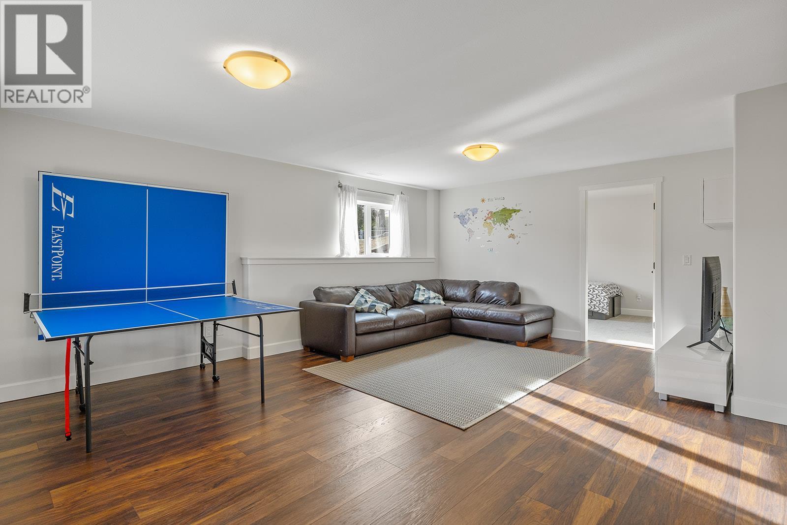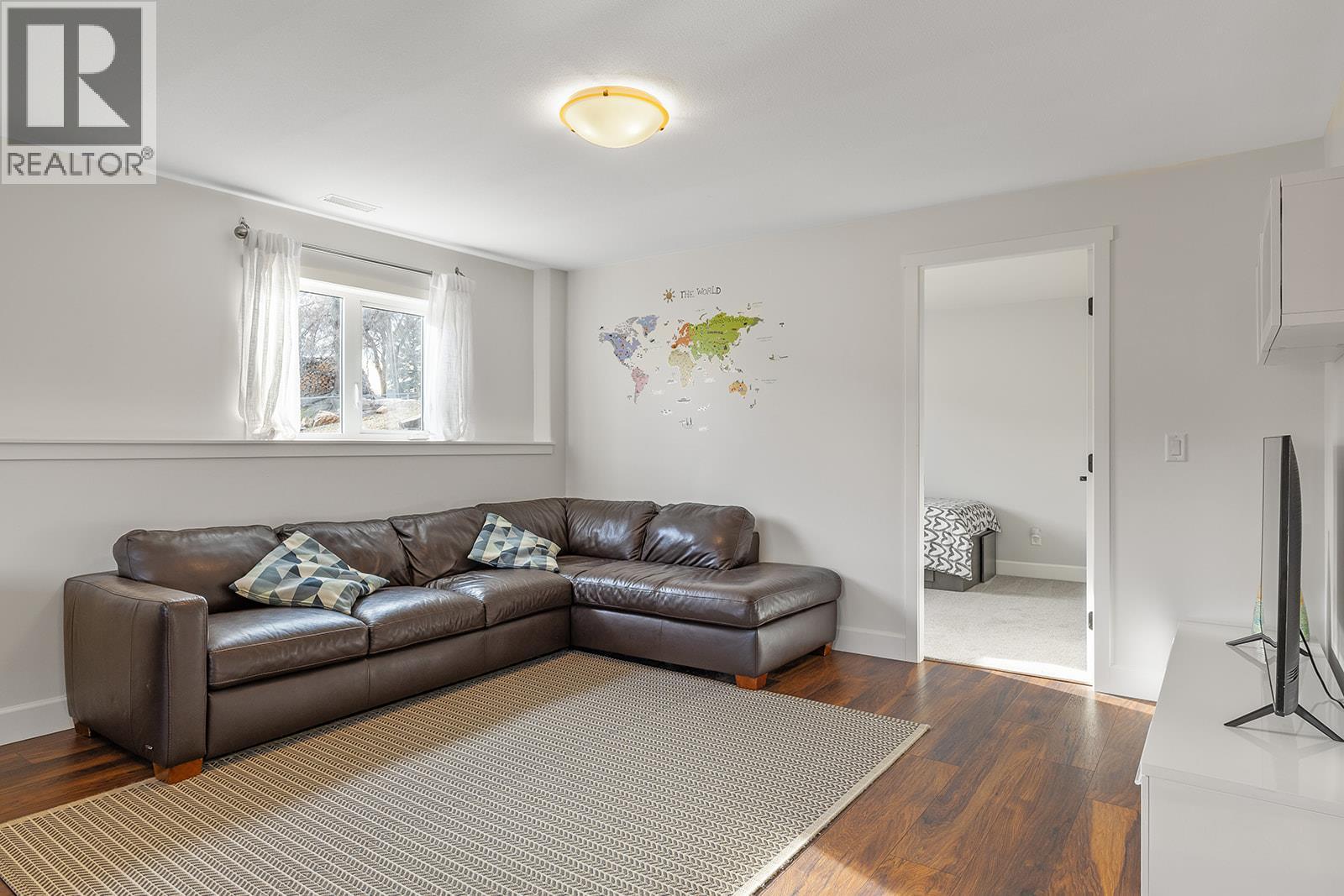 Mountain views and a cul-de-sac address in Black Mountain, this 4-bed, 3-bath walkout rancher in the Blackstone complex delivers low-maintenance living without compromise. The main floor flows through a bright living and dining area with vaulted ceilings and a gas fireplace, opening to a covered deck where the valley and mountain views take centre stage. The kitchen features quartz countertops, a gas range, and an island, built for the way you actually cook and entertain. The primary suite includes a full 4-piece ensuite, with a second bedroom, full bath, and main floor laundry rounding out the main level. Downstairs, the fully finished walkout basement, with its own separate side entrance, adds two more bedrooms, a large rec room, full bath, and generous storage, ideal for guests, teens, or a home office. Outside is a fully fenced landscaped yard with underground irrigation, stone and vinyl exterior, and a double attached garage with two additional uncovered stalls. Steps away from Black Mountain Golf Course, parks, hiking trails, schools, and transit. No thru street. Move-in ready. (id:58842)