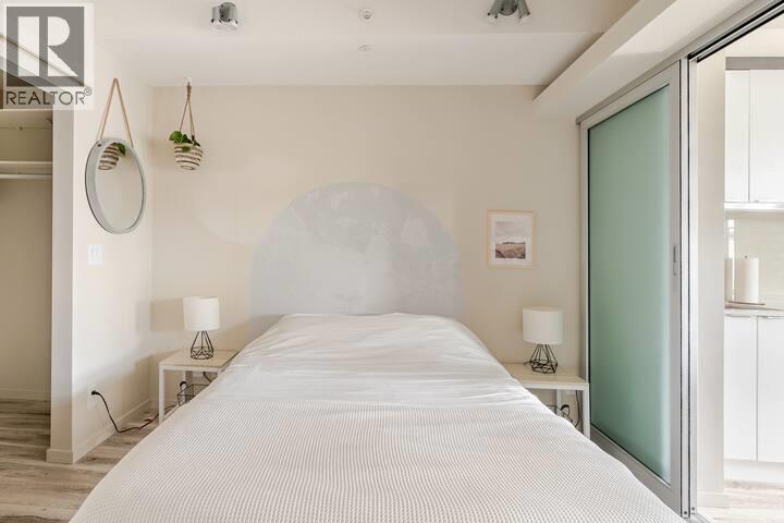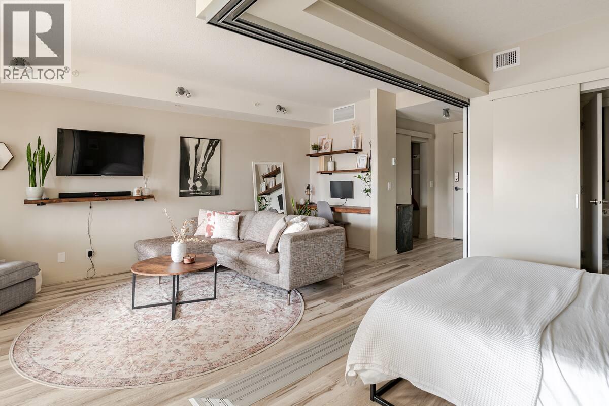 Welcome to Sole, located int he vibrant cultural distract in the heart of Downtown Kelowna. This one-bedroom one-bathroom apartment boats a spacious, sunlit interior with a large patio to enjoy outdoor relaxation on warm summer nights. The open-concept living area features a beautiful kitchen island, perfect for culinary enthusiasts and social gatherings. Additionally, the main living area offers a dedicated office space, idea for those who work from home and perfect for students who need a quiet spot to study. This unit is light and birght with vinyl flooring and modern white cabinetry. It's well-designed layout ensures ample natural light, making the apartment feel open and welcoming. Building amenities include a gym and a terrance with communal BBQ area. The apartment presents an exceptional opportunity for urban living, providing the best of comfort and convenience in the stunning Okanagan region. (id:58842)