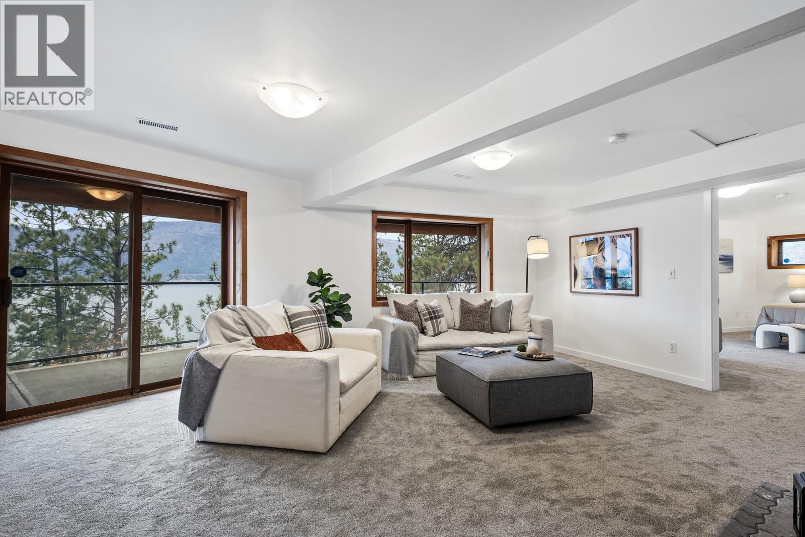 Step into the warmth and character of this authentic log home, perfectly perched to capture panoramic lake views from both decks. Enter through the double doors to vaulted ceilings framing the views and a floor-to-ceiling stone fireplace that makes the great room a showstopper. The updated kitchen features new countertops, appliances, and flooring, and the cozy dining space flows seamlessly into the living room. The primary bedroom opens directly onto the balcony, perfect for morning coffee with a view. Downstairs you’ll find a third bedroom (ensuite roughed in), a recently updated bathroom, and a family room where you can cozy up by the wood stove surrounded by cedar beams. This home is beautifully updated and ready for you to move right in; at this price a brand new HVAC package is included, worth approximately $15,000. An attached woodshop off the laundry room offers space for creative projects, while abundant parking and room to build a future shop make this property as functional as it is beautiful. Located in a region surrounded by world-class wineries and luxury estates, this property also includes a large unused parcel across the road. A true blend of craftsmanship, warmth, and Okanagan lifestyle; your Carr’s Landing sanctuary awaits. (id:58842)