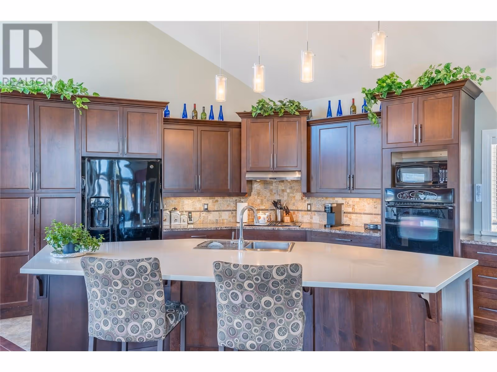 This custom-built home captures breathtaking lake and mountain views and is offered at an incredible value — $345,000 below assessed. Located in prestigious Sumac Ridge Estates, it blends timeless design with modern updates, including a new high-efficiency furnace and central AC. A dramatic curved staircase leads to a soaring Great Room with walls of windows, while the open kitchen, dining, and multiple living spaces make entertaining effortless. With four bedrooms, a family room, rec room, and three expansive decks, there’s space for every lifestyle. Nestled beside vineyards and a golf course, this residence delivers privacy, panoramic vistas, and a rare opportunity for luxury living at unmatched value. (id:58842)