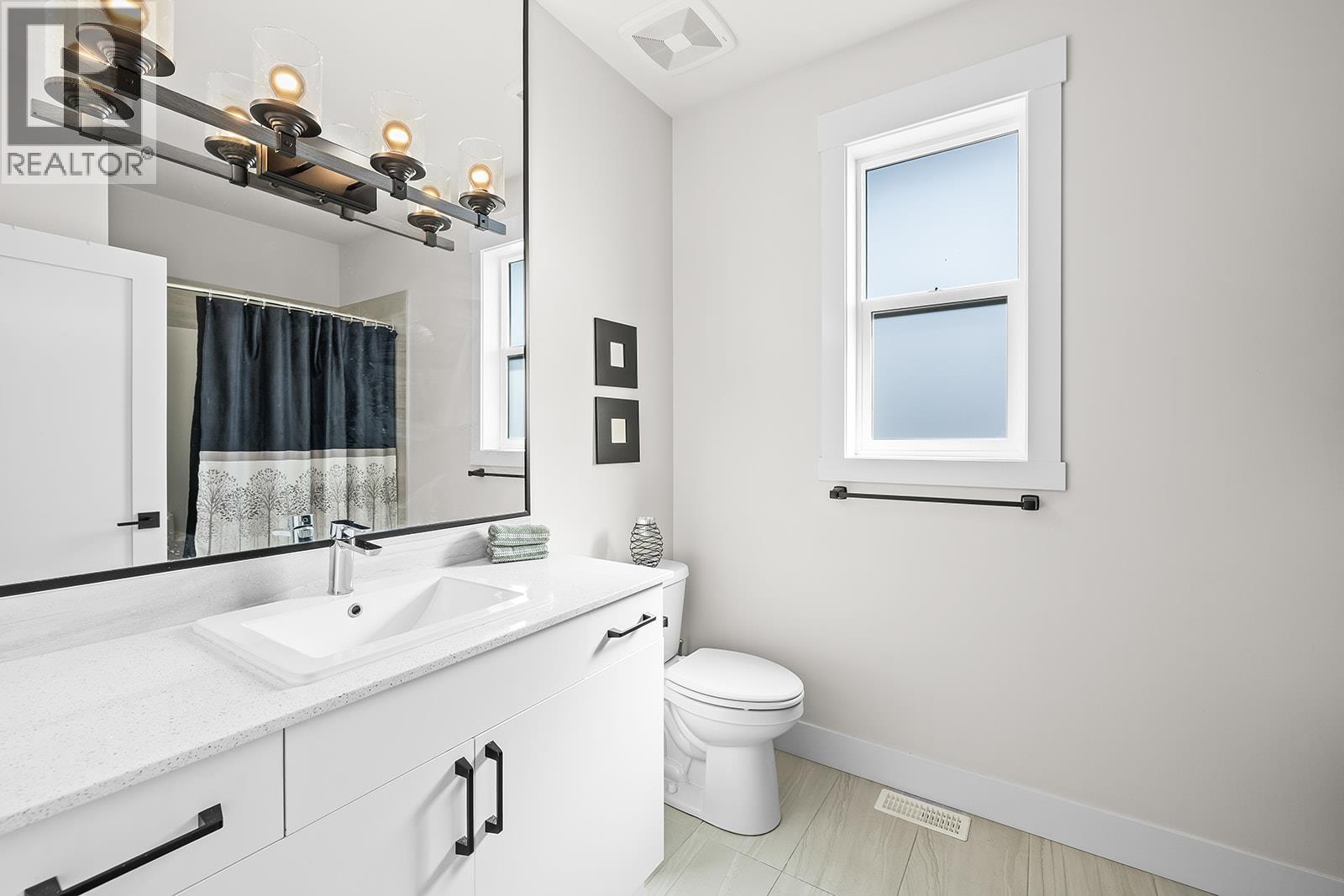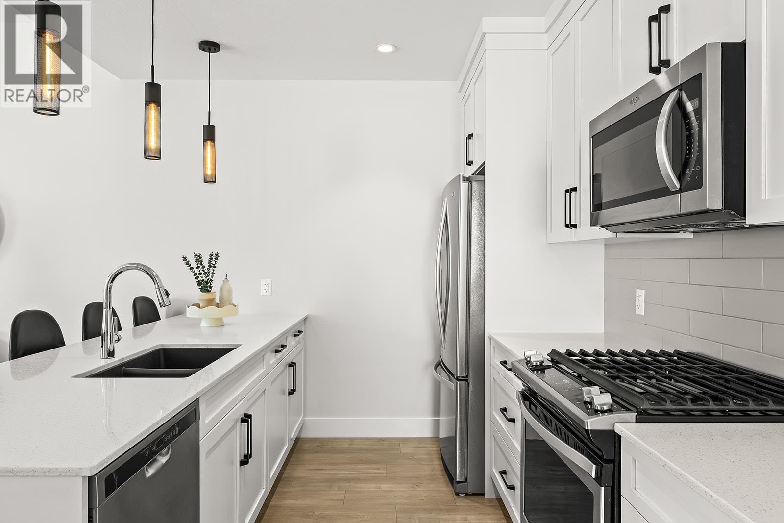 Modern half duplex living in North Glenmore – with NO STRATA! Completed in 2020, this 3 bedroom + flex / 2.5 bath home blends style, comfort, and functionality. The main level showcases bright, open spaces with large windows, a sleek gas range, soft-close cabinetry, and an oversized quartz island that naturally becomes the heart of the home. Upstairs, the primary retreat impresses with a spacious ensuite featuring dual sinks and quartz counters, plus a generous walk-in closet. Two additional bedrooms enjoy great natural light, while the versatile flex space can easily serve as a home office, gym, or media room. The fenced backyard offers privacy and plenty of room for kids and pets to play—without restrictions while you enjoy the mountain views. Designed for today’s busy lifestyles, this home also includes excellent storage solutions, a convenient upper-floor laundry, and ample parking with space for up to 5 vehicles. Tucked into a friendly North Glenmore neighbourhood, you’ll love the easy access to schools, shopping, parks, and transit. A rare, move-in ready opportunity in a sought-after location! (id:58842)