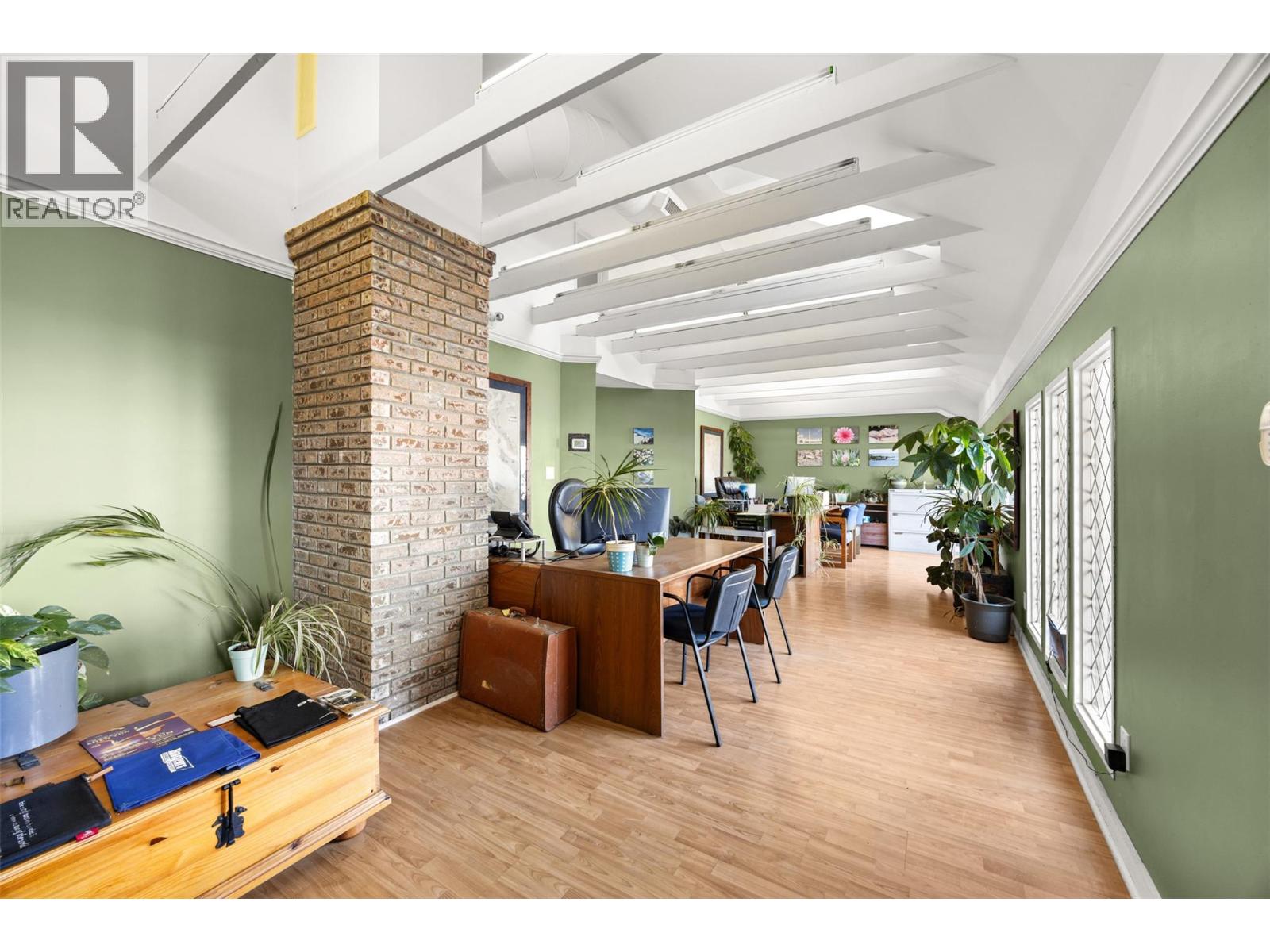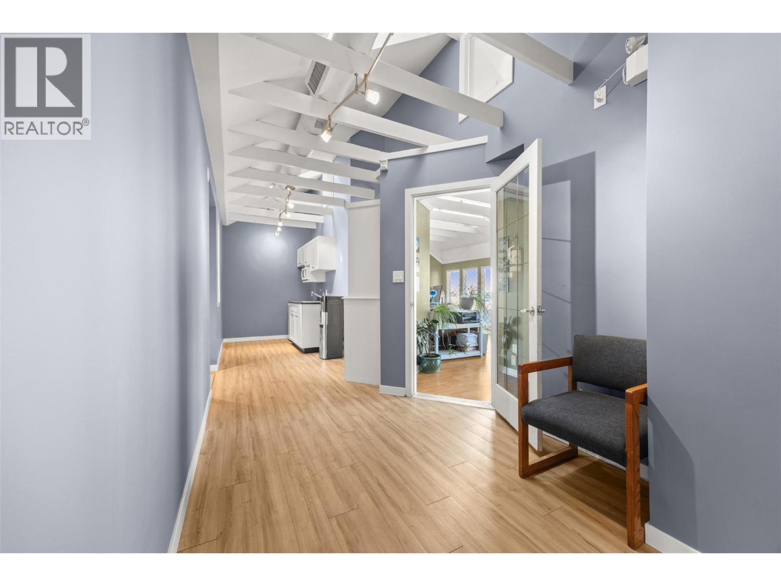 EXCELLENT VALUE HERE! Commercial Building in downtown Summerland with wide frontage, rear parking for four vehicles, fully fenced yard with storage shed. Reception/Office area at front of building is part of original structure from the early 1900's, with everything behind fully and professionally renovated/constructed in 2010. CB1 Zoning allows for mixed use of commercial and residential. Main floor has 2 piece bath, kitchenette area, large open workspace in back with garden doors onto covered patio. Minor changes required to convert to residential above, where there is a great room with high vaulted ceilings, garden doors onto covered deck, and large three piece bathroom. Cellar with outside access. Great central location. Must be viewed to appreciate space and quality of construction. Appointments are required through Listing Agent. Do not contact occupants of business. (id:58842)