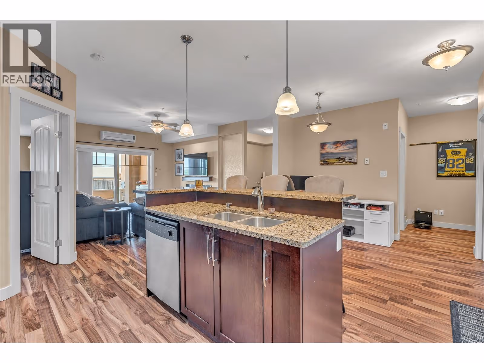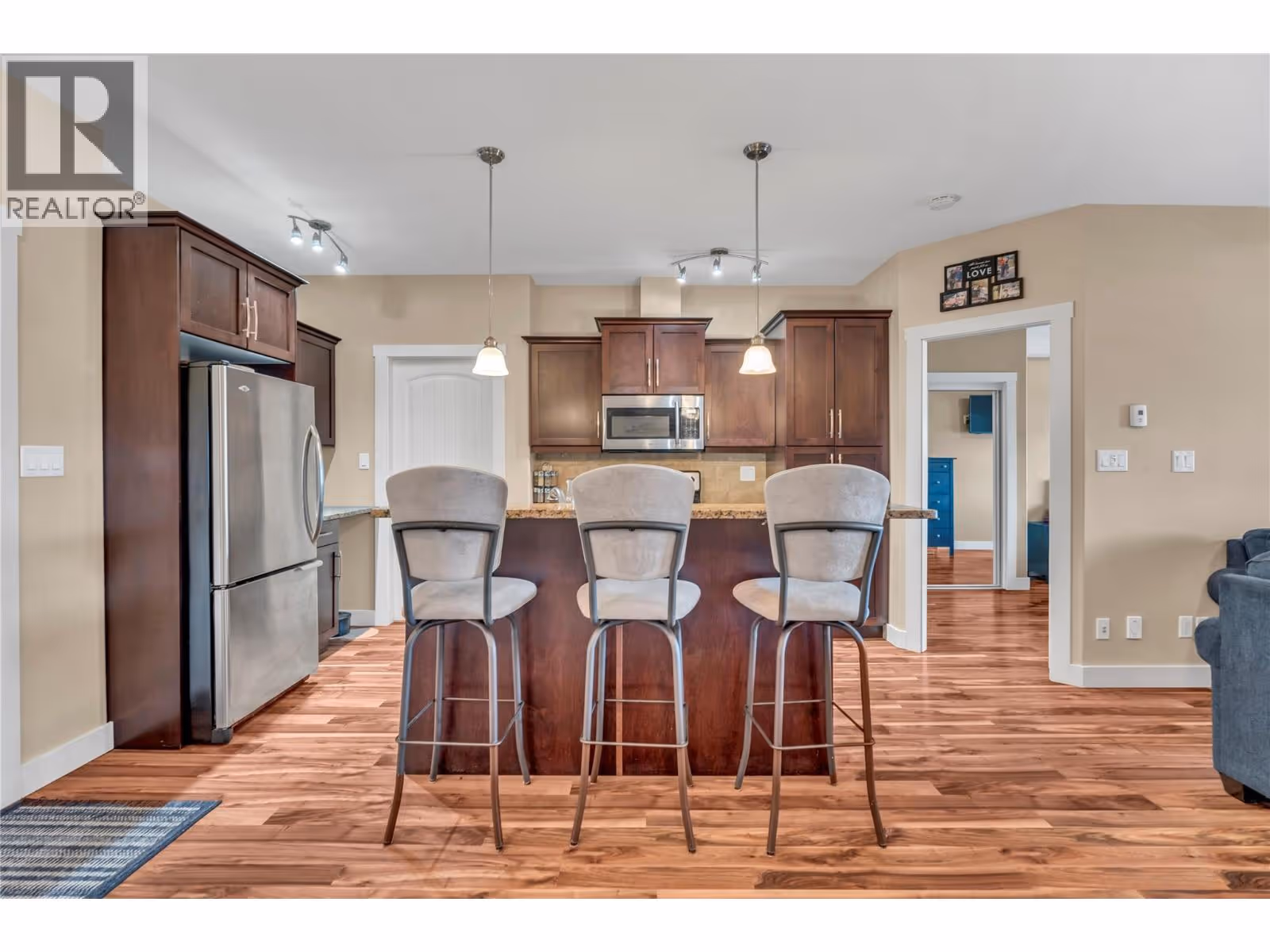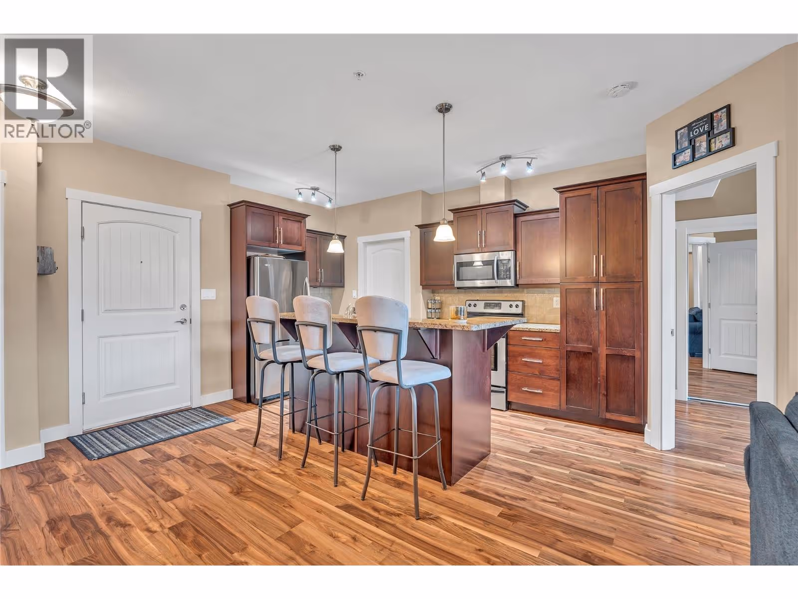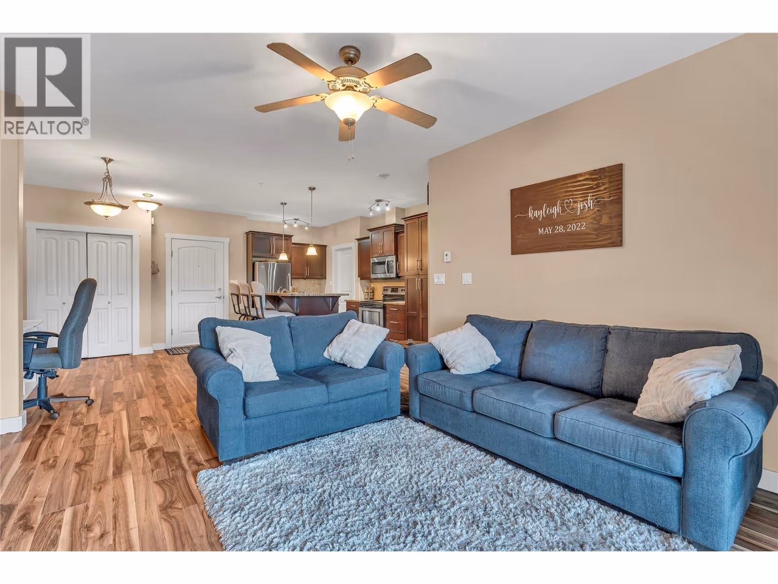 Stylish One Bedroom + Den in Victoria Place – Summerland’s Premier Address. Welcome to Victoria Place, a standout complex in the heart of Summerland, thoughtfully designed a step above the rest. This chic 1-bedroom + den, 2 bathroom home offers sophisticated comfort with 9-foot ceilings, granite countertops, an electric fireplace, & in-floor radiant heating paired with a ductless heat pump for energy-efficient, year-round climate control. Enjoy beautiful east-facing views & an expansive entertainment-sized deck—perfect for gardening, relaxing, or hosting guests. Inside, the open-concept living space is flooded with natural light, creating a bright & welcoming atmosphere throughout the day. The primary bedroom features a spacious 4-piece ensuite, while a convenient 3 piece guest bathroom adds functionality & privacy for visitors. The den offers flexible space for a home office or an extra sleeping area. This home is especially quiet with virtually no noise transfer between units, and with no neighbour on one side, it feels exceptionally private. The building is well-maintained & welcomes all ages, pets, & rentals, offering remarkable flexibility for homeowners & investors. Other highlights include secure parking, a storage locker, in-suite laundry, a central vacuum system, and low strata fees (approx $200/mth). All of this is located just steps from downtown Summerland’s charming shops & everyday amenities. It’s the perfect blend of convenience, comfort, & contemporary living. (id:58842)