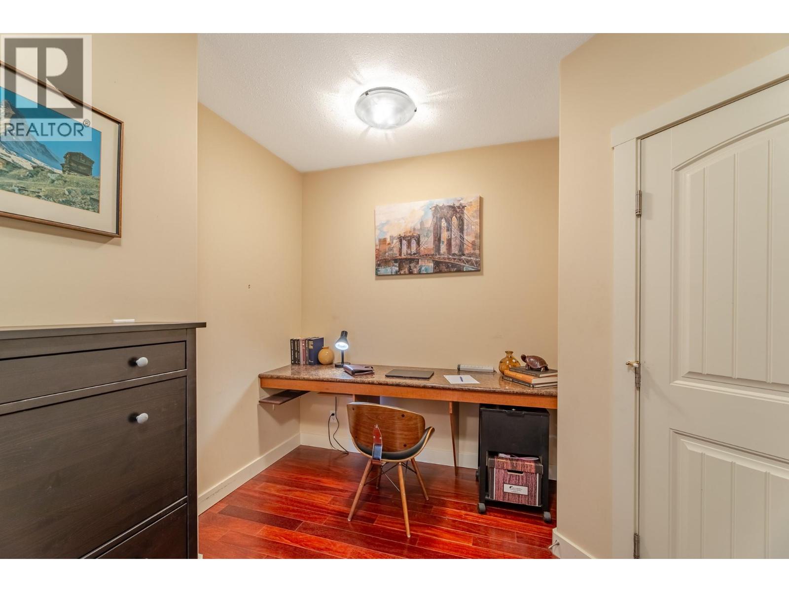 Welcome to Victoria Place! This home features a fabulous northeast facing second floor corner condo in the heart of downtown Summerland, offering exceptional walkability to shops, cafes, restaurants, and amenities. The bright open concept floor plan includes 2 bedrooms and 2 full bathrooms with excellent separation, ideal for full time living or a lock and leave lifestyle. The kitchen includes granite countertops, updated stainless steel appliances, and island seating, flowing seamlessly into the living and dining areas. Highlights include 9 foot ceilings, engineered hardwood flooring, in-floor radiant heat, ductless cooling, and a cozy electric fireplace. Enjoy the spacious wrap around entertainment deck, plus 1 secured underground parking stall and storage locker. No age restrictions; rentals and pets allowed with minor restrictions plus low strata fees! (id:58842)