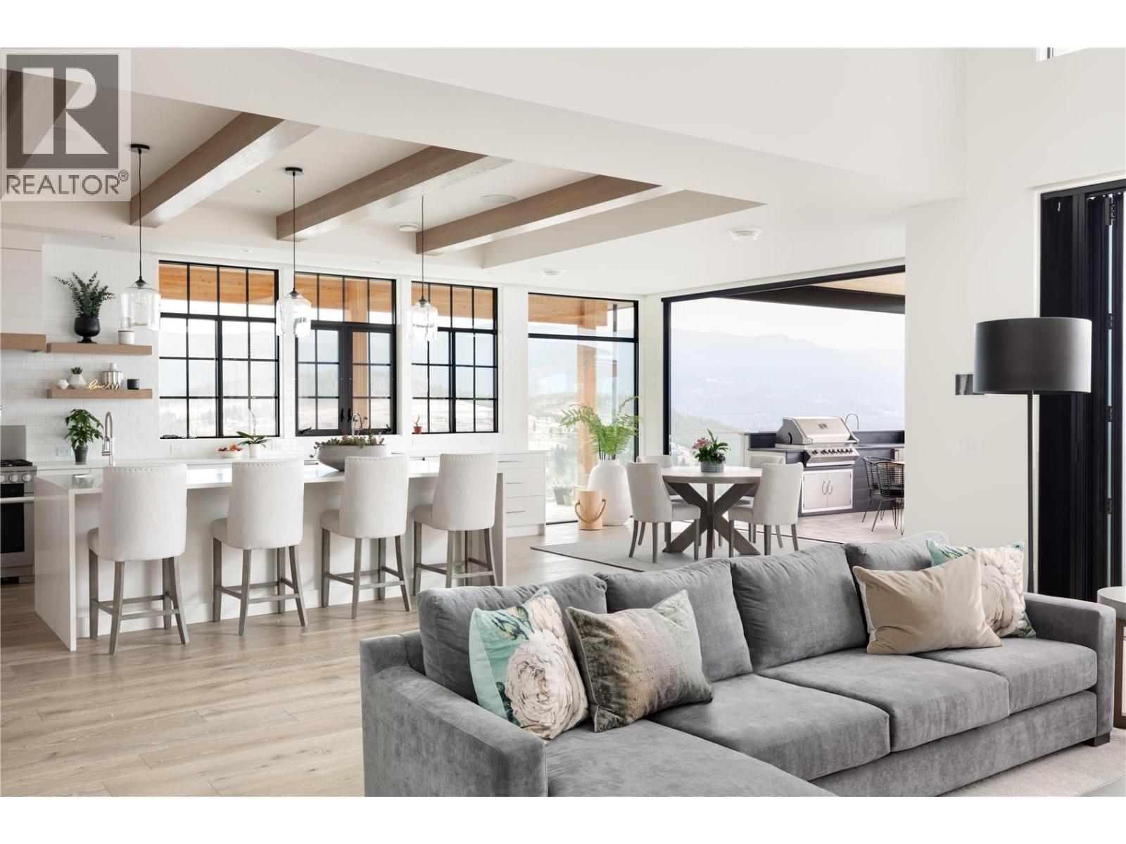 Perched on an expansive double lot, this stunning seven bedroom, six bathroom home boasts 270 degree views of the gleaming lake, city lights, and rolling hills. You are welcomed with soaring ceilings and windows to maximize natural light. The open concept main level starts with the great room, leading into the gourmet kitchen with butler pantry. A dedicated dining room with two-way fireplace and built-ins throughout. Unparalleled outdoor living includes a stunning infinity edge pool and hot tub, lounging areas, and covered outdoor kitchen. Upstairs are three large bedrooms including the luxurious master wing, with dedicated laundry and private patio. Downstairs is a family paradise with games area with pool table, lounge area, and large wet bar to accommodate every occasion. Bonuses include a cinema and full indoor sports court. There are two triple garages, plus a huge back yard. Above the garage is a luxurious legal suite. With incredible space and outdoor living, this property is irreplaceable. (id:58842)