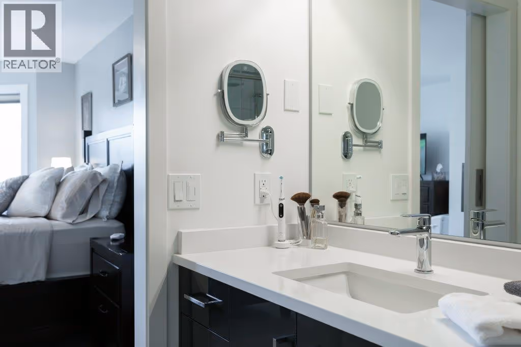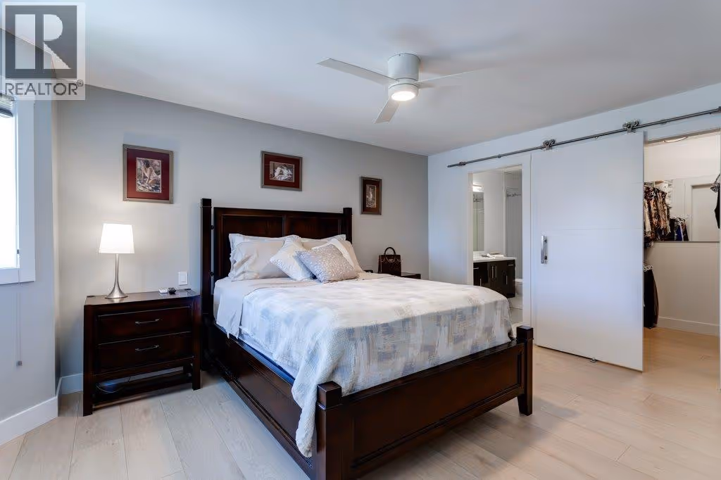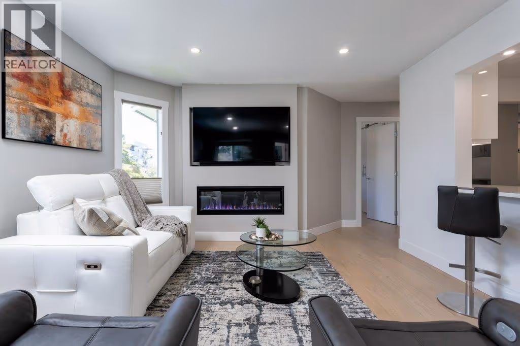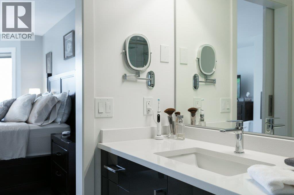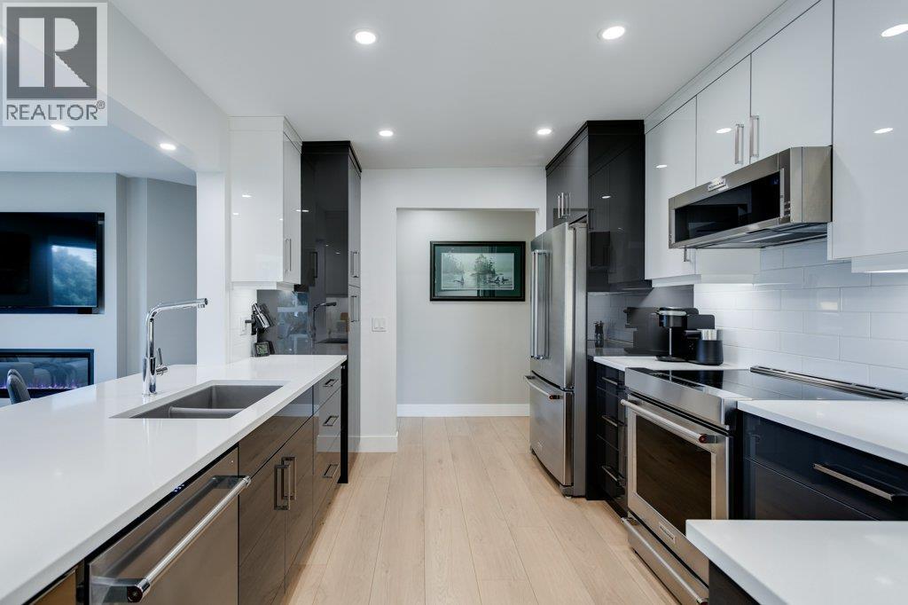 Top Floor, Corner, No expense spared in the total renovation of this larger than most 2 bedroom + 2 bath + Sunroom split plan condo in the heart of downtown Kelowna. The pictures tell the story. Nothing has been overlooked in the high-end renovation of this west-facing top-floor home. High-gloss, soft-close cabinets, all new stainless Kitchenaid appliances, including: induction range, wine fridge, quartz countertops, linear fireplace and wide-plank laminate flooring. Quiet corner unit with great light-filled rooms and added usable sq. footage with an enclosed sunroom. This condo is in an excellent location close to everything downtown has to offer and is move-in ready. Additional storage off the lobby (locker 309). Parking is conveniently located(#36) a second stall is available from strata ($30/month), plus on-site visitor parking and a car wash area. Social room is off the elevator on the 2nd floor, Gym off the elevator on the 3rd floor. BBQ area, and great sundeck off the back of the elevated first floor. Don't miss this opportunity to live in style downtown for a great price! This is a 55+ building and pets are not allowed. (id:58842)