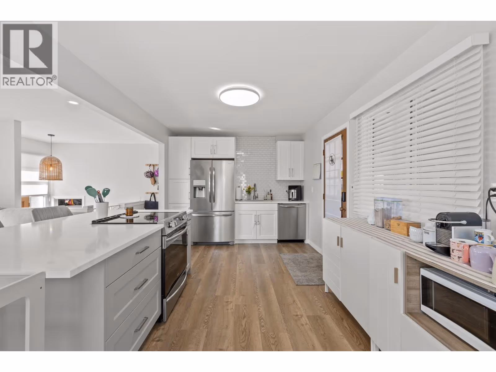 Beautifully renovated Glenmore home! This bright and inviting 3-bedroom, 1.5-bath home is perfectly situated just minutes from Knox Mountain and Downtown Kelowna, nestled in a quiet, family-friendly neighbourhood. The open-concept main floor features a spacious kitchen with a large island, a generous living room highlighted by a stunning stone fireplace, and three well-sized bedrooms. Downstairs, a huge rec room with another fireplace offers the perfect space for movie nights, entertaining, or a home gym. The large utility/laundry room with built-in countertops provides excellent storage or hobby space. Enjoy ample parking with a big two-car carport and room for at least four more vehicles in the driveway—ideal for guests or recreational toys. Sitting on a large corner lot, this property offers plenty of space both inside and out to enjoy the Okanagan lifestyle. (id:58842)