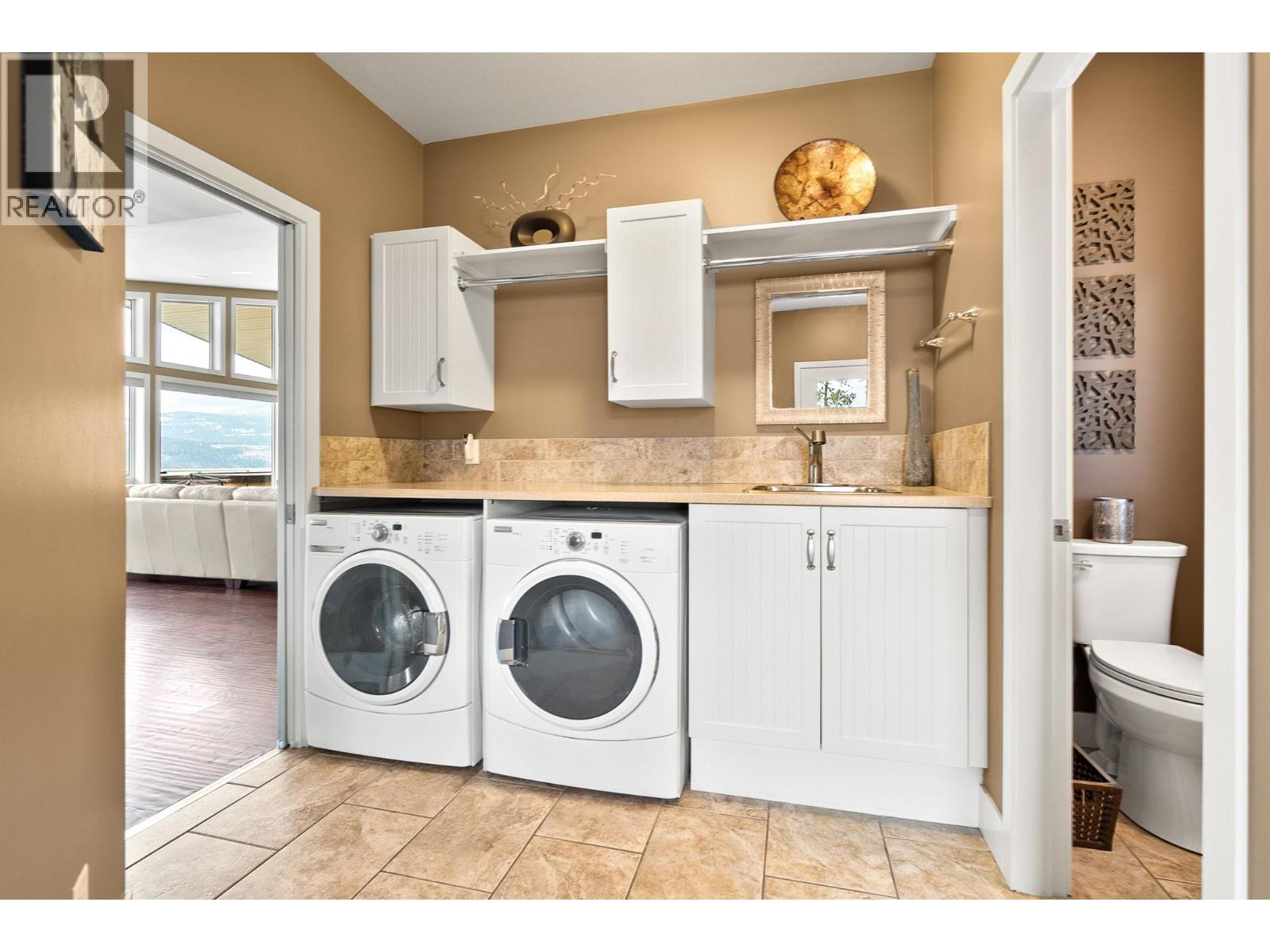 This custom built home is perched on a private 1.9-acre lot with panoramic views of Lake Okanagan. The open-concept main floor features slate & hardwood flooring, vaulted ceilings, & a floor-to-ceiling fireplace, w/large windows framing stunning lake views. The kitchen is equipped with Silestone countertops, spacious walk-in pantry, & a mudroom/laundry area w/ a convenient half bath. Heated floors run throughout the main level, & a 585 sq. ft. deck w/ a hot tub allows you to soak in the scenery. The primary suite offers private deck access, a walk-in closet, & a spa-like ensuite with double sinks. Another full bdrm, bthrm with access to the deck & a flexible room on the main floor serving as a bdrm, den, or dining rm. Lower level also has radiant in-floor heating, family rm, bar area, theatre rm, additional bdrm, full bthrm & a 1-bedroom in-law suite w/ separate entrance/parking. The private road is slated to be paved this spring & RV parking w/ electrical & sewer dump already in place. A lower building pad is ready for a secondary suite or shop, with engineered fill meeting load-bearing and compaction standards. Pad can be extended 30 ft wider, w/ engineered retaining wall drawings already completed. A new pull-in access has been started at the bottom of the property, with permit in place for a culvert for access from Carrs Landing Rd. This property is on city water w/ additional functional Well which is ideal for outside irrigation. Your piece of paradise awaits! (id:58842)