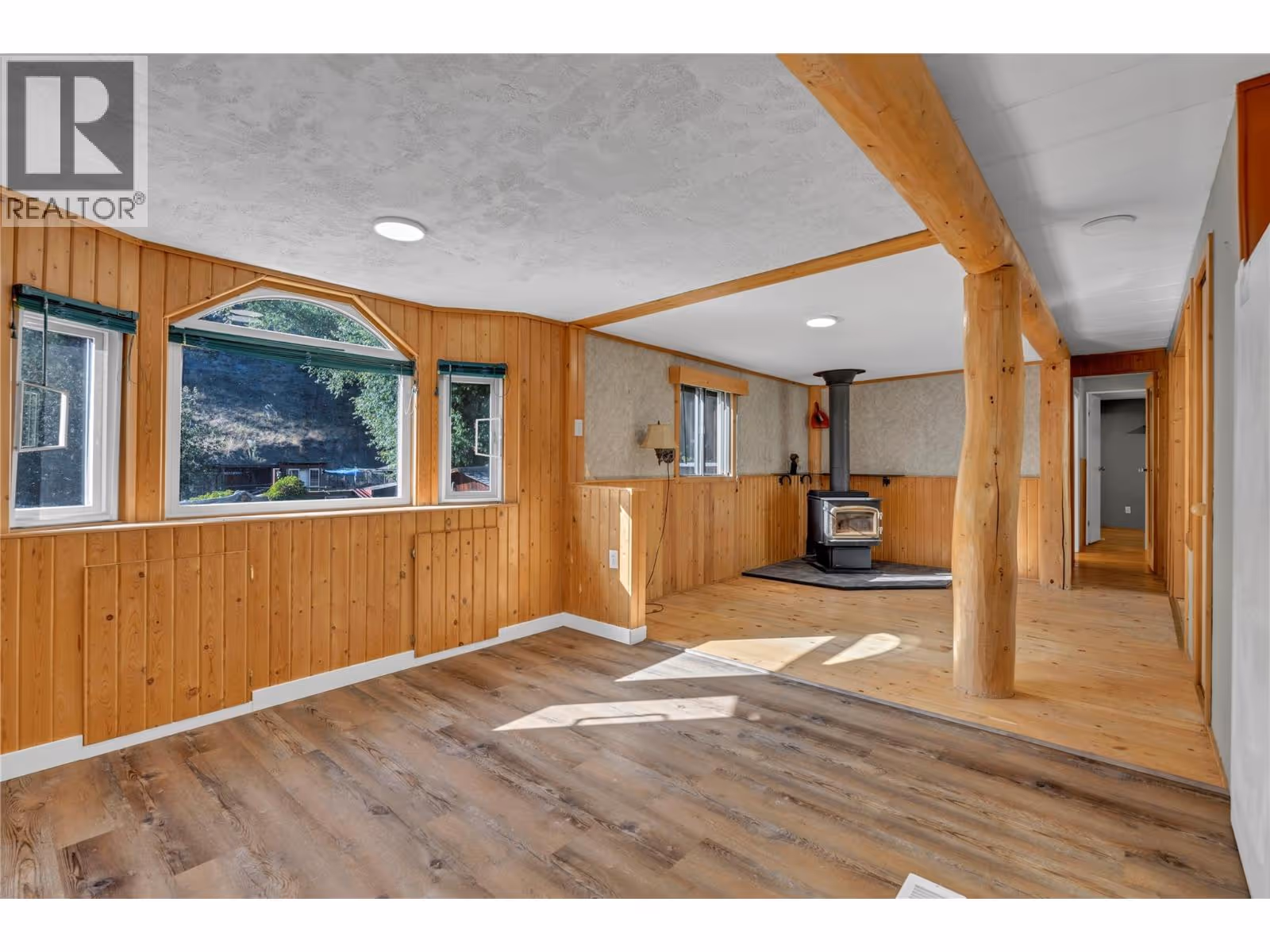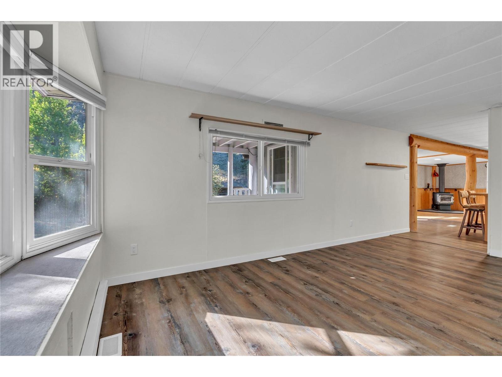 A great spot to call your own on 1 acre of land. Home has covered porch into the foyer, large living room, kitchen with floating island, laundry room, 2 bedrooms, den with patio slider to the open deck, family room & wood stove for the cozy days, 2 bathrooms, (one with walk in shower the other with a relaxing soaker tub) walk in closet in the Primary and access off the master to the outside. LVP flooring and solid pine flooring. Outbuildings for a workshop and storage, plenty of garden area. Seasonal Darke Creek through the property. Situated on the school bus route, Fibre Optic available for cellular and internet, near the Trans Canada trail for all your recreation needs, water system in place. This property located in historic Faulder 15 min from Downtown Summerland. Call today to view. Quick possession. (id:58842)