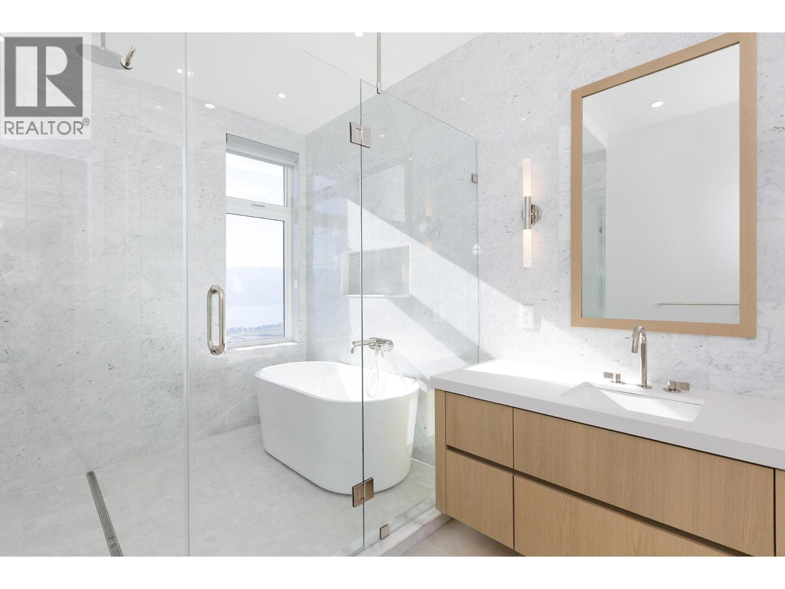 Welcome to your dream home in prestigious Lakeview Heights, where luxury meets natural beauty. Located above Okanagan Lake, this brand new residence offers unobstructed panoramic views enjoyed from both levels, the backyard, and the stunning pool area. Designed with a modern yet warm aesthetic, it features soaring ceilings, expansive windows, hardwood floors, and accordion doors in the living room that create seamless indoor/outdoor living. Every detail has been carefully curated, including marble countertops and tiles throughout, Visual Comfort lighting, Kohler plumbing, integrated speaker system, and Emtek hardware elevate the home’s timeless sophistication. The gourmet kitchen impresses with a 48” Wolf range, high end appliances, a walk in pantry, and a built in espresso station. The lower level is an entertainer’s dream with the same stunning views, a lavish wet bar, glass doors opening to the pool deck plus a gym room, media room, and space with private entry providing excellent potential for a future suite. Step outside to your private oasis featuring a saltwater pool, sunk in hot tub, pool bathroom, and firepit area, surrounded by elegant landscaping and wood soffits. The oversized garage easily accommodates an RV or boat along with multiple vehicles and storage. Set among luxury homes in one of West Kelowna’s most desirable neighbourhoods, this property offers refined living, stunning views, and resort style comfort. (id:58842)