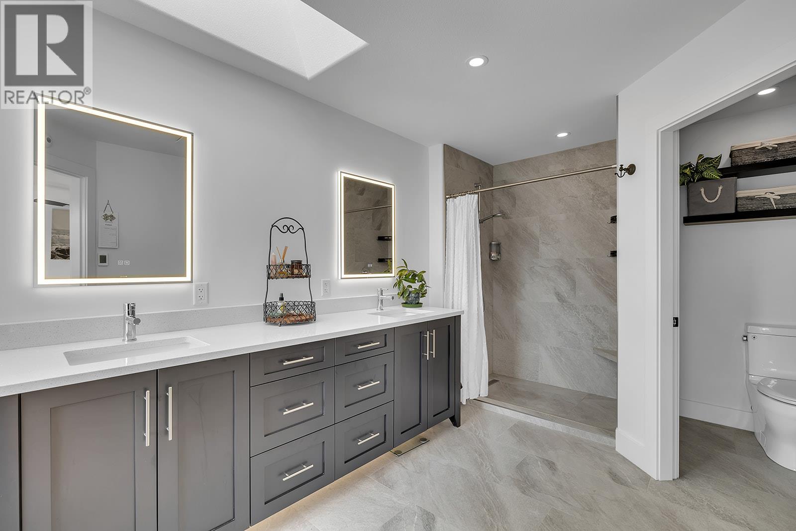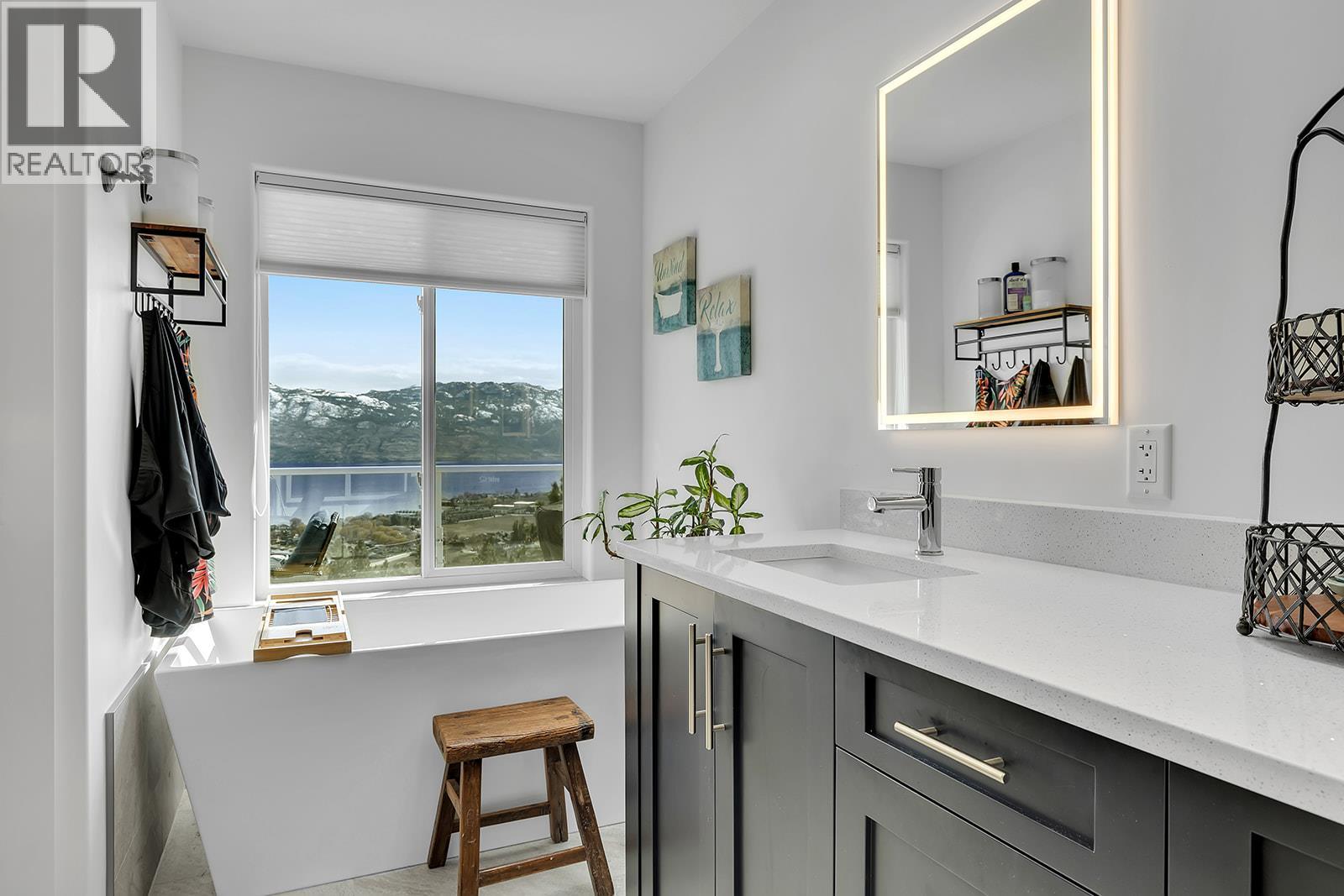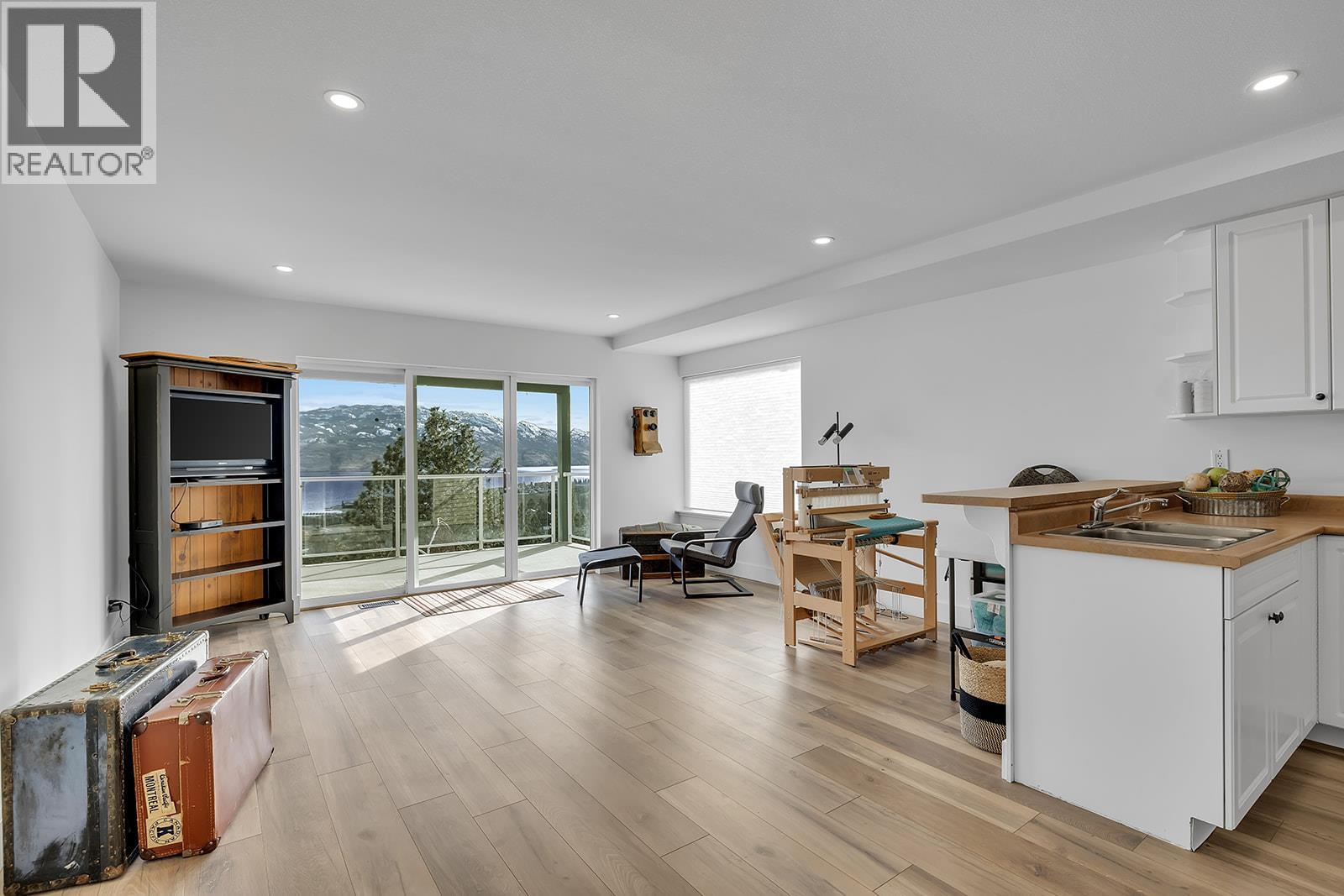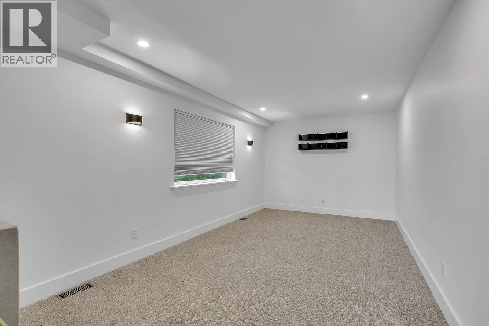 Don't miss this opportunity! B&B opportunity or extended family in-law suite or 2 -2 bedroom suites or just keep the older teenagers downstairs if desired. Extensive quality renovations with city permits. approx 5000 sq ft walk out rancher offering spectacular unobstructed lake views from all 3 levels! Beautiful in-law suite & possibility to rent main floor with the in-law suite for your extended family & possibility owners living accommodation on the lower 3rd bottom floor when in town or as another in law suite. You don't see this opportunity very often where home is designed for multi family living. Approx 2423 sq ft luxurious main floor featuring great room living, pantry, 2 bdrms, 2 bthrms & laundry. Approx 1665 sq ft Lower 2nd floor featuring 2nd kitchen, great room, 2 bdrms & full bthrm. Private exterior entry 3rd basement floor offering bathroom and living & storage rooms. Approx 885 finished & 399 sq ft unfinished. Located in sought after neighbourhood of Lakeview Heights where world class vineyards and restaurants, lakeshore parks, golfing and shopping are nearby to enjoy the Okanagan lifestyle. Large workshop separate from garage and storage area. Many features include main floor new kitchen, induction range, new luxury vinyl plank flooring throughout, all bathrooms renovated, heated flooring and soaker tub, shower and double sinks in ensuite. New built in vacuum with hide a hose retractable hose system on top 2 floors, vacuum plate in kitchen. New blinds have cellular shades. Media room. New air conditioner 2022. See floor plan (id:58842)