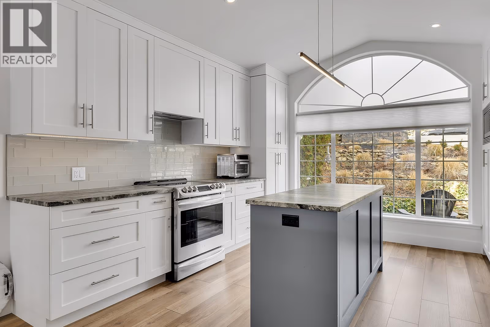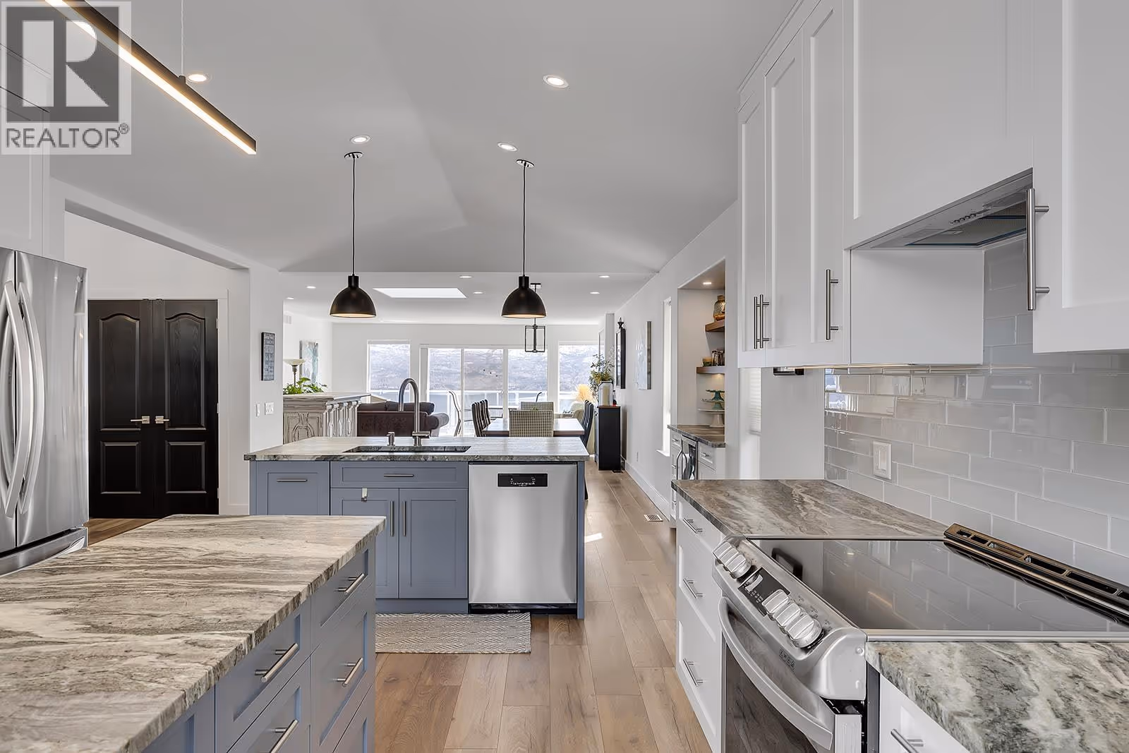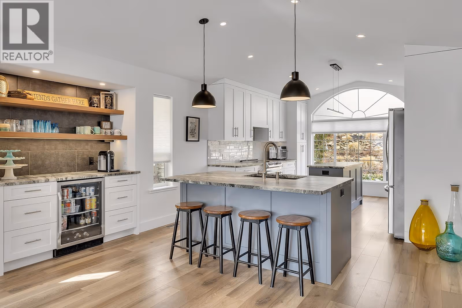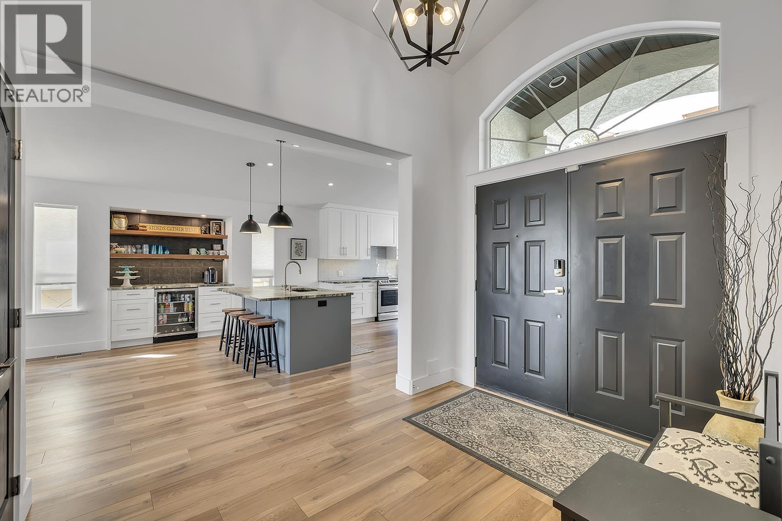 Don't miss this opportunity! B&B opportunity or extended family in-law suite or 2 -2 bedroom suites or just keep the older teenagers downstairs if desired. Extensive quality renovations with city permits. approx 5000 sq ft walk out rancher offering spectacular unobstructed lake views from all 3 levels! Beautiful in-law suite & possibility to rent main floor with the in-law suite for your extended family & possibility owners living accommodation on the lower 3rd bottom floor when in town or as another in law suite. You don't see this opportunity very often where home is designed for multi family living. Approx 2423 sq ft luxurious main floor featuring great room living, pantry, 2 bdrms, 2 bthrms & laundry. Approx 1665 sq ft Lower 2nd floor featuring 2nd kitchen, great room, 2 bdrms & full bthrm. Private exterior entry 3rd basement floor offering bathroom and living & storage rooms. Approx 885 finished & 399 sq ft unfinished. Located in sought after neighbourhood of Lakeview Heights where world class vineyards and restaurants, lakeshore parks, golfing and shopping are nearby to enjoy the Okanagan lifestyle. Large workshop separate from garage and storage area. Many features include main floor new kitchen, induction range, new luxury vinyl plank flooring throughout, all bathrooms renovated, heated flooring and soaker tub, shower and double sinks in ensuite. New built in vacuum with hide a hose retractable hose system on top 2 floors, vacuum plate in kitchen. New blinds have cellular shades. Media room. New air conditioner 2022. See floor plan (id:58842)