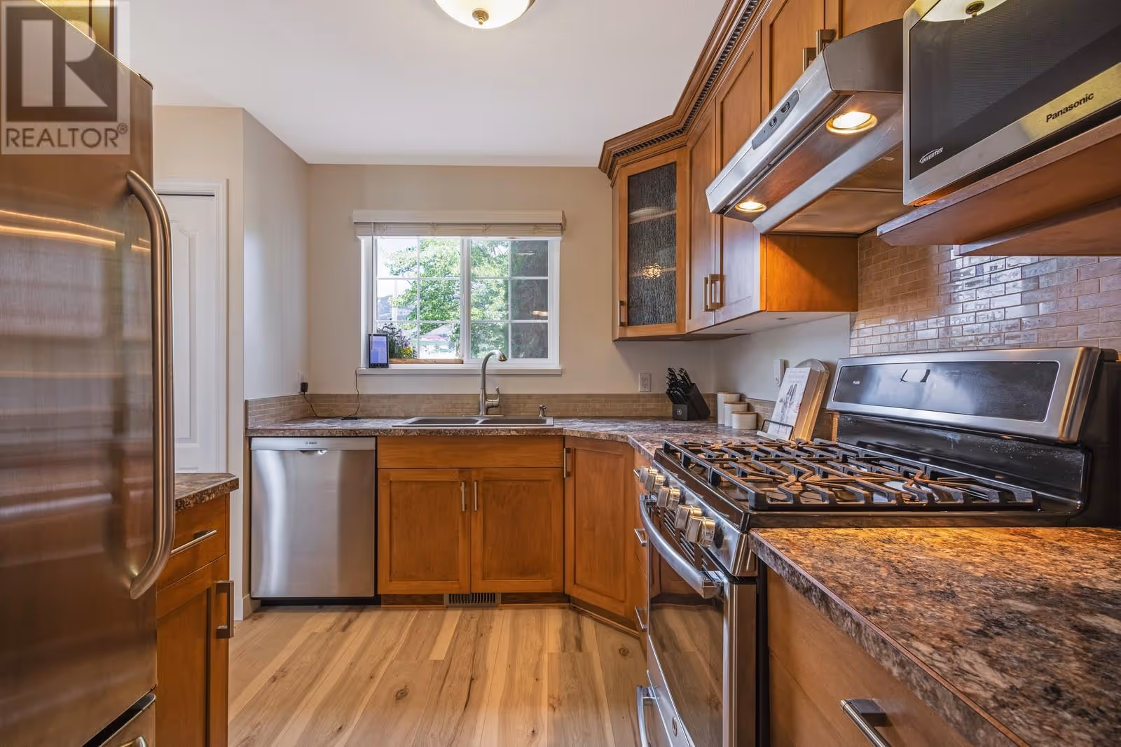 First-time buyers and growing families—this is the one you’ve been waiting for. This bright and spacious 3-bedroom, 2.5-bathroom end-unit townhouse offers smartly designed living space, including a private balcony and room to grow with an unfinished basement ready for your ideas. Park the car, the bikes, and still have space to tinker—the upgraded garage features sleek epoxy flooring and built-in work shelves, a rare bonus that sets this home apart. Three total parking spots (yes, three!) make life easy for busy households. Upstairs, all three bedrooms offer ideal separation for families. The main level flows from kitchen to dining to living area, with natural light pouring in from multiple exposures. It flows nicely into the backyard which is the perfect outdoor space for both pets and kids. The 527 sq ft unfinished basement offers so much potential as a media/family room not to mention that much more storage. This home is not only practical but also affordable with low strata fees and a very energy efficient home which results in low monthly energy costs. Nestled in central Rutland South, you’re minutes from schools, transit, parks, shopping, and sports fields—not to mention a quick 15-minute drive downtown, 10 mins to the airport and only 30 mins to Big White. (id:58842)