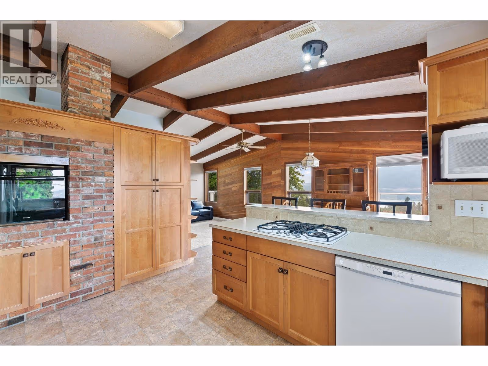 PRICE BELOW BC ASSESSMENT! Million-Dollar Views—Without the Price Tag! Nestled amidst the serene beauty of orchards, this charming 3-bedroom, 2-bathroom home offers an unparalleled blend of tranquillity, style, and functionality. Boasting nearly 2,000 sq. ft. of thoughtfully designed living space, this gem is situated on a spacious 0.22-acre lot that promises peace, privacy, and breathtaking views of Wood and Kalamalka Lake. Step outside to your massive wrap-around deck, the perfect space for entertaining family and friends or simply soaking up the stunning vistas and fresh air. The outdoor charm seamlessly complements the home’s rustic-meets-modern interior, where rough-cut fir rafters and vaulted ceilings create an ambiance of timeless sophistication. The kitchen showcases an elegant brick feature wall, newer maple cabinetry, and a raised eating bar ideal for casual dining. The sunken living room adds cozy character, while the newly finished lower level expands the possibilities with a 3rd bedroom, a full 3-piece bathroom, an office/TV area, and a spacious family room with exterior access—perfect for a potential secondary suite. Additional highlights include: A dedicated pantry area, a gas cooktop for the chef in the family, RV parking, a fenced back yard, u/g irrigation. Enjoy being minutes away from the iconic Rail Trail, pristine beaches, and countless outdoor adventures. This one-of-a-kind property combines charm, functionality, and a priceless view at a price you’ll love. (id:58842)