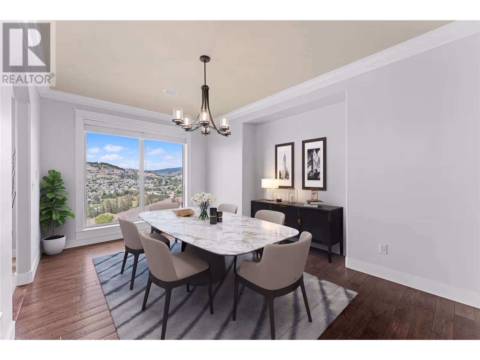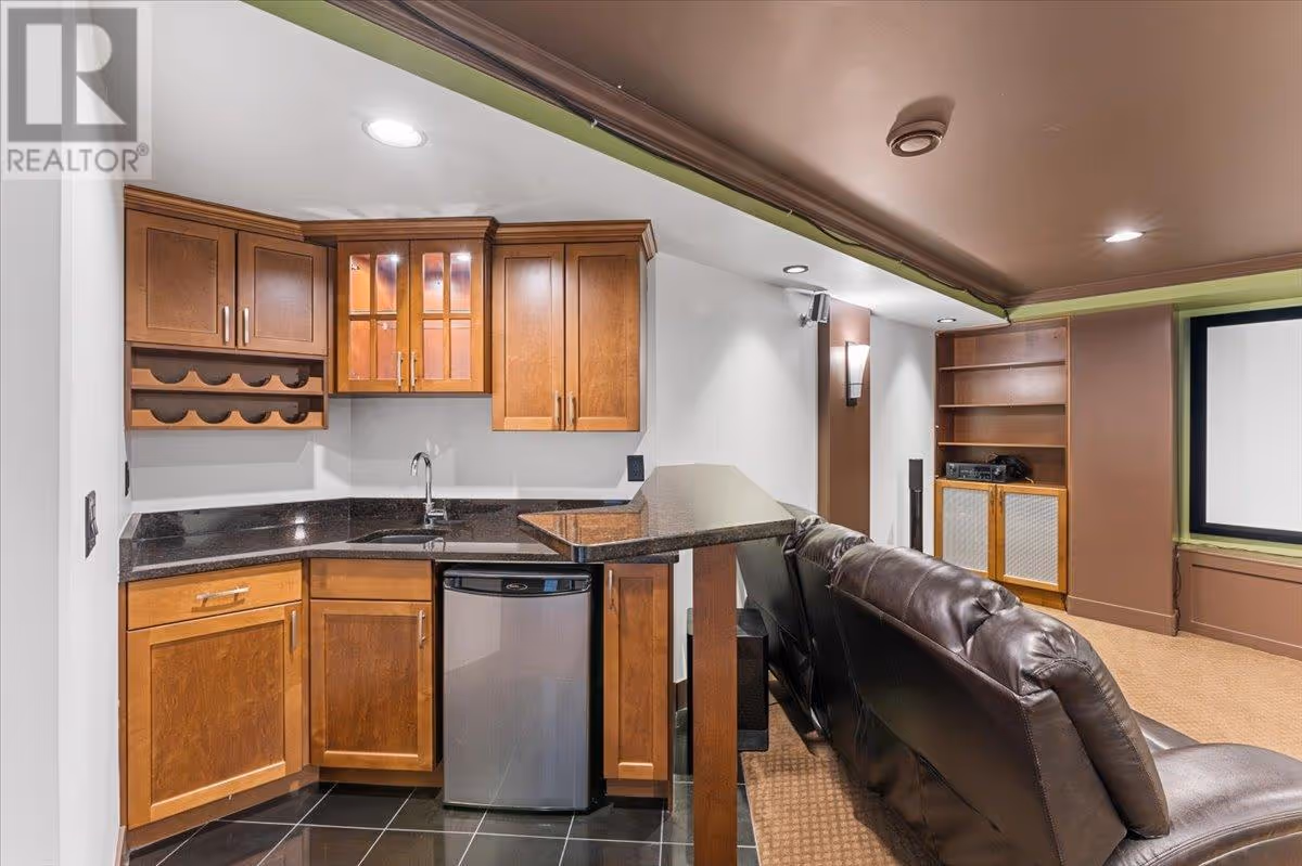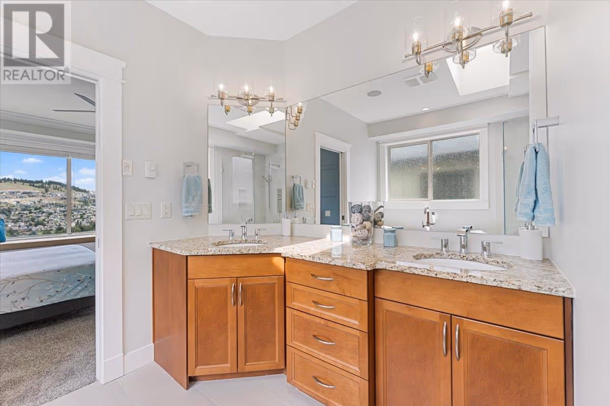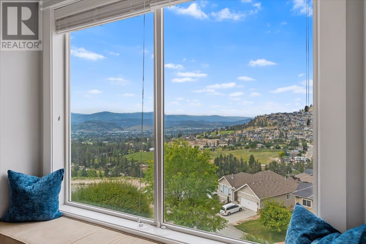 Move in and enjoy this beautifully updated Black Mountain home offering stunning 180 degree valley, lake, and city views. Set on a quiet, established, family-oriented street, this home is ideal for multi-generational living or rental income with a 2-bedroom legal suite and potential for a second suite. Enjoy total privacy and incredible natural light. The primary bedroom requires no window coverings—wake up to fresh mountain air, peaceful pine-scented breezes, and views of sunrise over the hills. In the evening, the home is bathed in soft shade, perfect for relaxing outdoors. The main floor features a granite island kitchen with induction cooktop and new appliances, open great room, formal dining, guest room, and a primary suite with a renovated spa-linspired ensuite. Downstairs has two additional bedrooms, theatre room with wet bar, and bright living spaces. Upgrades include hand-scraped hardwood, limestone tile, crown moulding, wainscoting, LED lighting, feature walls, new garage door with camera, and faux wood blinds. Double garage and RV or boat parking. Pride of ownership is evident throughout. Minutes to Black Mountain Golf Club, schools, and 35 mins to Big White. A new mixed-use commercial development with grocery and retail is coming nearby. A truly special, move-in-ready home with endless lifestyle potential. (id:58842)