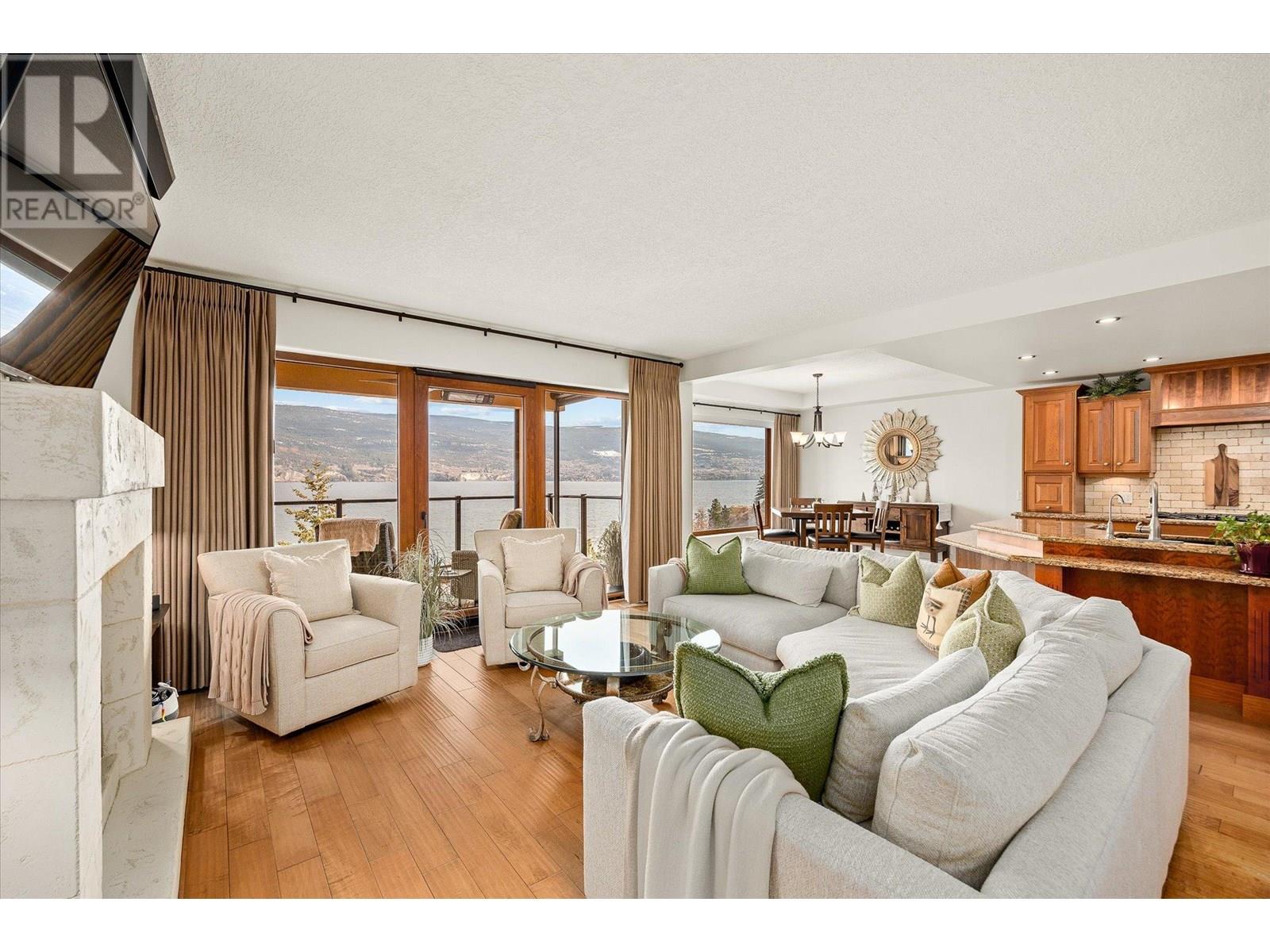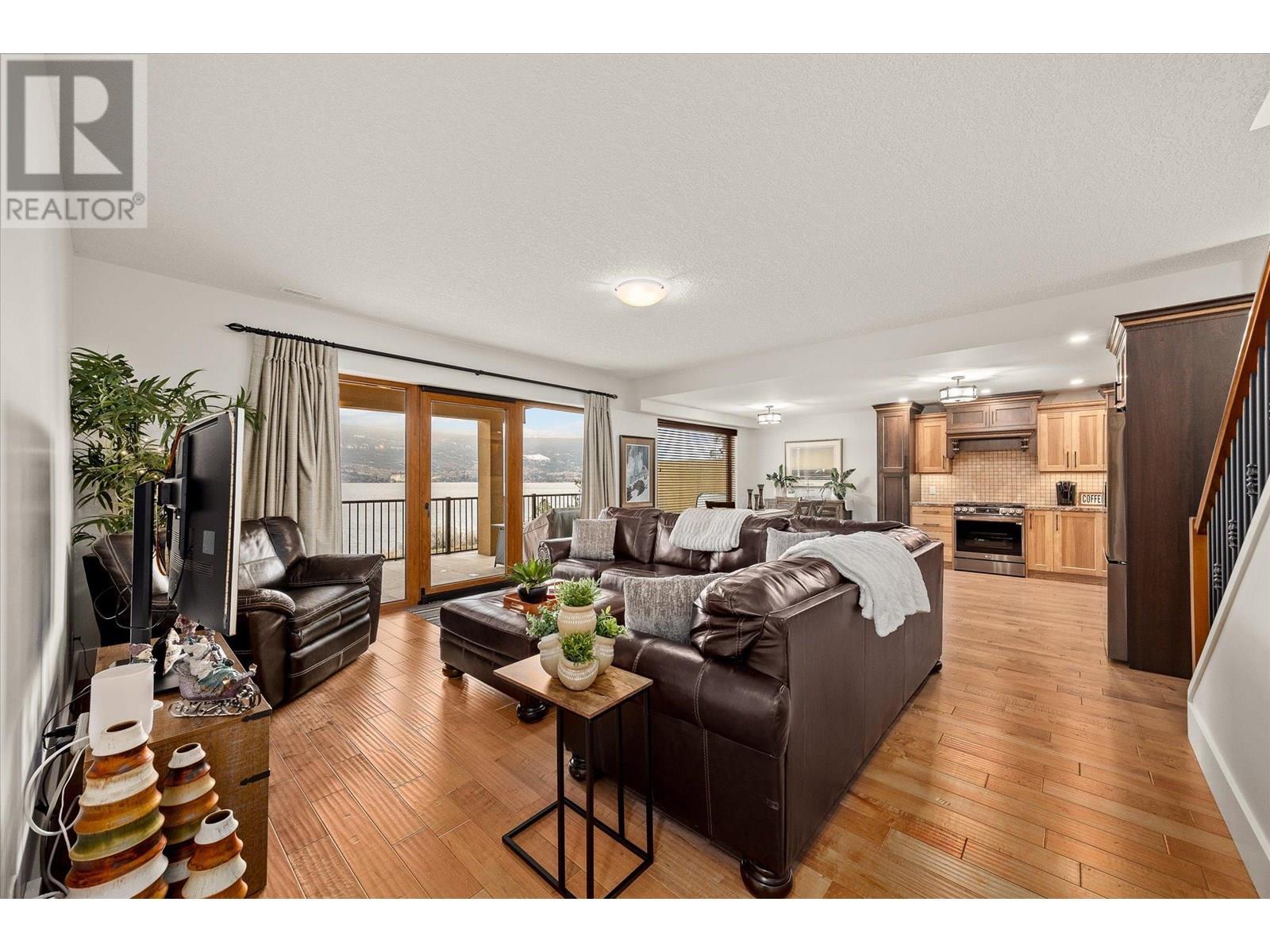 Experience unparalleled luxury and panoramic lake views in this executive 3-bedroom plus den rancher-style townhome with a basement, located in the coveted Tuscan Terrace community in Summerland! Resting on a hillside overlooking parkland and the sparkling waters of Okanagan Lake, this 3,800+ sq. ft. home offers a front-row seat to one of the most breathtaking vistas in the region. The bright, open floor plan is designed to maximize the view, with oversized doors and windows flooding the space with natural light. Main-floor living includes a spacious living room with a gas fireplace, a chef’s kitchen with granite countertops, newer appliances, and a walk-in pantry, as well as a primary suite, a complete oasis with access to a covered deck to enjoy the stunning scenery, and a 5-piece ensuite bathroom featuring a soaker tub, dual sinks, and glass encased shower, with a huge walk-in closet. The walkout basement features additional bedrooms, a fully-equipped and spacious summer kitchen ideal for guests or in-laws, a media room, and seamless access to outdoor living spaces with a private hot tub and pet-friendly green space! This lakefront gem has all the perks including a huge covered deck, attached garage, complete with an elevator, combining elegance, comfort, and accessibility in one of the most picturesque locations in the Okanagan. (id:58842)