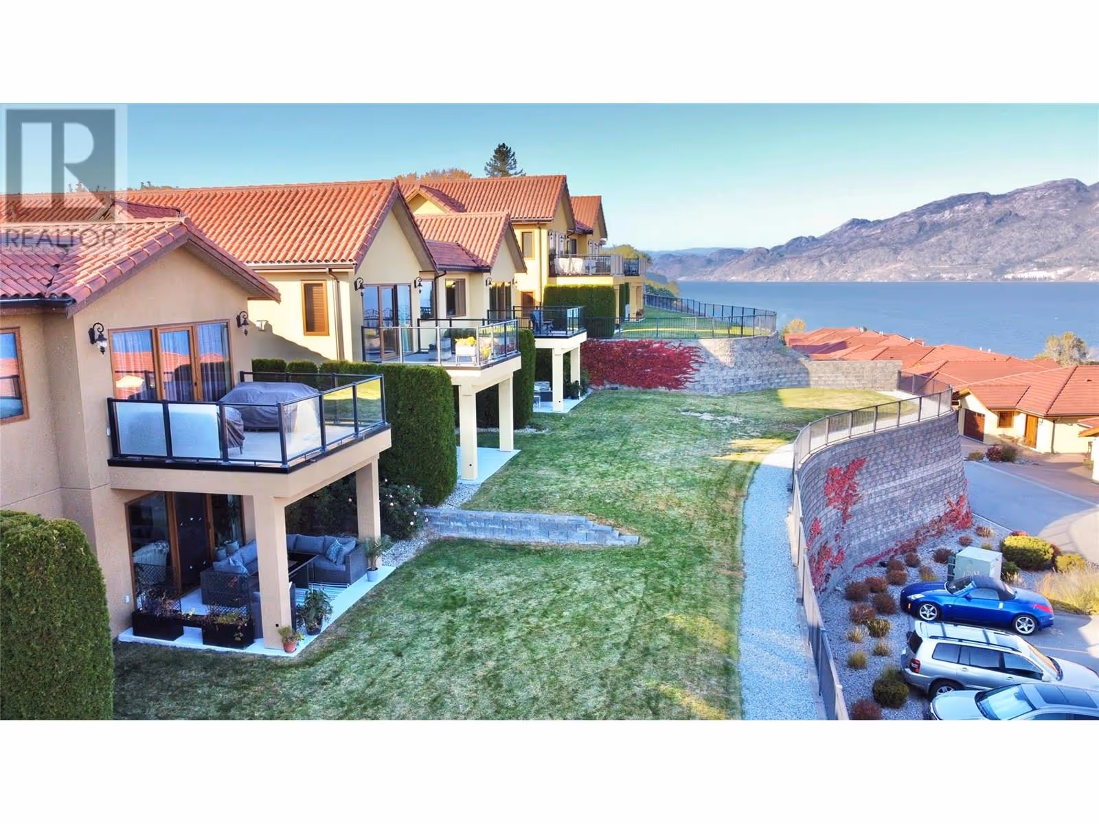Experience the pinnacle of luxury living at the prestigious Tuscan Terrace, where breathtaking lake and mountain views await. This sophisticated 2-bedroom, 2-bathroom plus den condo offers an unparalleled combination of elegance, comfort, and convenience. The expansive floor plan features high-end finishes throughout, with soaring 9 & 11 ft ceilings, designer colors, and luxurious engineered hardwood and tile flooring. The spacious living room, complete with a gas fireplace, flows seamlessly to a private lake-view deck, creating an ideal space for both relaxation and entertaining. The gorgeous kitchen is a chef’s dream, outfitted with gleaming granite countertops, a large island with bar seating, and new stainless-steel appliances. Enjoy stunning lake views from both the dining room and the outdoor decks, offering a perfect setting for al fresco dining or simply soaking in the serene surroundings. The master suite is a true retreat, boasting a tranquil lake view, a walk-in closet with custom shelving, and a lavish 5-piece ensuite with double sinks, and an oversized shower. The den, featuring a built-in media center and surround sound system, provides the ideal space for a home office or entertainment room. Individually controlled stereo speakers are thoughtfully integrated throughout the home, including one deck. Additional highlights include a single garage, extra parking, and a prime location above the beach. (id:58842)