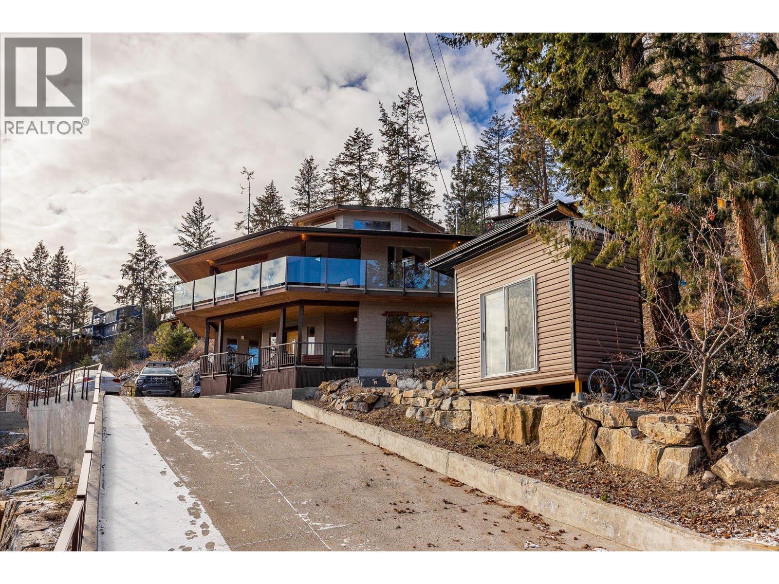 Experience this one-of-a-kind, renovated home where thoughtful design meets stunning natural surroundings. Inside and out, every detail has been carefully curated to blend style and functionality. The unique and visually stunning layout features three bedrooms on the same floor, soaring ceilings with skylights that flood the space with natural light, and a striking statement fireplace as the focal point of the main living room. The top of the line artisan kitchen is a chef’s dream, designed for families who love to cook, while spa-inspired bathrooms offer a touch of luxury to your everyday. With storage blended into each space, form truly meets functionality. Step outside to an expansive deck that seamlessly extends the indoor living space, offering breathtaking lake, mountain, bridge, and city skyline views. Downstairs, a bright, self- contained one-bedroom suite with its own laundry and patio provides excellent flexibility for visiting guests or rental income. A detached office makes working from home effortless, whether for remote work or a small business. With parking for at least six and plans in place for a plumbed garage with a rooftop patio, the potential for this property is diverse. Situated in a quiet neighbourhood near trails and beaches, yet just a short drive to downtown, this home offers tranquility along with convenience. Don’t miss the opportunity to own this one-of-a-kind retreat—set up your showing today! (id:58842)
