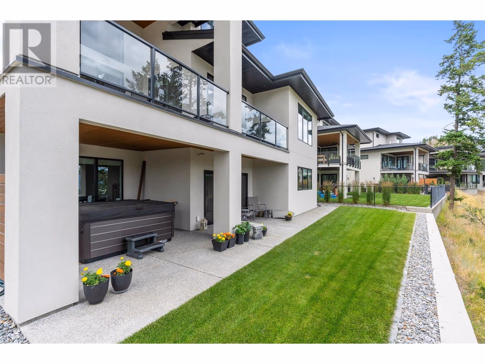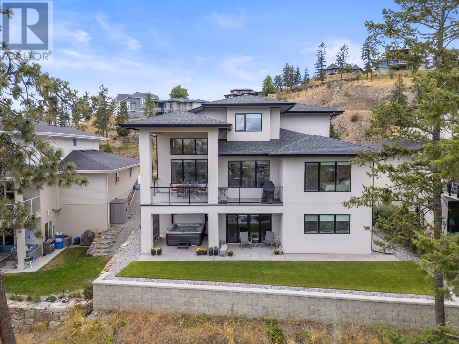 Nestled in one of Kelowna’s most sought-after neighbourhoods, Wilden, this custom Fawdry Homes build features 6 bedrooms, 5 1/2 bathrooms, and a legal 1-Bedroom suite. Ideally situated just minutes from both downtown Kelowna and Kelowna International Airport this home offers both convenience and elegance. The main floor impresses with a stunning open-concept design, showcasing a soaring great room, a gourmet kitchen with a rare additional spice kitchen, a luxurious primary suite, and a grand patio perfect for entertaining and enjoying breathtaking views. Upstairs, you’ll find a generously sized bedroom with its own private ensuite, along with two additional bedrooms connected by a Jack and Jill washroom. The lower level features two additional bedrooms, each with a private washroom, a dedicated gym room, a generous storage room, and a refined bar/entertainment room. Additionally, a spacious 668 sq. ft. basement suite provides versatile living space, perfect for guests or rental income. Outside, a hot tub provides the perfect spot to relax and unwinding. With craftsmanship like this, the opportunities are endless in this exceptional custom home. (id:58842)