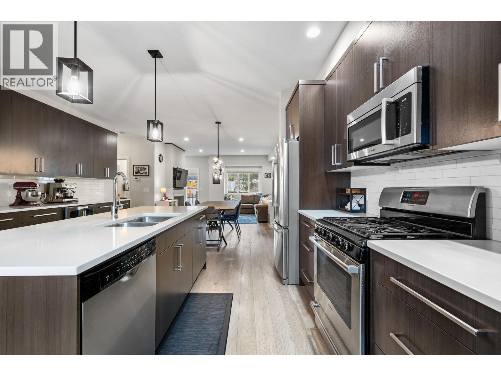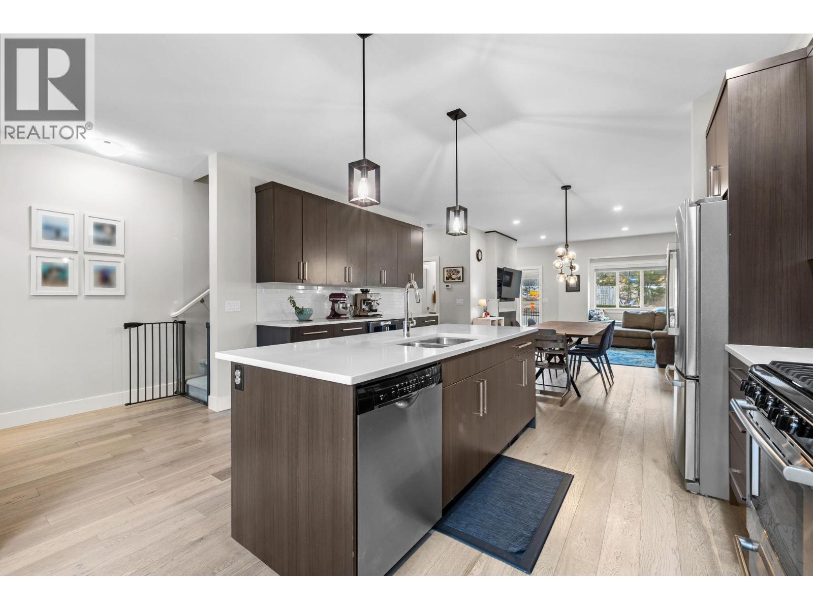 Welcome to Hidden Lake Lookout, a quaint and lovely townhouse community in the highly sought-after family friendly neighbourhood of Wilden. This stunning 3-bedroom, 2 1/2-bathroom home with a wonderful sightline of the local pond is perfect for people who love to live near nature but still prefer a location closer to town. Featuring the always popular “open concept” floor plan on the main, you’ll enjoy the flow of over 500 sqft of living & dining space with east and west facing views ensuring plenty of natural light throughout the day. The kitchen boasts sleek stone countertops, stainless steel appliances, and ample cabinet storage, making it the perfect space for both casual meals and entertaining guests. The upper level showcases a large primary bedroom with ensuite, two additional generous sized bedrooms, and a beautiful main bathroom. This property also features a large double tandem garage complete with a workshop space ideal for DIY projects or extra storage. You will also appreciate the lower utility costs with geothermal and natural gas heating & cooling systems, ensuring year-round comfort. Wilden's Future ""Market Square"" is under construction just down the street and will provide residents many exciting opportunities such as parkland, restaurants, shopping, and other lifestyle amenities including a new elementary school. Surrounded by nature but just 10 minutes from downtown Kelowna, the airport, and the university, get ready to enjoy the beauty of Wilden living! (id:58842)