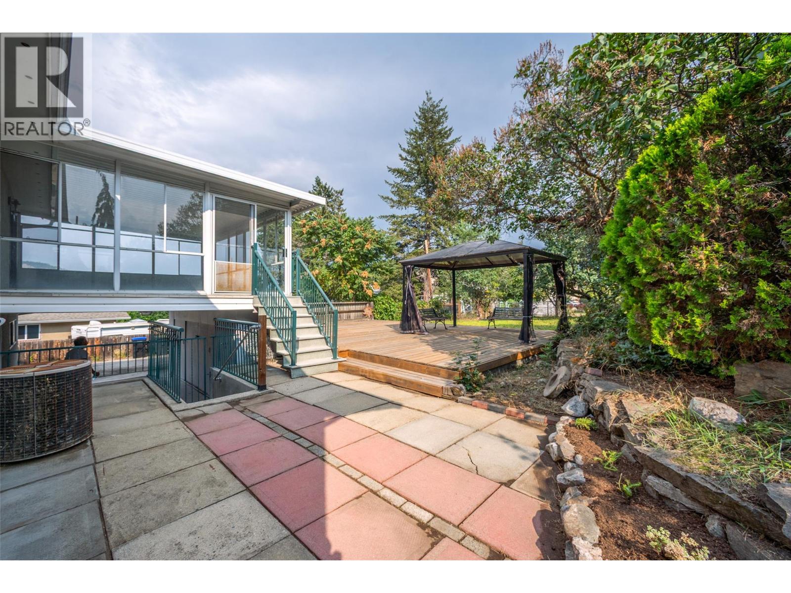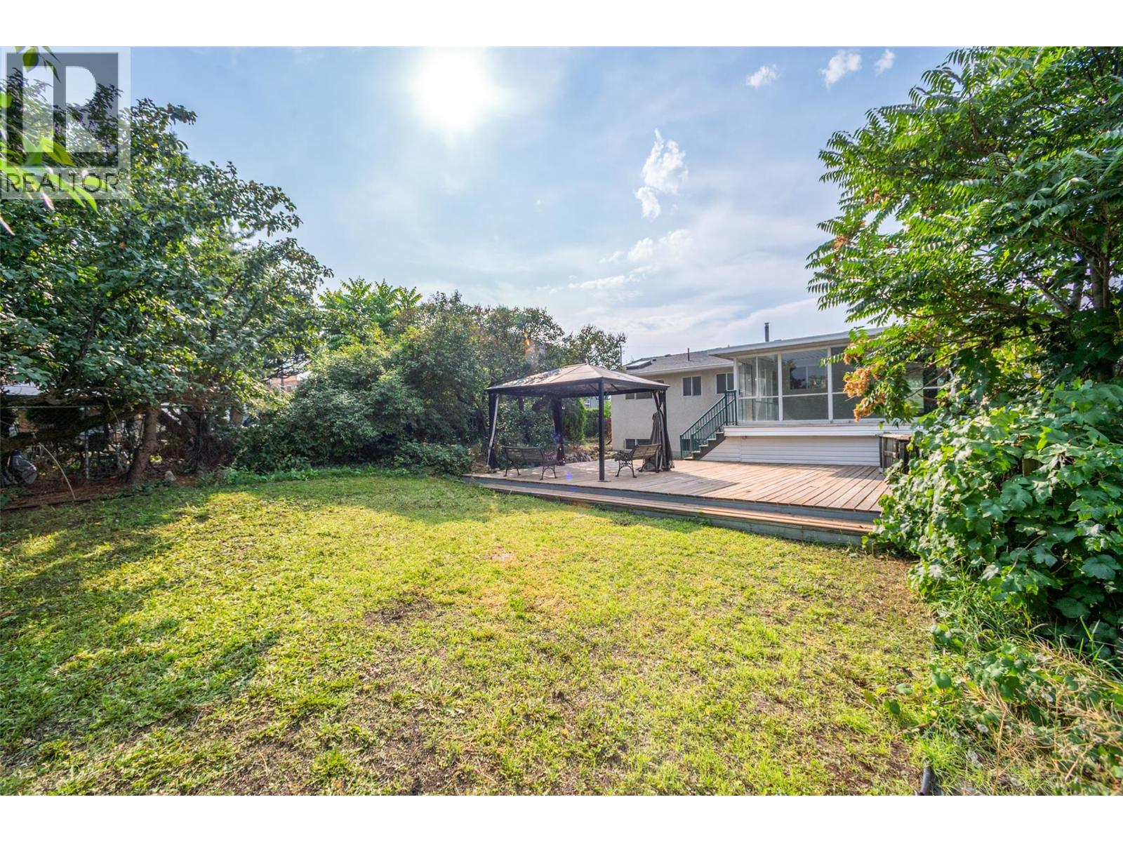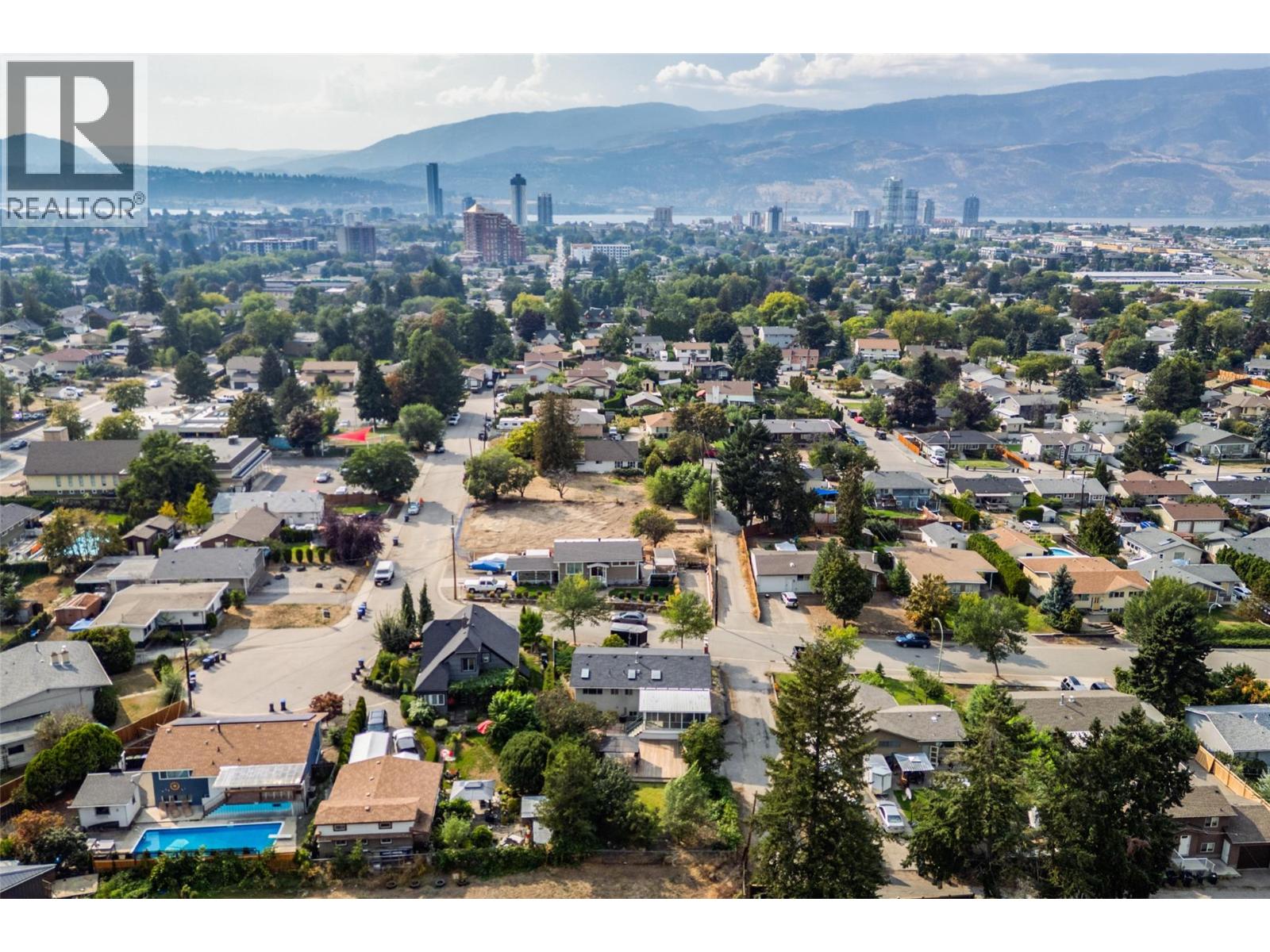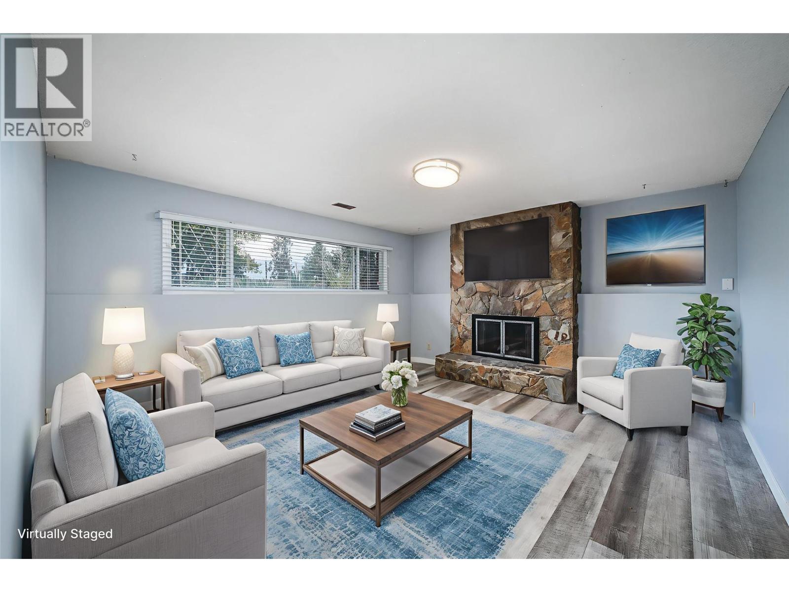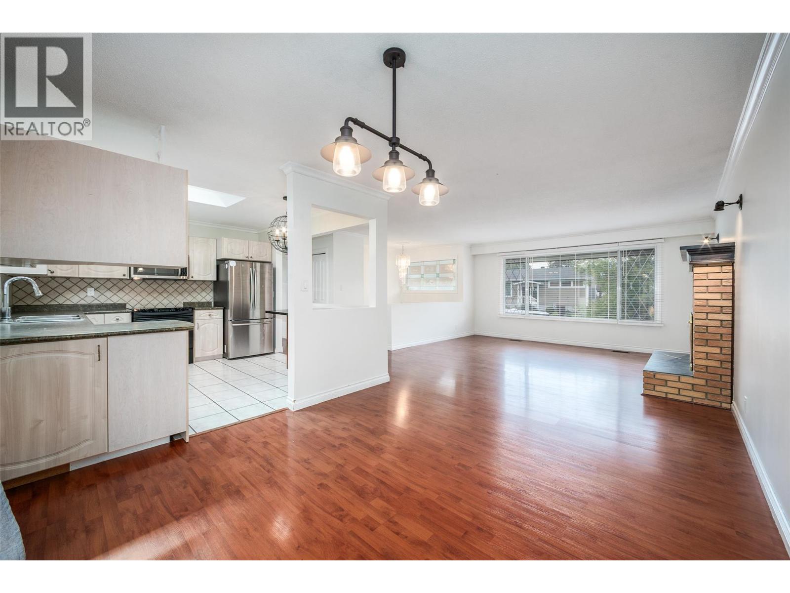 Bright & spacious 5-bedroom, 3-bathroom home in PRIME old Glenmore location! This home offers over 2200 square feet of comfortable living space, in a family area, just minutes from downtown, Okanagan Lake, shopping, schools & just steps from bike path, Apple Bowl stadium & bus stops. The main floor features an open-concept layout w/updated kitchen overlooking a generous, fully fenced backyard, perfect for entertaining & gardening. The inviting living room incl. new blinds & a cozy gas fireplace, while the adjacent dining area, w/french doors, leads to a sunroom offering serene mountain views. The main level also hosts three well-proportioned bdrms, incl. the primary bdrm w/modern barn door leading to an updated 2-piece ensuite. Downstairs, the home continues to impress w/newer flooring throughout. A large family room w/gas fireplace provides an ideal space for gatherings. The lower level also incl. a sizable storage/workshop/flex room w/direct access to the carport, a three-piece bathroom, a laundry area & two additional bdrms. Outside, the property boasts fantastic curb appeal with low maintenance front yard landscaping & a fully fenced peaceful backyard retreat w/irrigated green space & a new deck & patio area to enjoy. Room for carriage house or shop! Parking is ample w/single carport off laneway, two additional uncovered spots & plenty of street parking. Currently zoned MF1, w/future C-NHD designation providing future development opportunity. (id:58842)