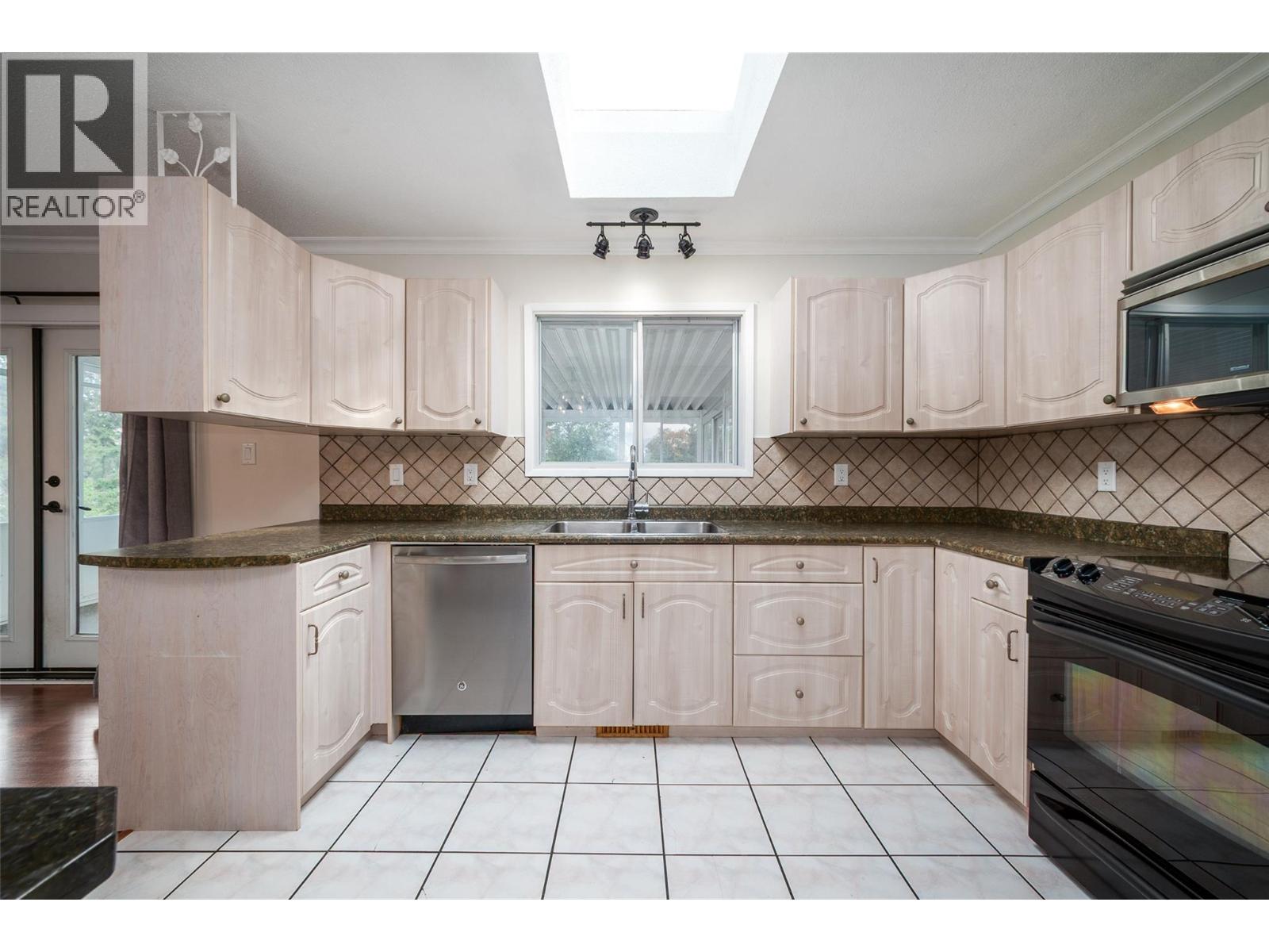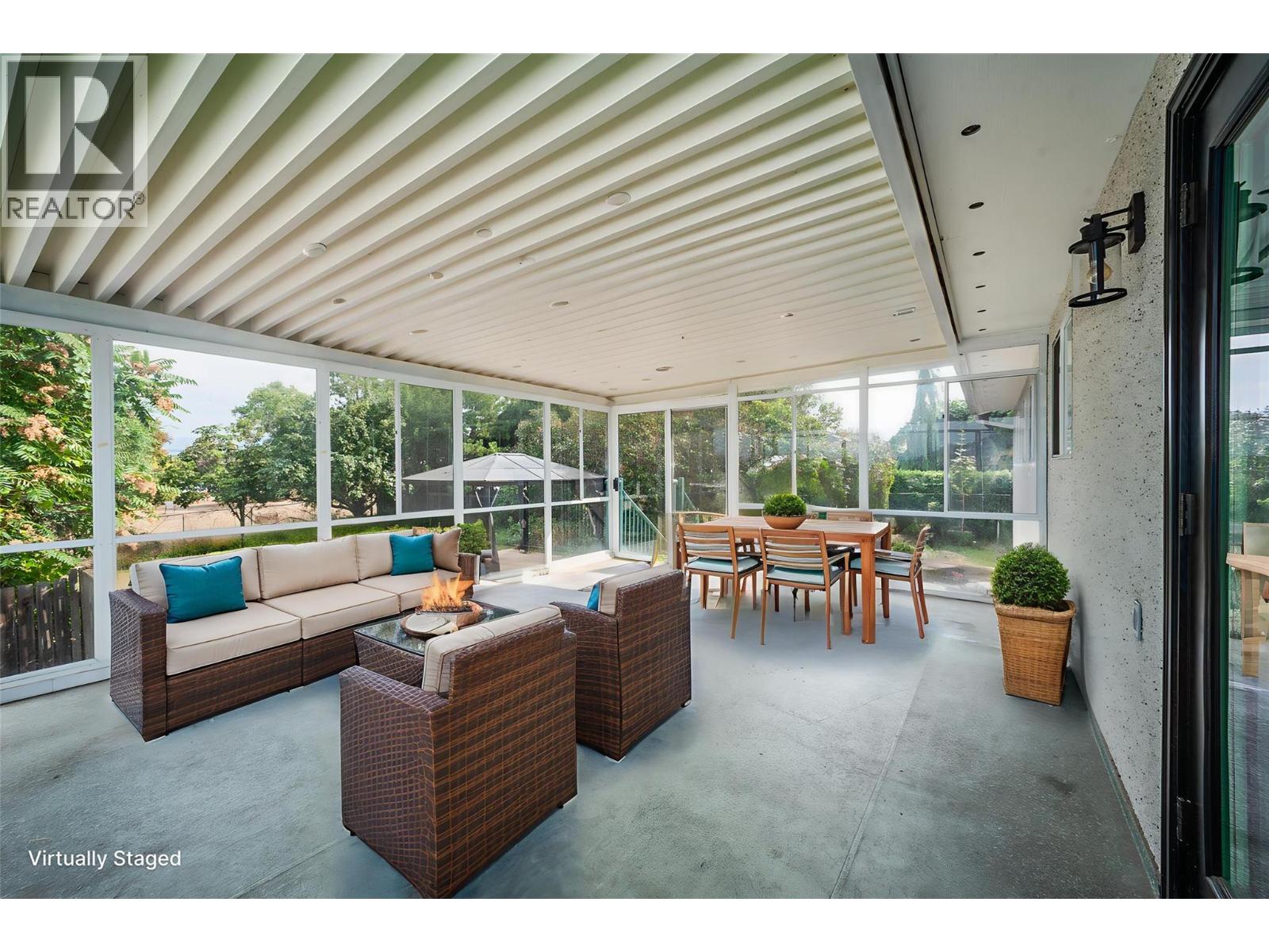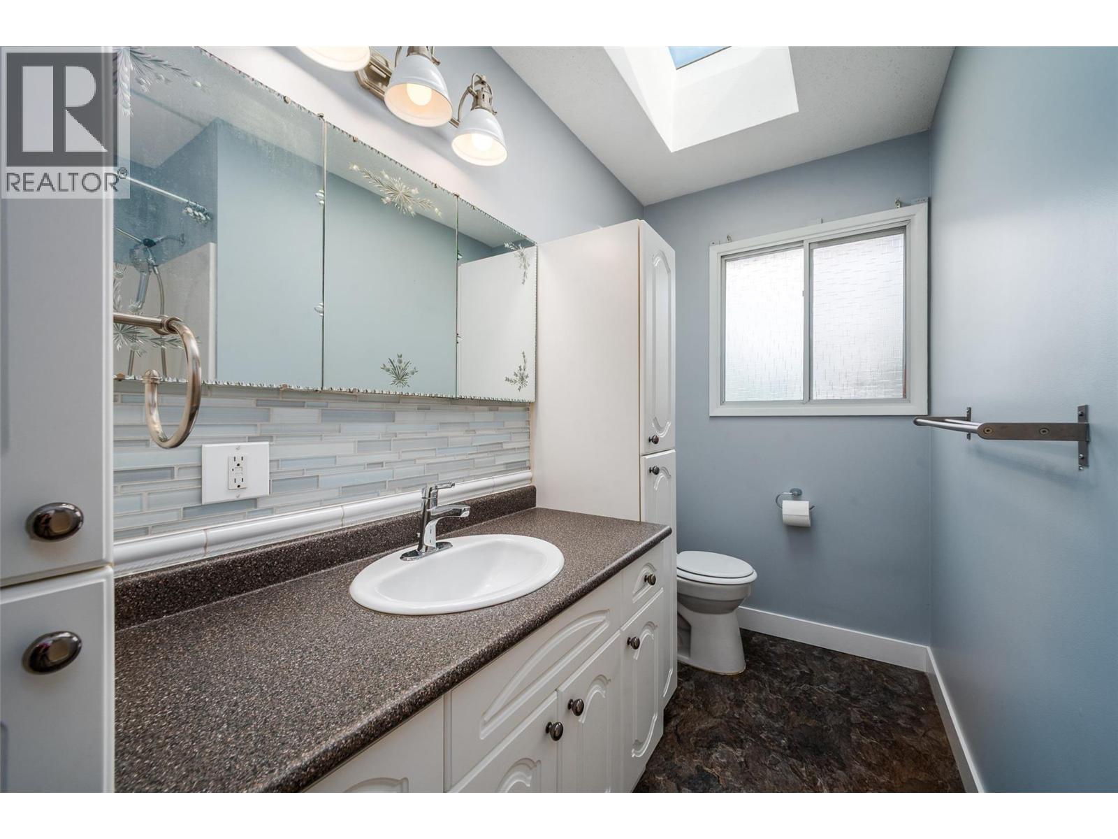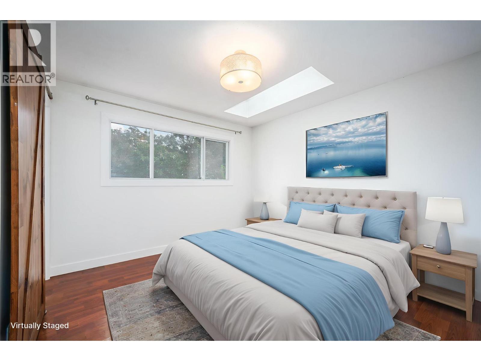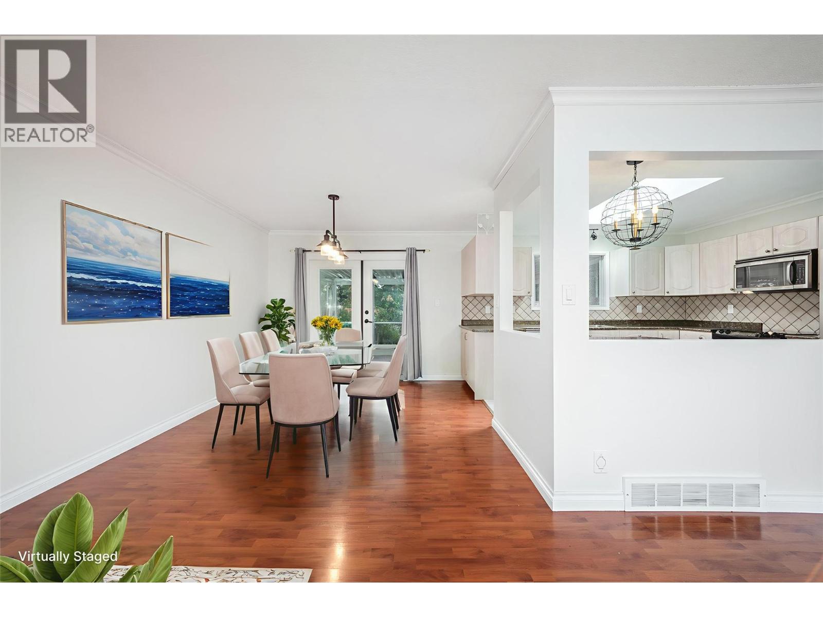 Bright & spacious 5-bedroom, 3-bathroom home in PRIME old Glenmore location! This home offers over 2200 square feet of comfortable living space, in a family area, just minutes from downtown, Okanagan Lake, shopping, schools & just steps from bike path, Apple Bowl stadium & bus stops. The main floor features an open-concept layout w/updated kitchen overlooking a generous, fully fenced backyard, perfect for entertaining & gardening. The inviting living room incl. new blinds & a cozy gas fireplace, while the adjacent dining area, w/french doors, leads to a sunroom offering serene mountain views. The main level also hosts three well-proportioned bdrms, incl. the primary bdrm w/modern barn door leading to an updated 2-piece ensuite. Downstairs, the home continues to impress w/newer flooring throughout. A large family room w/gas fireplace provides an ideal space for gatherings. The lower level also incl. a sizable storage/workshop/flex room w/direct access to the carport, a three-piece bathroom, a laundry area & two additional bdrms. Outside, the property boasts fantastic curb appeal with low maintenance front yard landscaping & a fully fenced peaceful backyard retreat w/irrigated green space & a new deck & patio area to enjoy. Room for carriage house or shop! Parking is ample w/single carport off laneway, two additional uncovered spots & plenty of street parking. Currently zoned MF1, w/future C-NHD designation providing future development opportunity. (id:58842)