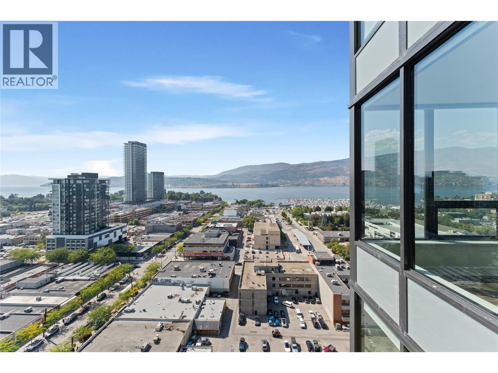 Experience ultimate downtown living at Brooklyn, one of Kelowna’s most iconic high-rises. Unit 2005 is a 2 bed, 2 bath condo with 871 sq/ft of thoughtfully designed space and a large private patio showcasing panoramic views of Okanagan Lake, the mountains, and the city below. Inside, a modern open-concept layout blends style and comfort with stainless steel appliances, quartz countertops, and a large island perfect for entertaining. Expansive windows fill the home with natural light, while the primary suite offers a private ensuite and the second bedroom provides flexibility for guests or a home office. In-suite laundry and high-end finishes add everyday comfort. This home includes a secure underground parking stall equipped with an EV charger, offering convenience and future-ready appeal. Step outside to the heart of Kelowna’s Bernard District, where boutique shops, cafes, and top-rated restaurants are just steps away. The waterfront, marina, and City Park are a short stroll, with the upcoming UBCO downtown campus adding to the area’s growth and vibrancy. Residents of Brooklyn enjoy impressive amenities, including a 25th-floor rooftop terrace and lounge with stunning views, BBQ area, conference room, secure bike storage, bike wash, and dog wash. Pet friendly, no age restrictions, and professionally managed for peace of mind. (id:58842)