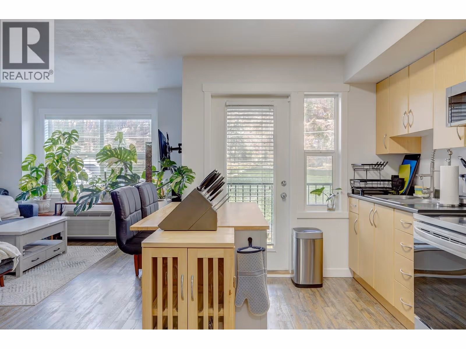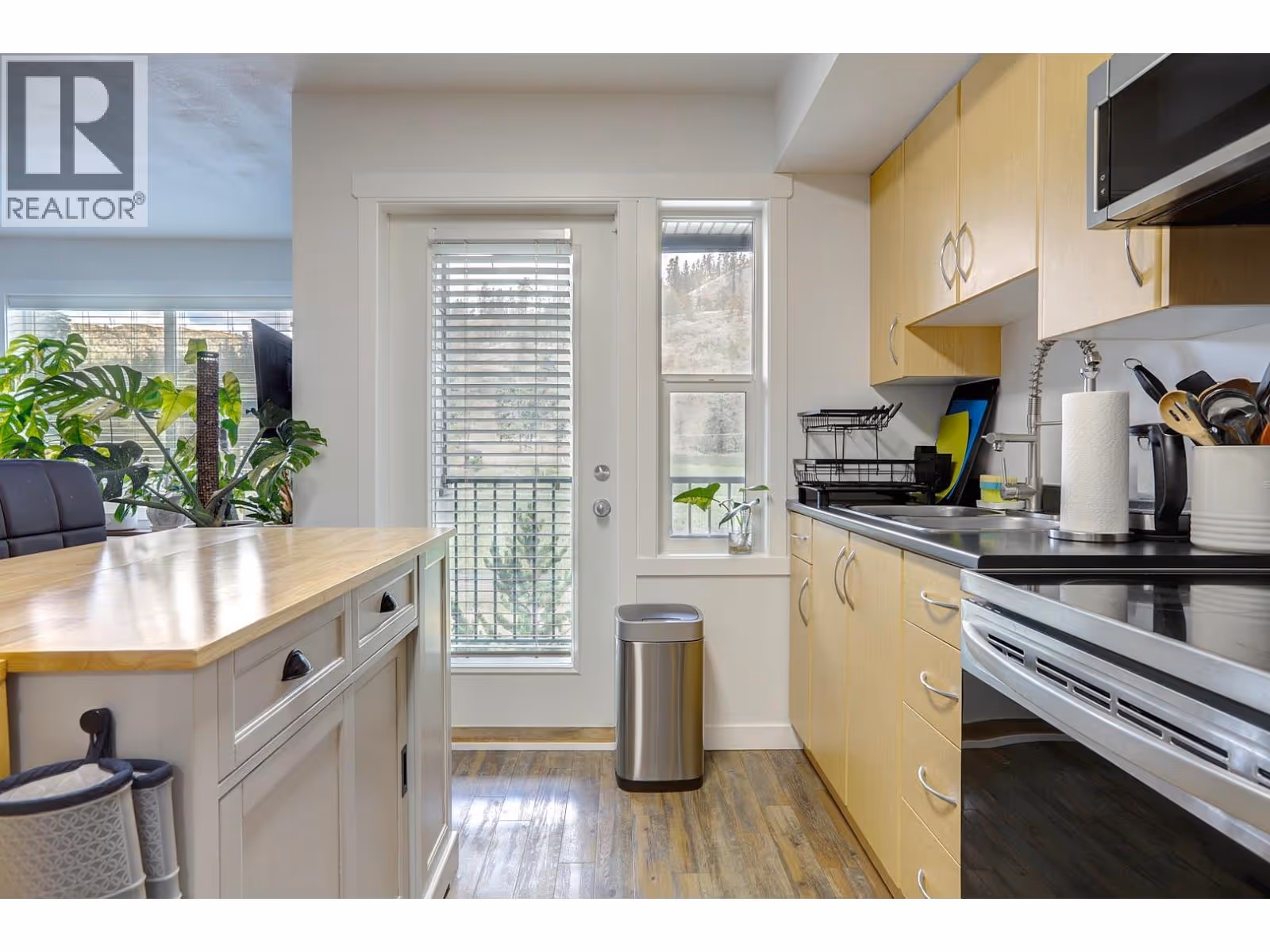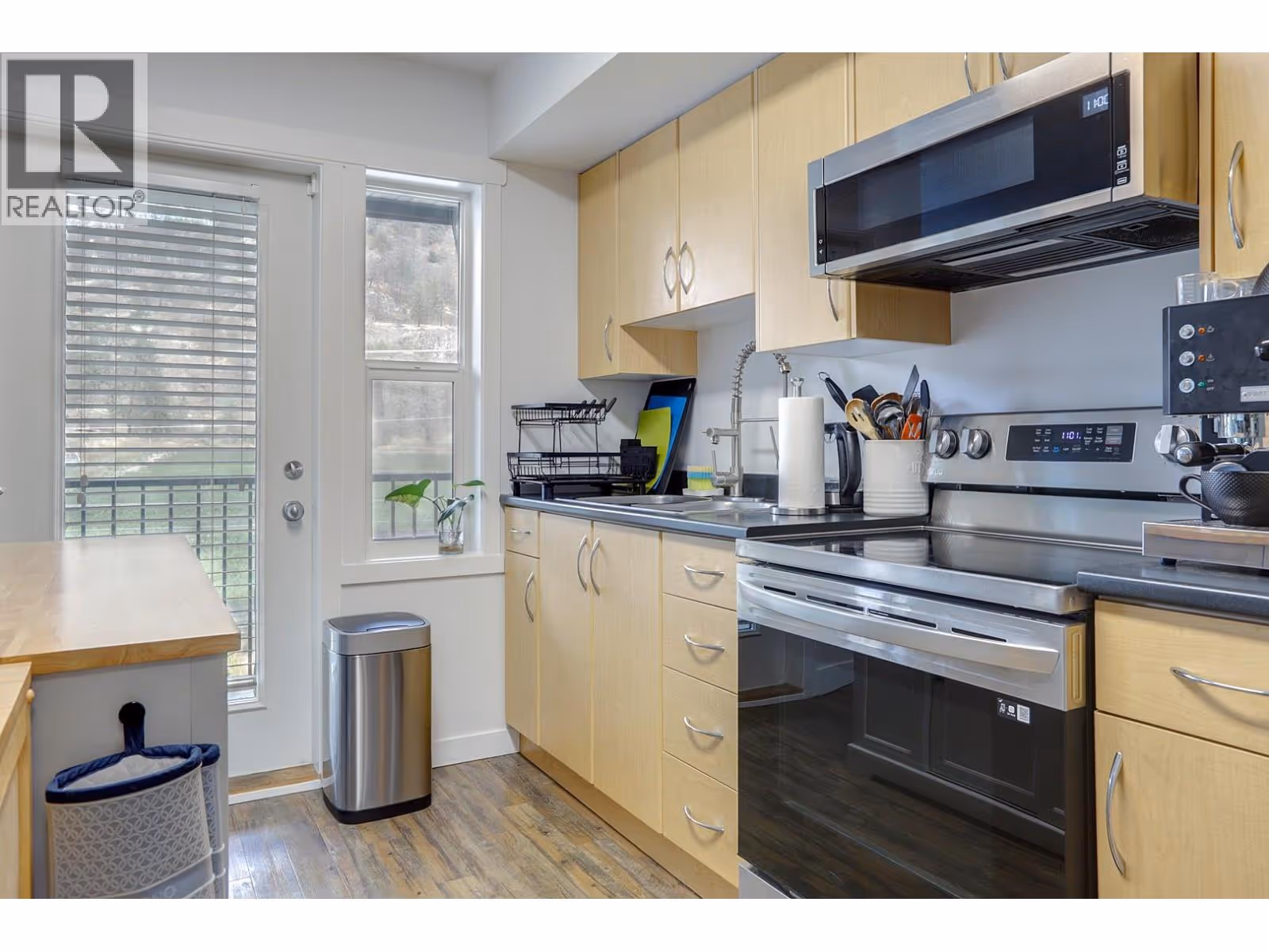 Priced to Go. Investors, UBCO Parents and First Time Buyers take note. Delightful 1 bedroom townhome style unit in Yaletown just a 2 km bus ride from UBCO and 2.5 km to the center of the UBCO campus. This home shows extremely well and perhaps better than new with lots of upgrades and improvements. Top floor unit with better view and no one living above you. Yaletown is a terrific complex with a wide variety of size and style of units but predominantly condo / lobby / elevator style units. This home is the scarce and elusive direct access townhome style unit, but still shares the great amenities of the; underground secure parking, well equipped gym, games room, storage lockers, etc. Near new and high quality stainless appliances. Private balcony. Low $277.08 per month strata fees. Pet friendly complex. 2 new PTAC heat and air conditioning units for separate temperatures in living and sleeping areas. Well run strata and a maintenance free ownership or hassle free investment. Great as a live-in unit or great for your university child to live in all year round or easy sub-let for the May-Sept months. The Sellers have found another home, priced this home to sell and are very cooperative for viewings / showings. Call or email for more info or to arrange a viewing. (id:58842)