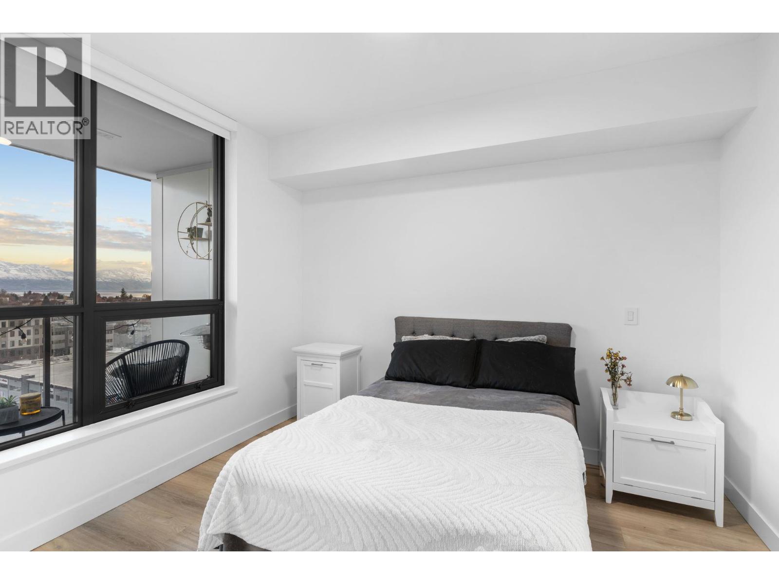 Welcome to Bertram Block – a 2024 brand-new 2 bed, 2 bath condo in the heart of downtown Kelowna with lake, city and valley views from the 10th floor. This bright southeast corner home offers 805 sq. ft. of smart design, a split bedroom layout for privacy, air conditioning, large windows and a sleek modern kitchen with quartz countertops and stainless steel appliances. Step onto your covered deck and enjoy your morning coffee with a view. Resort-style amenities include a rooftop heated pool and spacious hot tub with 360 degree views, outdoor BBQ and lounge areas, bocce ball court, community gardens, fitness centre, dog run and dog wash, secure bike room, plus multiple indoor lounges and workspaces. One secure parking stall and a dedicated storage locker are included. Live steps to the lake, waterfront paths, groceries, shopping, Pilates and some of Kelowna’s best restaurants. Lock-and-leave convenience, Mission Group quality, and an unbeatable walkable lifestyle – this is downtown living done right. (id:58842)