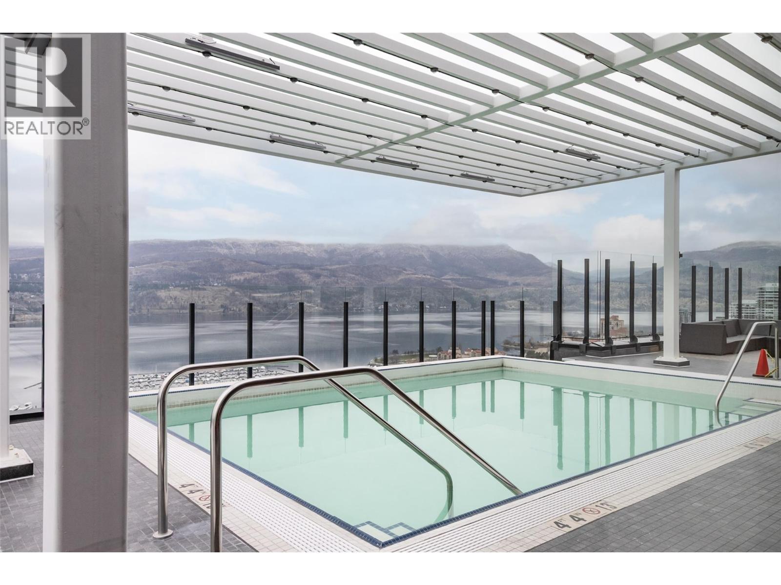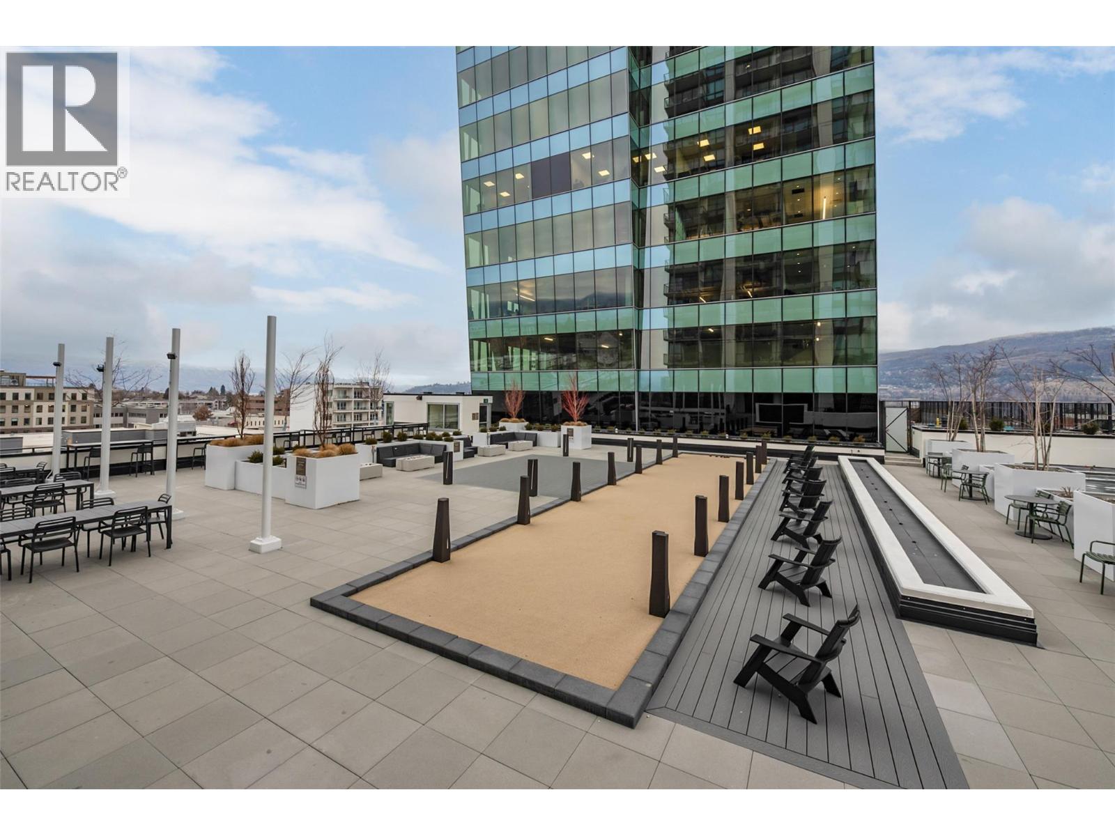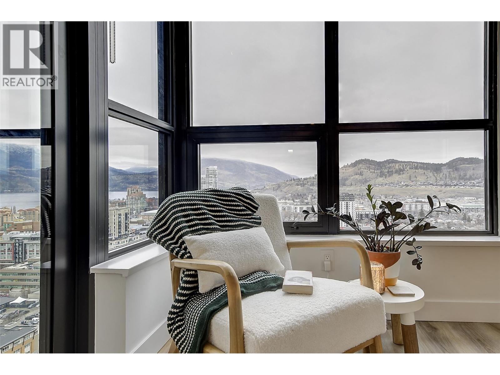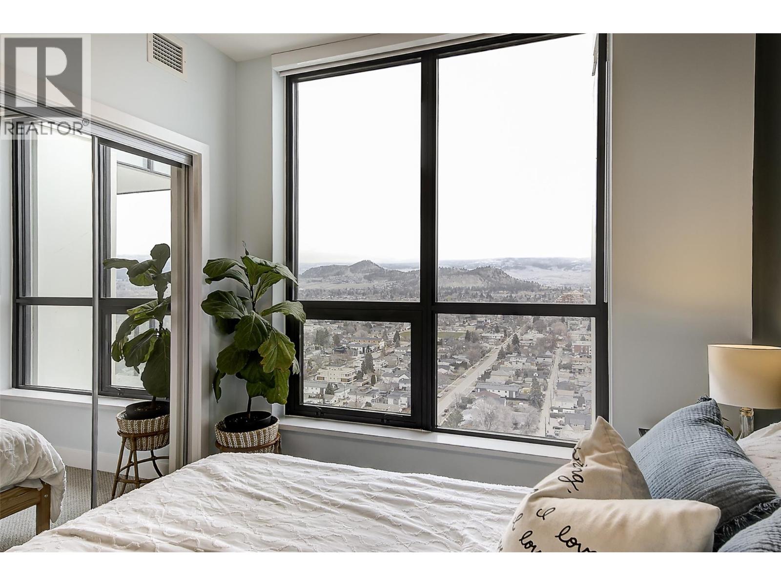 Welcome to Bertram, located in the heart of Downtown Kelowna. Recently built in 2024, this bright two-bedroom, two-bathroom outside corner unit is perched way up on the 25th floor where you can enjoy stunning unobstructed lake, city and mountain views. The 805 sq. ft. layout is thoughtfully designed with split bedrooms for privacy, air conditioning, expansive windows, and a clean modern kitchen featuring quartz countertops and stainless steel appliances. Step out onto the covered deck and enjoy a glass of wine with a beautiful view. Residents enjoy resort-style amenities including a rooftop heated pool and oversized hot tub with 360-degree views, outdoor BBQ and lounge areas, fitness centre, bocce ball court, dog run and wash station, community gardens, secure bike storage, and multiple indoor lounges and workspaces. One secure parking stall and a dedicated storage locker are included. Just steps to the lake, boardwalk, shopping, groceries, fitness/gyms, and some of Kelowna’s top restaurants, this home offers a exceptional walkable lifestyle and everything that makes Downtown Kelowna the place to be!. Hurry and Call your Realtor NOW!. (id:58842)