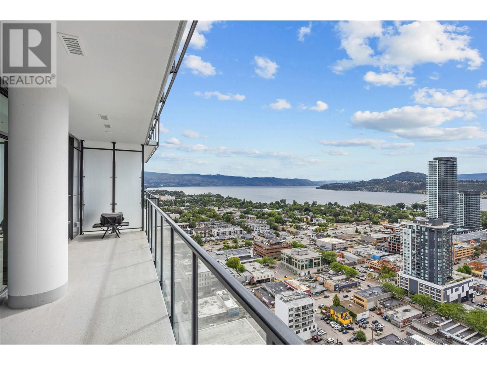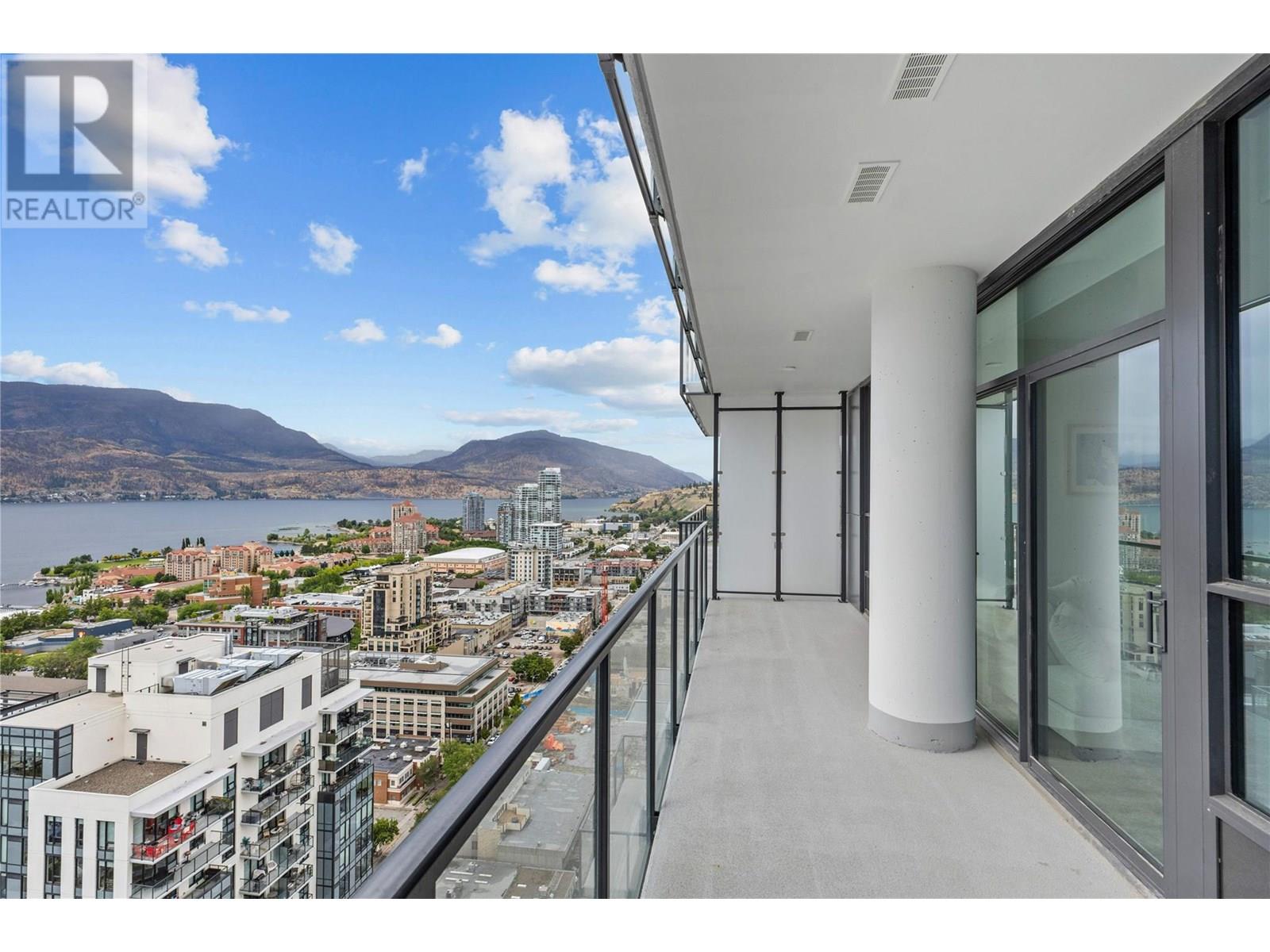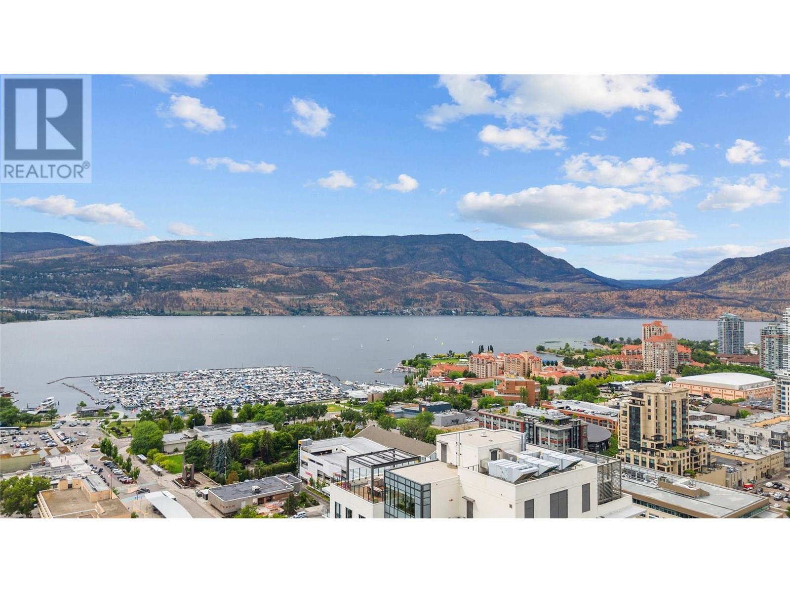 This spectacular 2 bed, 2 bath sub penthouse comes fully furnished and showcases sweeping 180 degree lake and city views that will leave you speechless. Located in a pet friendly building just four blocks from the beach and mere steps to Kelowna’s award winning restaurants, shops, entertainment, and Prospera Place arena. This is the ultimate Okanagan address. Step inside and discover a stylish, open concept layout with smart upgrades throughout, including luxury vinyl plank flooring and custom closet organizers in both bedrooms. Every piece of furniture and decor is included at a value close to $20,000 making this home truly turnkey, whether you're moving in or adding to your investment portfolio. And the amenities? Simply next level. Enjoy Kelowna’s finest rooftop pool and hot tub with panoramic views, plus outdoor BBQs, fire tables, lounge areas, a community garden, bocce court, secure bike storage, co-working space, and business centre. Whether you're searching for a full time residence, luxury vacation home, or a high performing rental, this sub penthouse delivers value, location, and lifestyle. (id:58842)