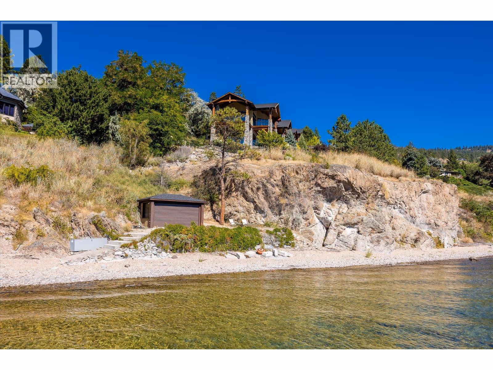 Over 7,000 square foot architectural masterpiece with a 2,200 square foot secondary home and shop, located on 2.35 acres with over 250 feet of prime lakeshore frontage in the prestigious Carr’s Landing area of Lake Country. Upon entering this gated estate, you drive on your heated driveway to the main residence, passing the secondary home, beach volleyball court, playhouse, vineyards, & mature landscaping. The home, built by renowned Team Construction, offers extensive beam work & all the upgrades one would expect. The four bedroom plus two den and office, seven bathroom layout also provides many deck spaces, all situated to maximize the stunning views provided on this bluff. In-floor heating, security system, sauna, smart-home technology, elevator, & a media room are just a few of the upgrades within this home. The outdoor entertainment space is second to none, with seamless indoor/outdoor flow that leads to an outdoor kitchen, koi pond, large pool with a water slide, kids pool, and hot tub area. The craftsmanship of the home must be seen in person to appreciate, with quality of materials throughout. The second home offers; wine making area below with storage, main floor with a large workshop (two car lifts), & a functional two bedroom layout with a massive deck. The foreshore area has a structure for storage & a licensed dock with lifts. Located under the prestigious O’Rourke Family Estate. This level of waterfront estates does come along often, especially in one of the most desirable areas in the Valley. (id:58842)