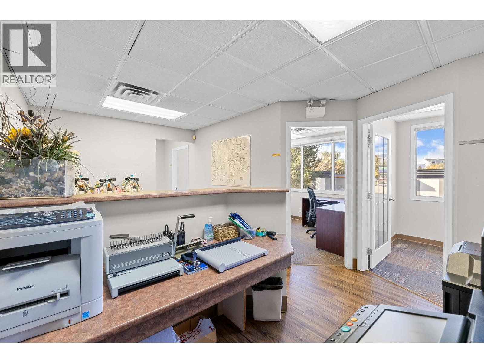 High exposure office space for lease in the heart of Kelowna. Prominent Highway 97 location. Second-floor strata office space offering 2,334 sq. ft. of bright and functional layout. The premises include 10 private offices, a large meeting room or bullpen area, a kitchen, and a welcoming reception space. Abundant natural light throughout with large windows in most offices. Professional office environment ideal for medical, tech, legal, or administrative use. On-site parking available for staff and clients. Located along Kelowna’s main corridor, this property provides excellent exposure, accessibility, and convenience near Orchard Park Mall, shopping, dining, and public transit. (id:58842)