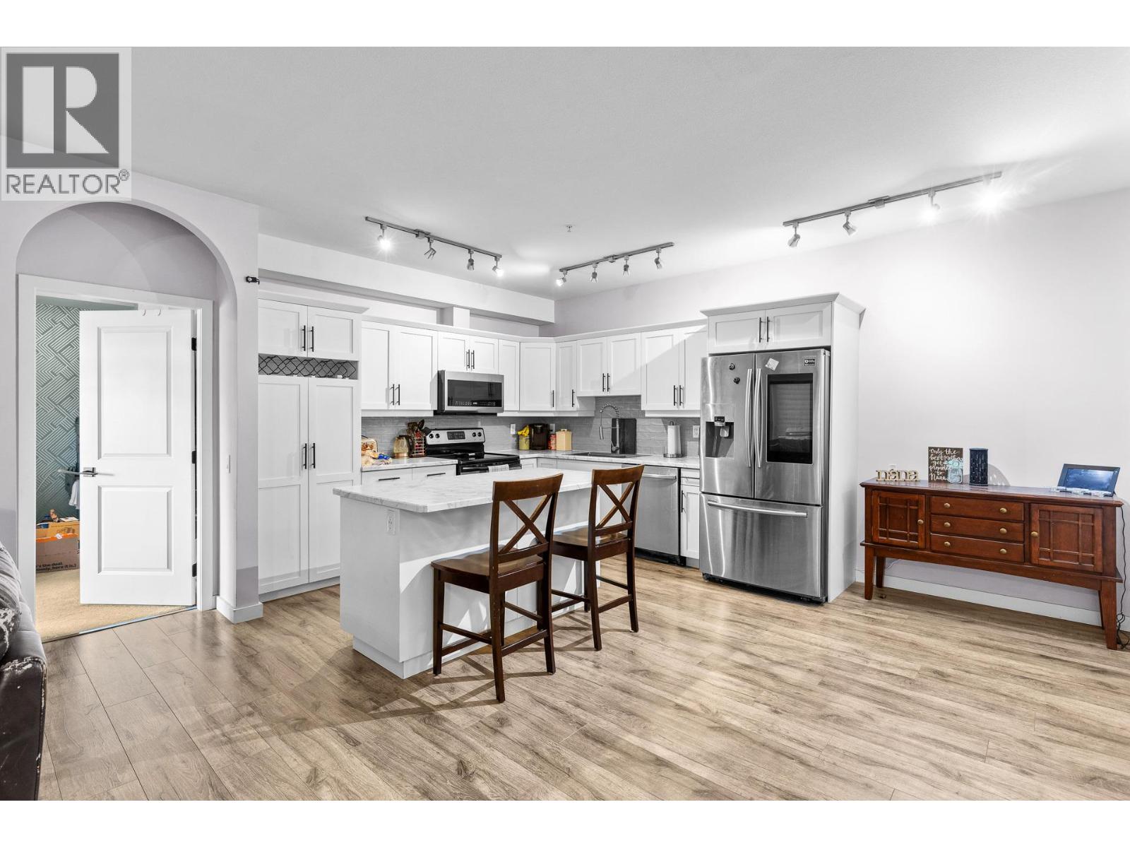 Crafted for your lifestyle, this beautifully maintained home in the sought-after Artisan development showcases the popular “Sanderson” plan with thoughtful design and quality construction throughout. Featuring 8’6” ceilings, oversized windows that fill the space with natural light, and stylish finishes including upgraded laminate and tile flooring, this unit offers both comfort and modern appeal. The building itself is rich in character with authentic brick and timber accents, a high-speed elevator, professional landscaping, and an impressive 1,100 sq ft residents’ rooftop patio, perfect for entertaining. Enjoy the convenience of BBQs permitted on your private deck, along with a storage locker and the rare bonus of two, secure parking stalls, and ample guest parking. Ideally located close to all amenities, this home is within walking distance to elementary and middle schools and just steps to the UBCO bus route. Only a short 10-minute drive brings you to UBCO, Kelowna International Airport, or downtown Kelowna, making this an excellent option for homeowners and investors alike. Pet friendly: 2 cats or dogs or one of each. Dogs no taller than 19"" at the shoulder. Service dogs are exempt. (id:58842)