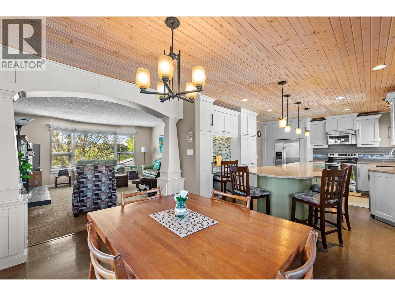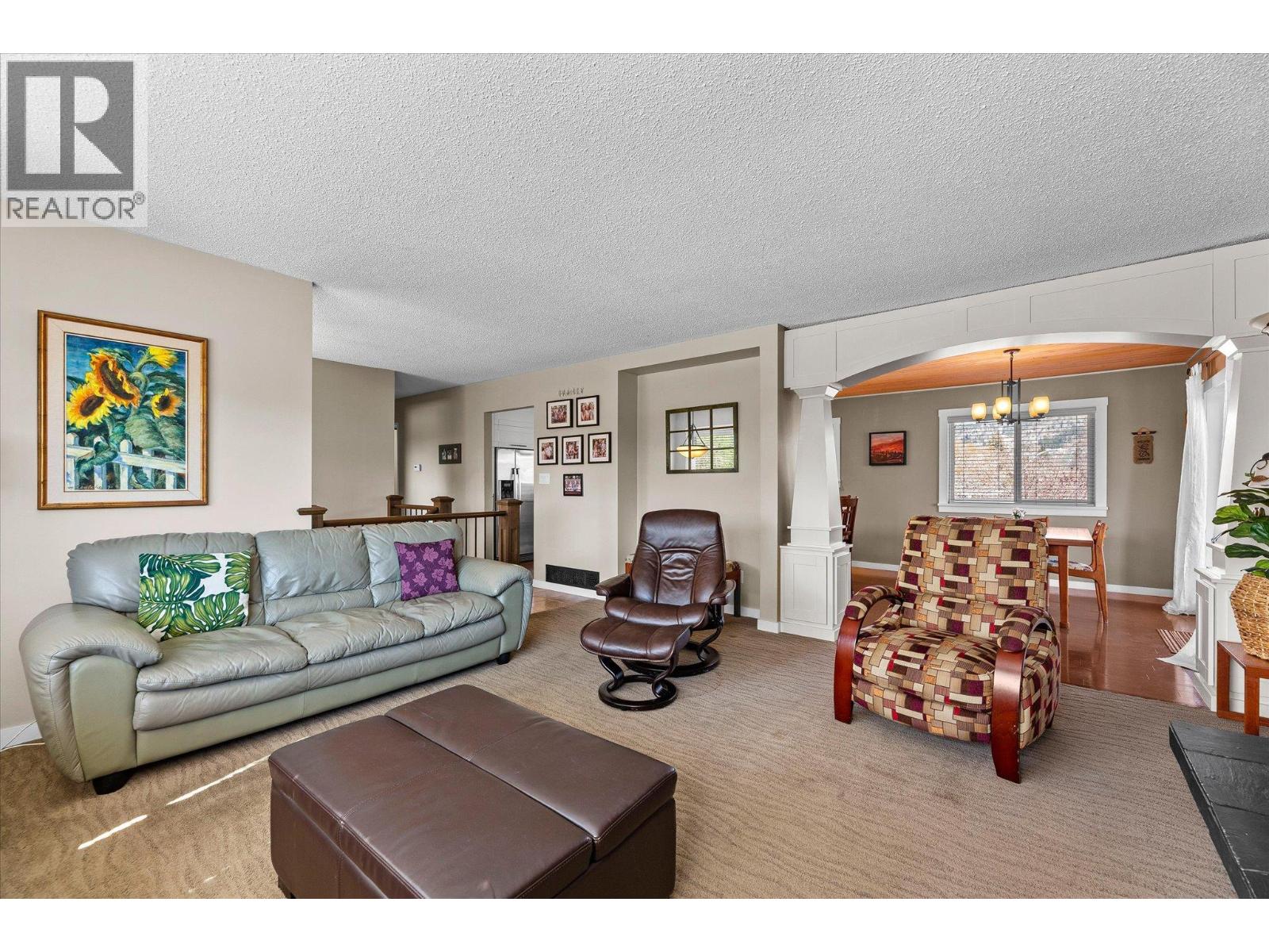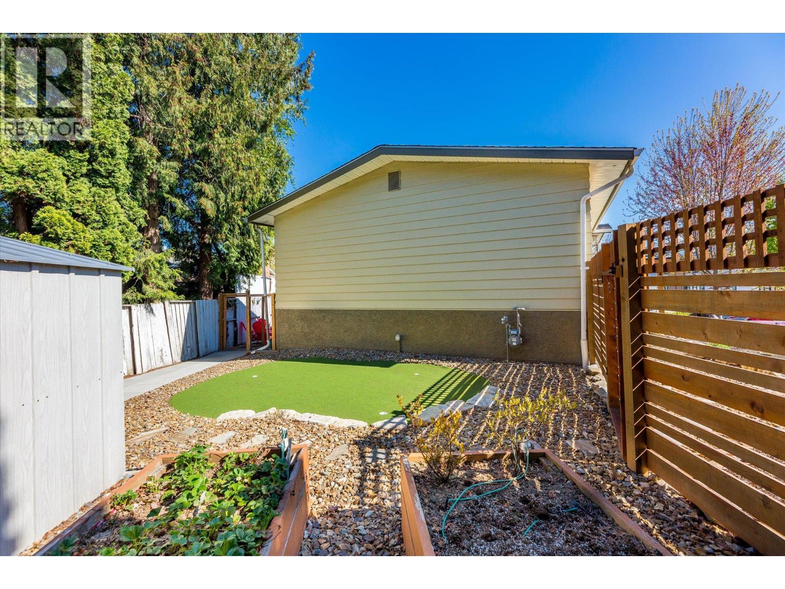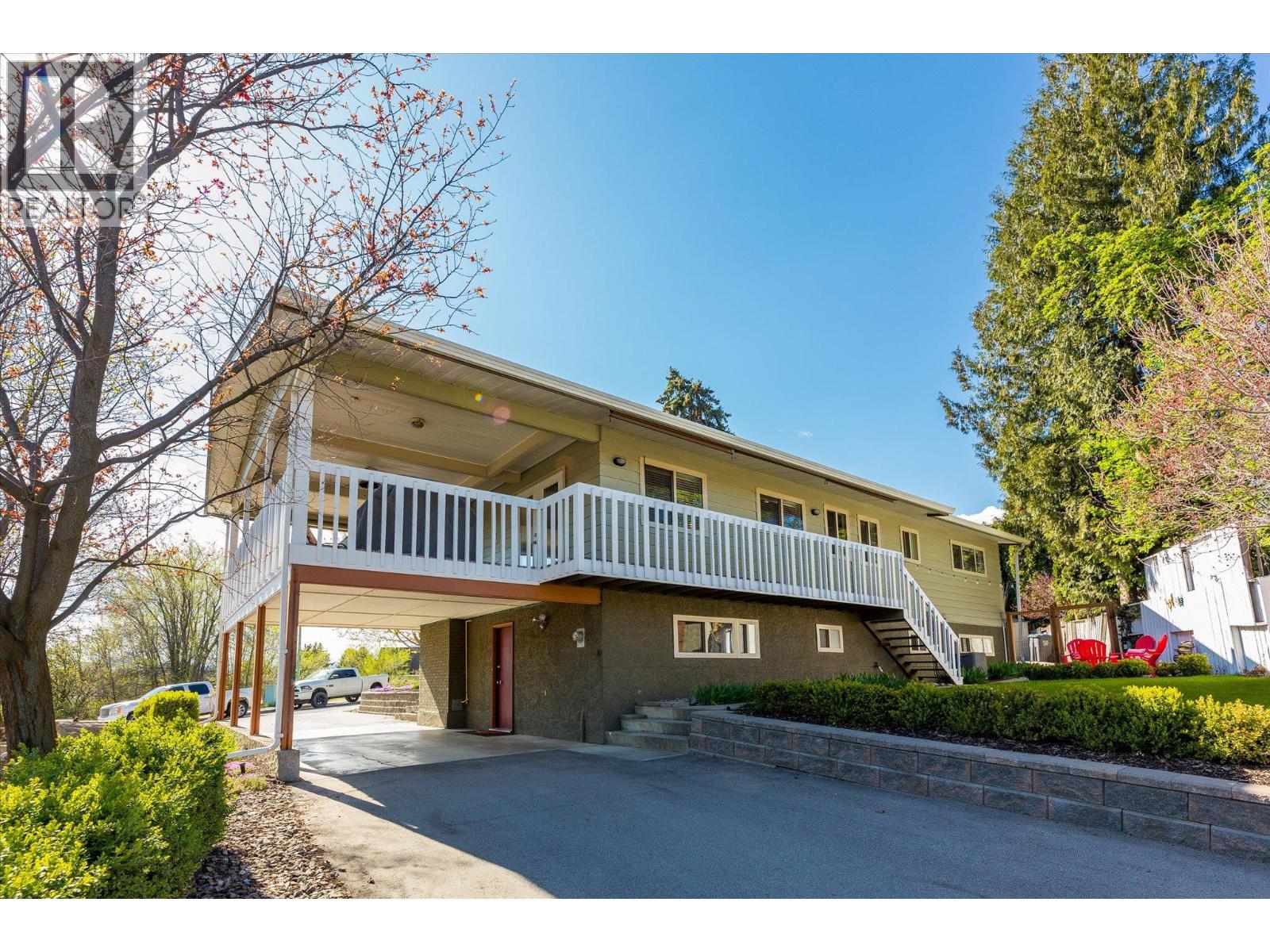 lenmore Family home loaded with value. Located with great access to schools, parks, Rail Trail, downtown access to the water front boardwalk and more. This 5 bedroom, 3 bath home includes a private 2 bedroom in-law suite/ summer kitchen complete with full kitchen, 3 piece bath and shared laundry. The main level has 3 spacious bedrooms, a 4 piece main bath and 3 piece en-suite with tile and glass shower. Entertain friends and family around the quartz counter top island in the remodeled kitchen with access to the Dining area, Living room with Gas Fireplace and double French doors to the covered patio. The lower level has a generous sized family room with wood burning fireplace, entry to the 2 bed suite, laundry room, and storage space. The low maintenance yard is completed with underground irrigation to flower and garden beds and your own private putting green to practice your ""short game"". There is also a great outdoor patio area which makes a perfect oasis space to read a book or entertain with friends. Lots of parking on the half moon driveway with a covered carport. This home has been maintained and cared for over the years. Glenmore listing at its best. (id:58842)