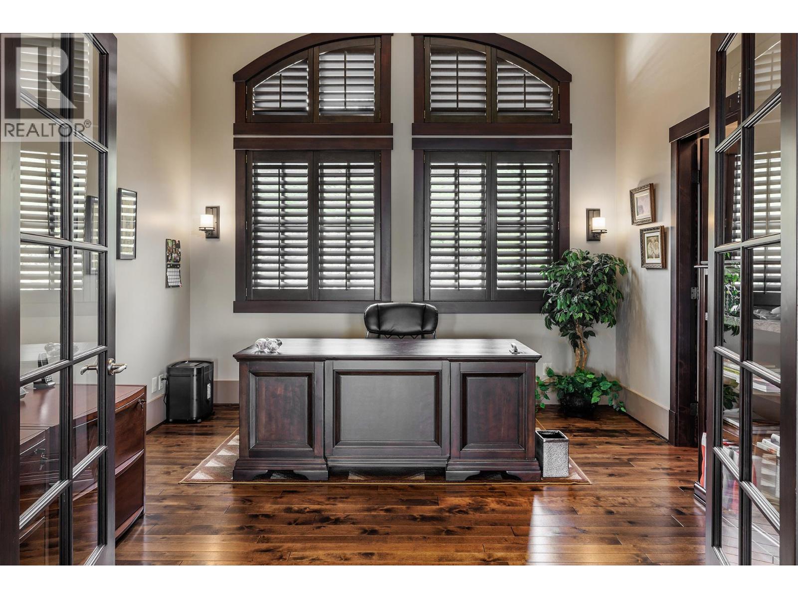 Tucked behind a gated entry in exclusive Vineyard Estates, this custom-built residence offers a rare blend of privacy, craftsmanship, and sweeping Okanagan Lake views—shared by just four homes on the street. Designed for both everyday living and exceptional entertaining, the main level features expansive open-concept living with a great room, dining area, gourmet kitchen, walk-in pantry, and a luxurious primary suite. Rich hardwood floors, a striking rock fireplace, and oversized windows frame the lake beyond. The chef’s kitchen is appointed with granite countertops and professional-grade appliances, flowing seamlessly to a covered view patio. The primary retreat includes its own fireplace, spa-inspired ensuite, and walk-in closet, plus a dedicated main floor office. The lower level is an entertainer’s dream with a full wet bar, theatre room, wine cellar, and space for billiards, along with three additional bedrooms. Outdoors, enjoy a private oasis with a saltwater pool, hot tub, and beautifully landscaped grounds. Smart home integration, Sonos audio throughout, Control4 automation, heated triple garage, and high-end mechanical systems complete this offering—just minutes to wineries, beaches, and all West Kelowna amenities. (id:58842)