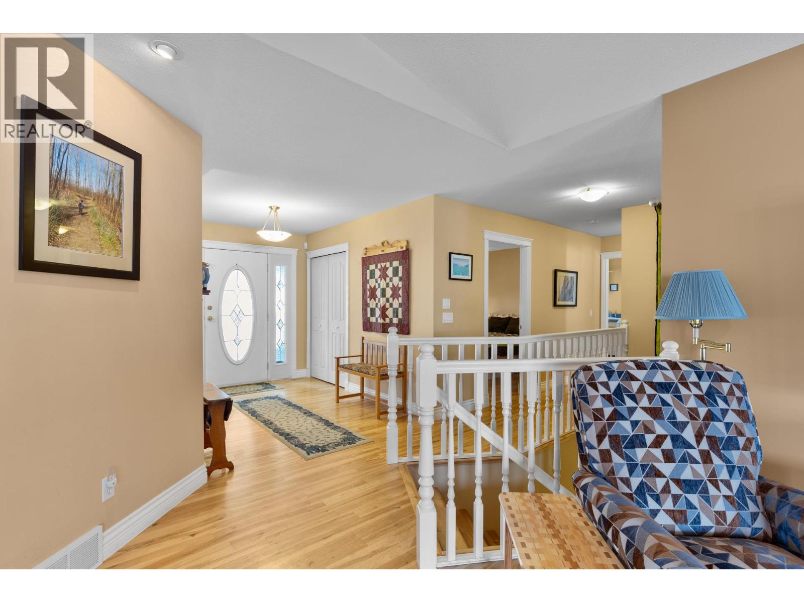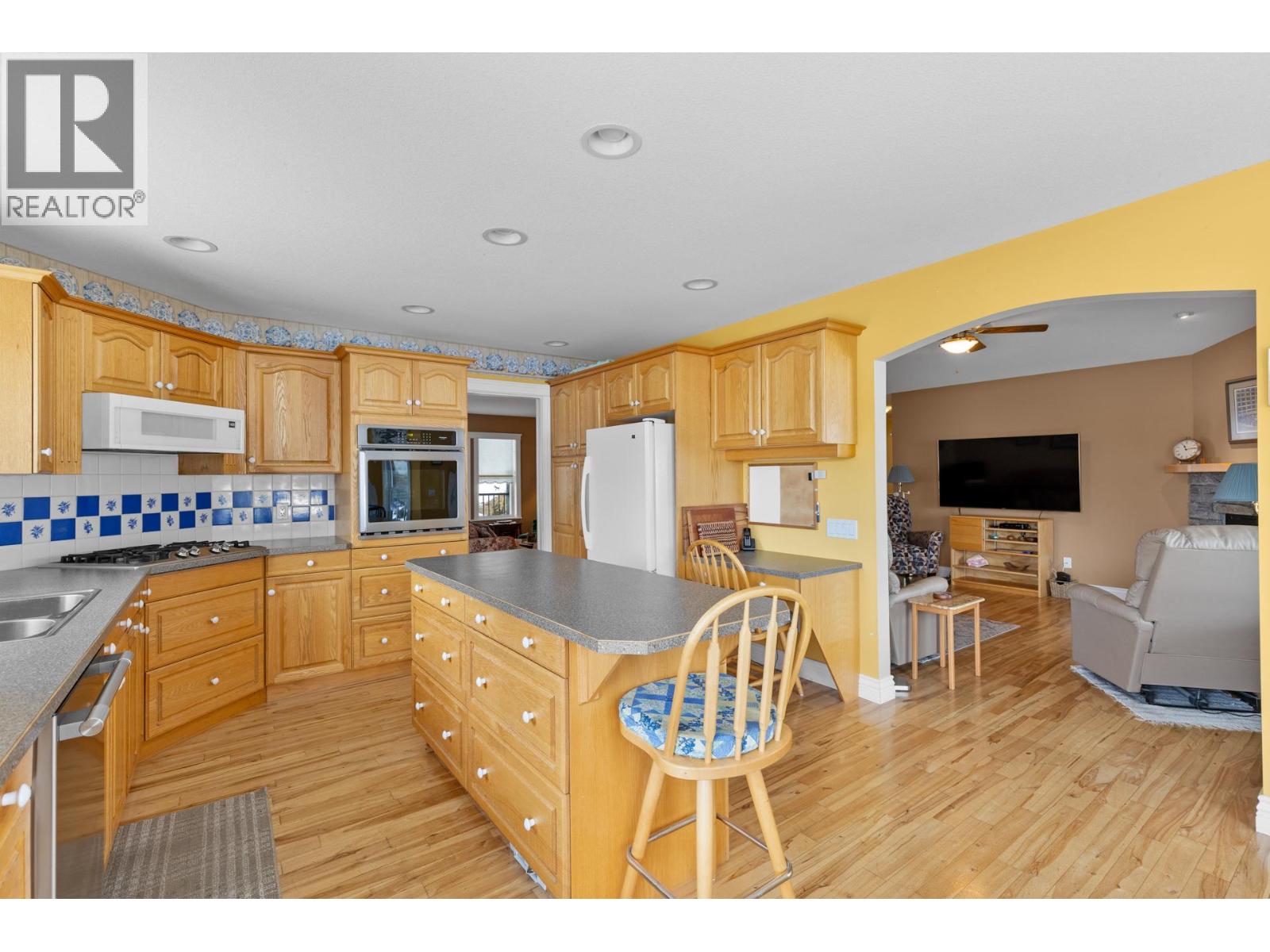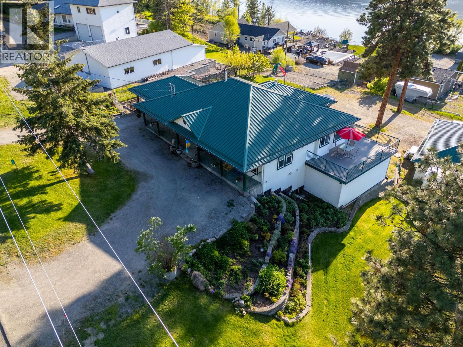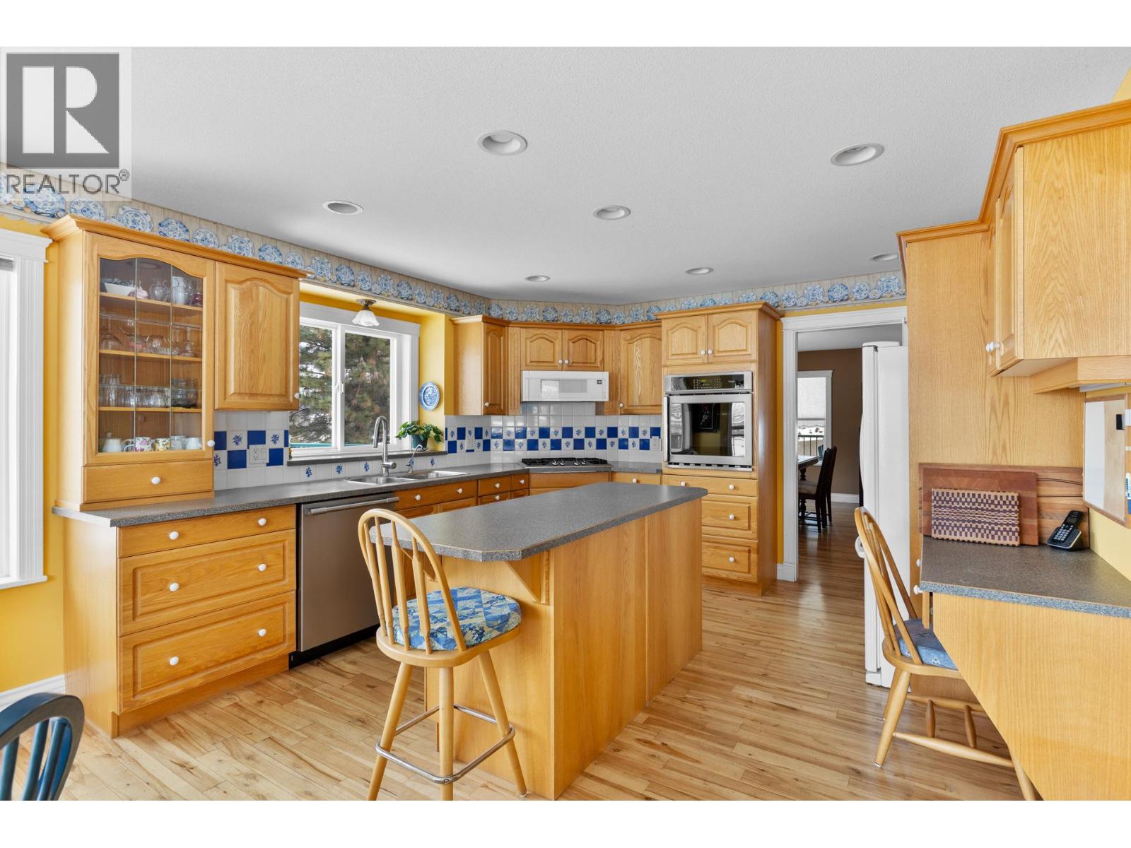 From the moment you arrive, you will be captivated by this charming property which is just steps from Wood & Kalamalka Lake. Set on a 0.618 corner acre lot, the home offers expansive mountain and great lake views all with elegant curb appeal. The thoughtfully designed wrap-around driveway welcomes you with a covered front porch and carport. A second driveway services the detached workshop and multiple garages, with ample parking for vehicles, a boat or an RV. Inside the residence built by Harmony Homes, you will find an expansive main floor featuring hardwood floors, as well as wide and accessible hallways and doorways. Enjoy the west facing deck off your main floor primary bedroom, wrapped beautifully around the kitchen for more entertaining space. Every detail has been considered for functionality and convenience, including a secondary entrance to turn this walk out basement into a one bedroom suite. The garage enters into the unfinished, spacious mechanical room and can easily be locked off for your own storage. Fenced in, irrigated yard offering a sanctuary of greenery and vibrant life. Mature ponderosa pines, fruit trees and grapevines create a stunning ambience, while a greenhouse and raised garden beds add to the property’s charm for gardening enthusiasts. The 80-amp heated workshop, includes wide-plank wood flooring, barn doors, an I-Beam and hot water on demand for the half bathroom. In proximity to boat launches, Kaloya Regional Park, the Okanagan Rail Trail and much more. (id:58842)