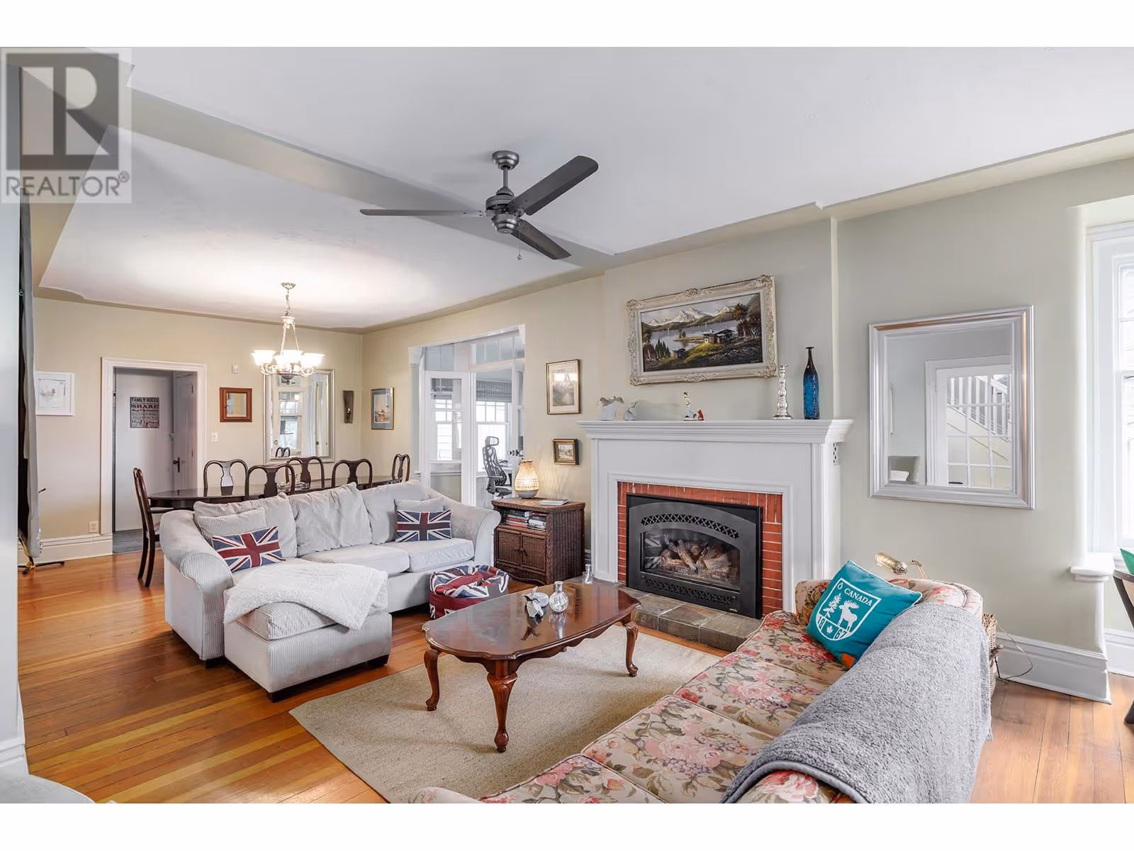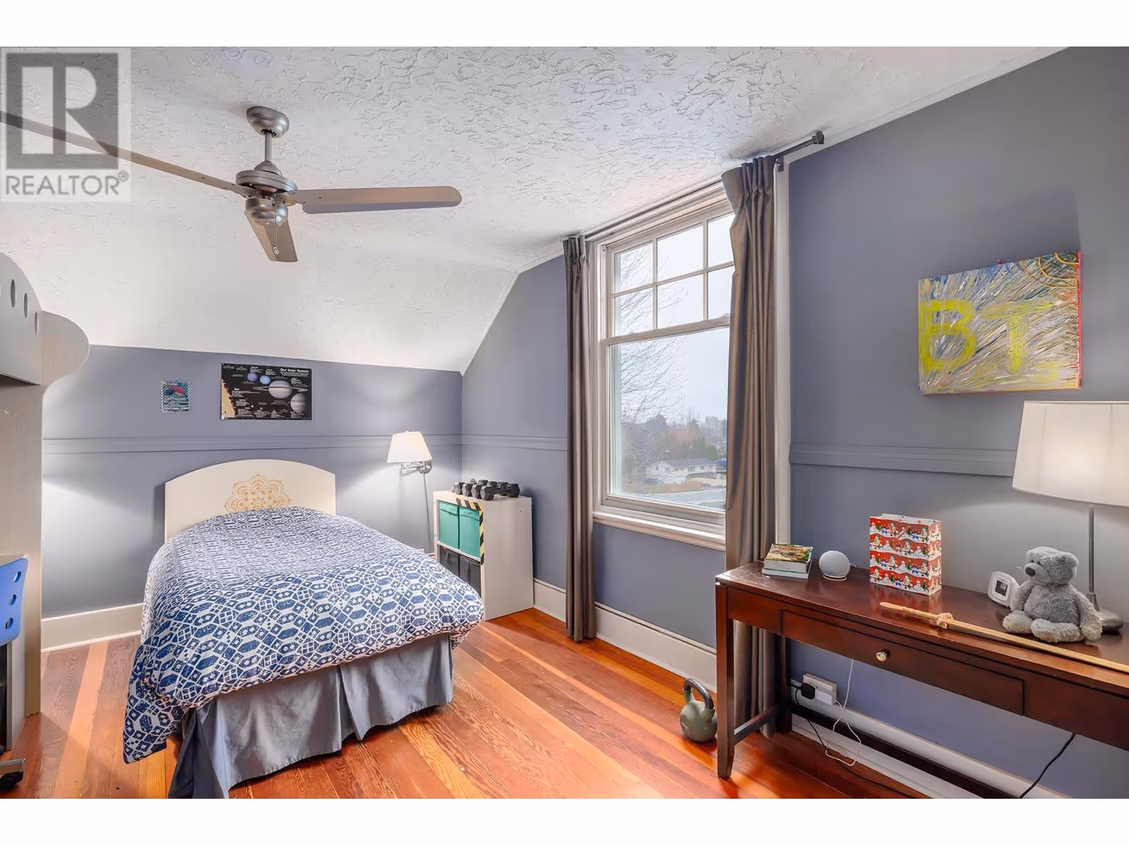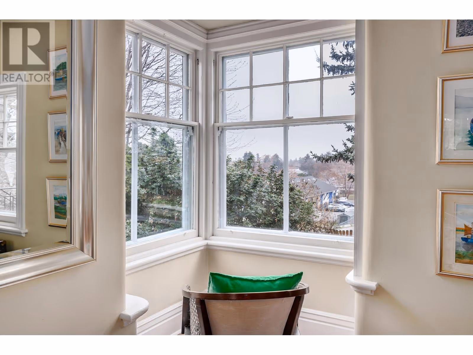 Charming Edwardian style detached 1910 home underpinned by invisible office architecture giving: the busy family or home office workers superb breakout spaces. Entrance hall leads to study/TV/dining room or to open living and dining area. A quiet two person study area framed by a Japanese Maple sits alongside. The kitchen boasts granite counters, farmhouse sink, traditional fittings and Mielle dishwasher. Adjacent laundry room with TROMM Washer and Dryer leads to 3 piece bathroom. A shelved mudroom/pantry serves the kitchen. Upstairs, four double bedrooms, one featuring studio/home office with inspiring long views. A breakout 'cosy nook' office sits on the landing. All bedrooms and studio areas have Lan access. Bathroom includes original cast iron tub. Modern amenities include; central air, gas fireplace, designer garden all above ample storage in large shelved crawl space. With hardwood floors, feature ceilings, and original glass details, this home exudes timeless elegance. A thorough Renovation in 2013 included; electrical, foundations and luxury studio rooms plus large doored carport addition. MF1 zoning allows for Carriage house or block development potential. Downtown beaches a cycle path away. City views.  Gym and Parkinson Recreation down the street, Orchard Mall and stores minutes away. It was used recently for a movie set and is undoubtedly a 'one of a kind' blend of historic ambiance, usable homework space, great location and modern convenience. (id:58842)