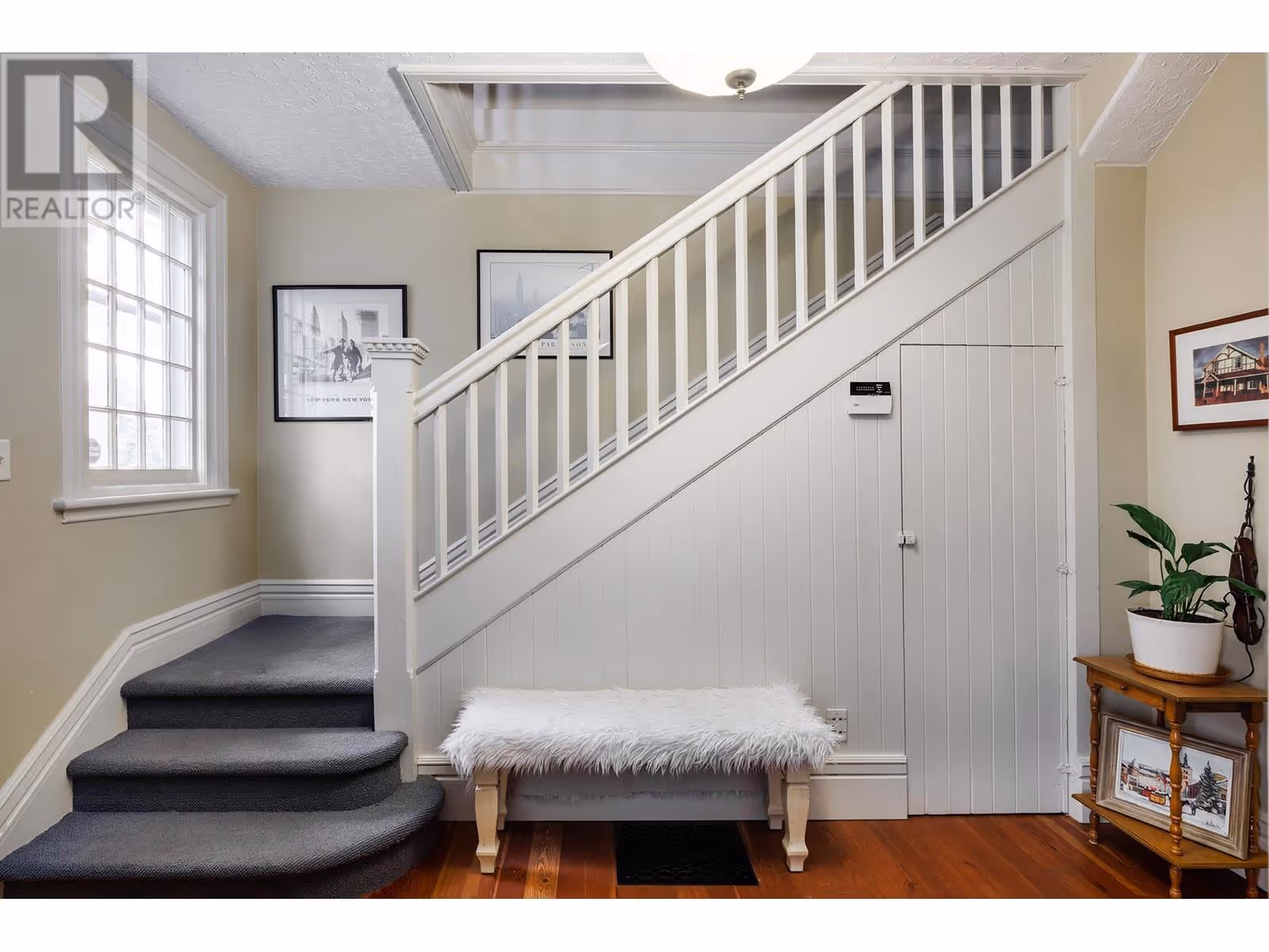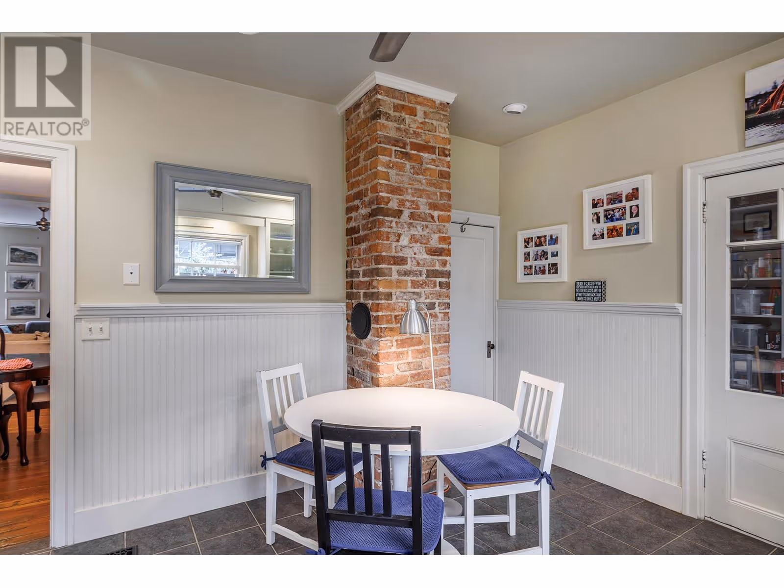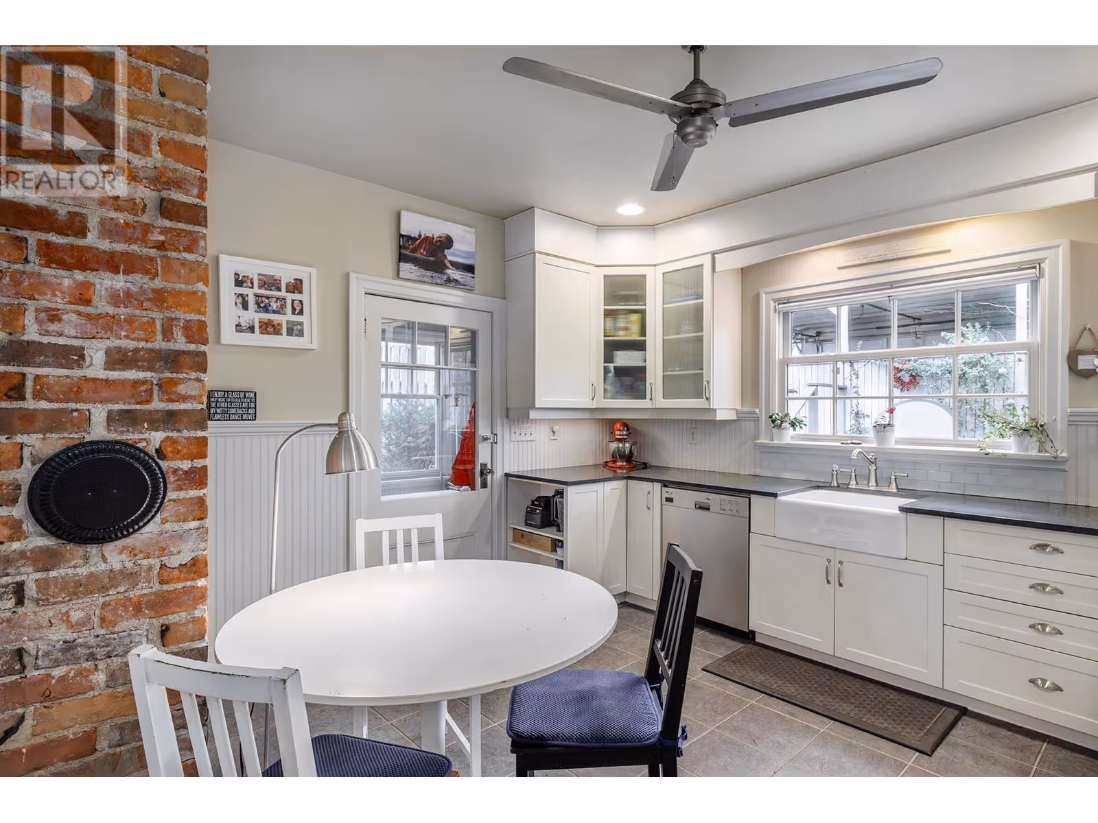 Charming Edwardian style detached 1910 home underpinned by invisible office architecture giving: the busy family or home office workers superb breakout spaces. Entrance hall leads to study/TV/dining room or to open living and dining area. A quiet two person study area framed by a Japanese Maple sits alongside. The kitchen boasts granite counters, farmhouse sink, traditional fittings and Mielle dishwasher. Adjacent laundry room with TROMM Washer and Dryer leads to 3 piece bathroom. A shelved mudroom/pantry serves the kitchen. Upstairs, four double bedrooms, one featuring studio/home office with inspiring long views. A breakout 'cosy nook' office sits on the landing. All bedrooms and studio areas have Lan access. Bathroom includes original cast iron tub. Modern amenities include; central air, gas fireplace, designer garden all above ample storage in large shelved crawl space. With hardwood floors, feature ceilings, and original glass details, this home exudes timeless elegance. A thorough Renovation in 2013 included; electrical, foundations and luxury studio rooms plus large doored carport addition. MF1 zoning allows for Carriage house or block development potential. Downtown beaches a cycle path away. City views.  Gym and Parkinson Recreation down the street, Orchard Mall and stores minutes away. It was used recently for a movie set and is undoubtedly a 'one of a kind' blend of historic ambiance, usable homework space, great location and modern convenience. (id:58842)