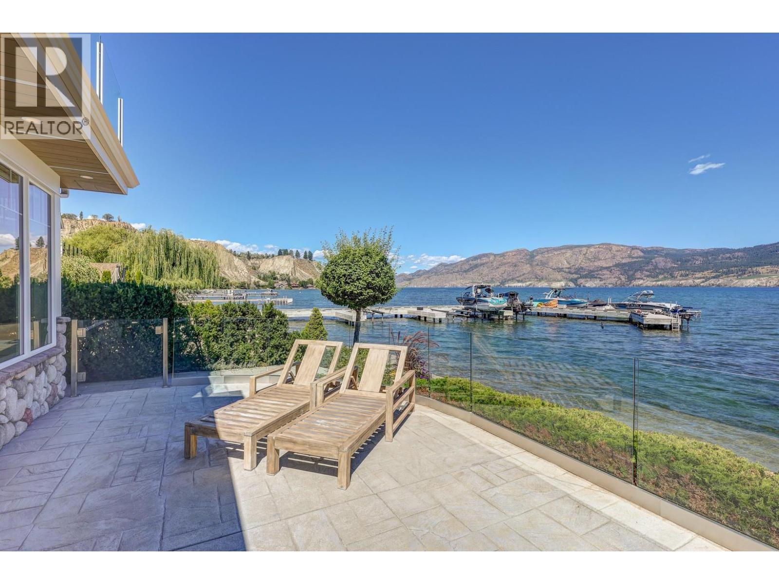 Experience waterfront living in the exclusive Willow Shores community of Summerland. Fully renovated in 2025, this 4 bedroom, 3 bath residence is essentially a brand-new home, offering modern luxury & low-maintenance living with sweeping views of Okanagan Lake. The main level is perfect for entertaining with wide-plank white oak floors, custom millwork, and a feature wall with gas fireplace. The chef’s kitchen boasts quartzite counters w/ waterfall island, new top-of-the-line Sub-Zero/Wolf appliances, and a beverage station with wine fridge. The dining area is wrapped in lakeview windows, the living room flows to a partially covered patio w/ heaters, Sonos speakers, outdoor shower, and firepit. Upstairs, the primary suite features vaulted ceilings, fireplace, power blinds, and spa-inspired ensuite with heated floors, soaker tub, and digitally controlled shower. Two add'l bedrooms, a media/family room with surround sound, and new laundry complete the level. Every detail has been updated: flooring, bathrooms with Kohler fixtures, paint, doors, fireplaces, Sonos audio, security system, and new mechanicals including Lennox furnace, Tosot heat pump, and Rinnai hot water system. The EV-ready double garage has epoxy floors, new doors, and custom storage. Manicured grounds lead to a sandy beach, lounge areas, and a dock with your own boat slip w/ 10,000 lb lift. This like-new lakeshore home is an exceptional Okanagan property perfect for enjoying the waterfront lifestyle. (id:58842)