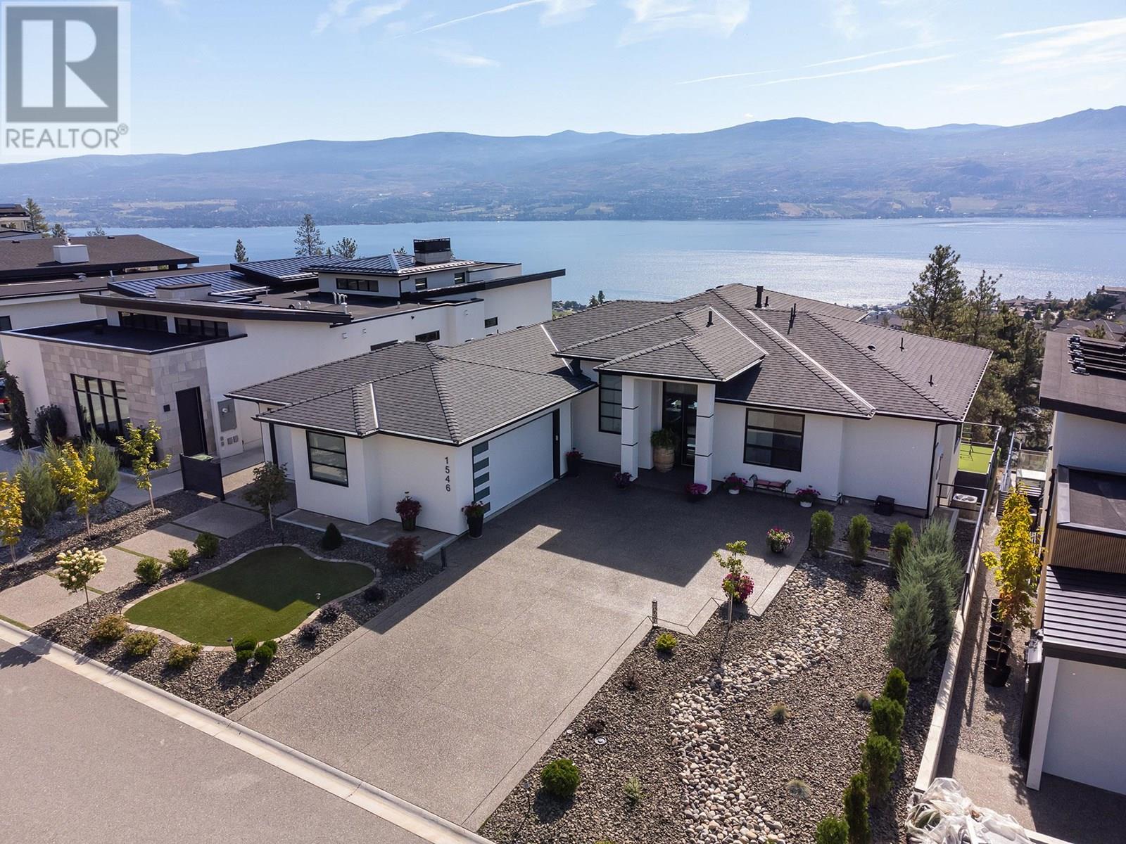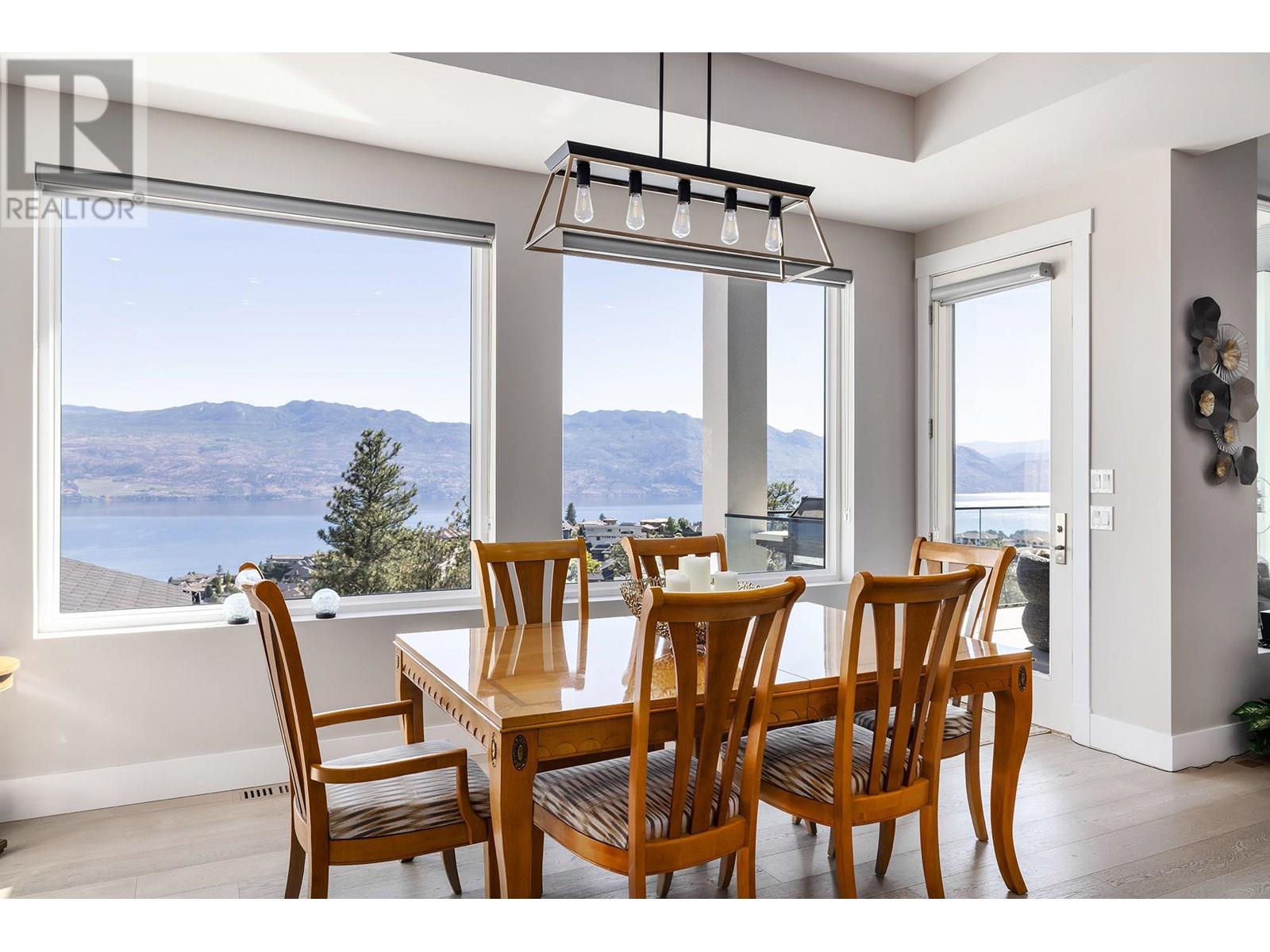This stunning 4,363 sq ft home, built in 2021, offers a perfect blend of modern luxury and natural beauty. The open-concept main living area boasts 12-foot ceilings and large windows that frame breathtaking lake and mountain views. A seamless indoor-outdoor flow leads to a covered patio, ideal for enjoying the scenery. The designer kitchen features a large quartz island, a butler’s pantry, and top-tier appliances—perfect for entertaining. The primary suite is a serene retreat with panoramic lake views, a spacious walk-in closet, and a luxurious ensuite with a dual vanity, frameless shower, and soaker tub. The lower level is an entertainer's dream, with a family room, second kitchen, and games room/home theatre. Three additional bedrooms and two full bathrooms provide comfort for guests and the potential for a suite. Outside, a private backyard oasis awaits, with a 14 x 28 heated pool, an outdoor shower, an 8 x 8 hot tub, and a cabana bar area with a 2 piece bathroom. The three-car garage and second driveway offer ample space for vehicles and toys. Located minutes from the lake, hiking trails, and West Kelowna’s Wine Trail, this home offers an unmatched lifestyle of luxury and convenience. (id:58842)