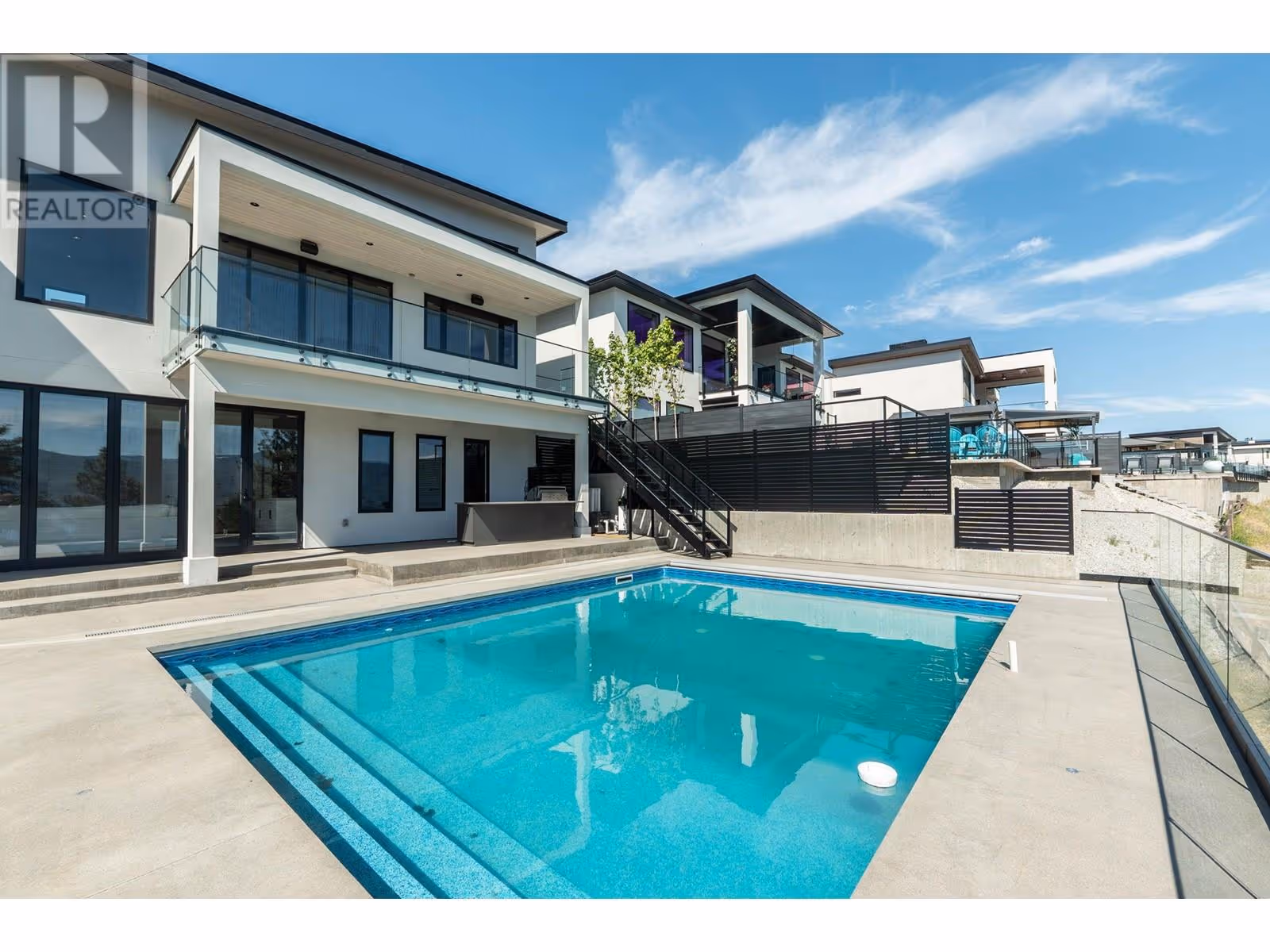 Commanding lake views, daring contemporary style & flawless craftsmanship—1550 Viognier Dr is Liv Custom Homes' latest statement of Okanagan luxury. Step inside to soaring 14' vaulted ceilings, expansive windows & seamless transitions that blur the line between indoors & out-a stage set for unforgettable evenings under the stars. The kitchen is a showpiece of modern indulgence boasting Fisher & Paykel & WOLF appliances, a butler’s pantry & sleek wine bar to fuel your finest celebrations. The living room stuns with a floor-to-ceiling gas fireplace while the primary suite is a private retreat crafted for pure pleasure: endless lake views, a couture-worthy walk-in closet & ensuite drenched in luxe finishes. A second ensuite bedroom, elegant home office & designer powder room complete the main floor's perfect layout. Downstairs the party continues: games room, wet bar, poolside change room, home theatre, gym space & 2 more bedrooms invite endless fun and relaxation. Bonus? A stylish legal suite, ideal for guests or added income. Outside your paradise awaits; a heated pool with auto-cover, outdoor kitchen, cozy fire table & manicured lawn create your private resort. Fully smart-home equipped, you control lighting, music, blinds, security, climate & more with just a touch. Rooftop solar slashes energy costs while the EV-ready oversized garage future-proofs your lifestyle. Minutes from beaches, hiking trails & the Westside Wine Trail—this is more than a home. It’s a statement. (id:58842)