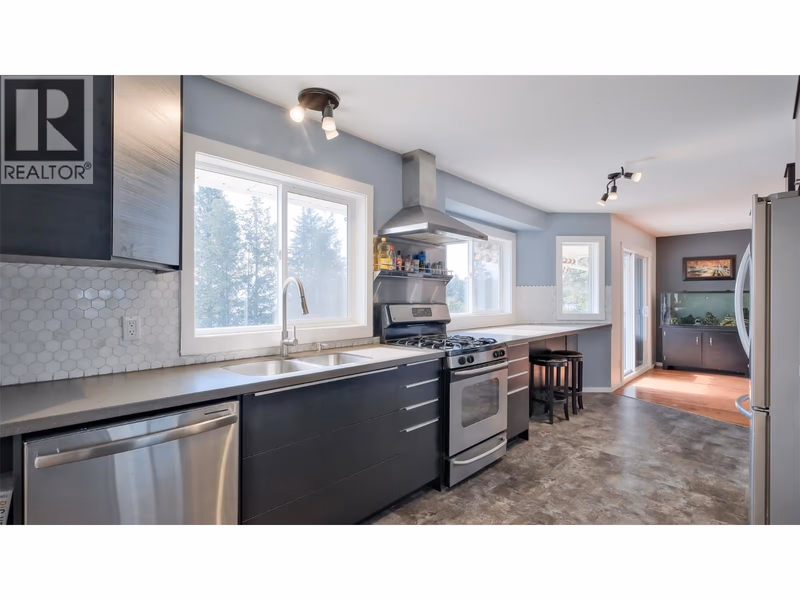 Welcome to this beautifully updated home that truly has it all. Tucked away on a peaceful cul-de-sac, this spacious 5-bedroom, 3-bathroom residence offers stunning panoramic views of the lake, city, and mountains. Step inside to find a bright and modern kitchen, with stone countertops, stainless steel appliances, and tons of extra storage—perfect for busy families or avid home cooks. A cozy breakfast nook overlooking Okanagan Lake makes every morning feel special. The living room features a large picture window that perfectly frames the view, along with a gas fireplace for those cozy evenings. Just off the kitchen, the spacious deck offers plenty of room for relaxing or entertaining while taking in the sweeping scenery. The primary bedroom includes a 3-piece ensuite and a large closet, while two additional bedrooms on the main floor open onto a walk-out patio leading to the backyard. Downstairs, you’ll find two more rooms and a big rec room, perfect for a playroom or perhaps a media space. The double garage with extended driveway provides room for vehicles or even a small boat or RV. Recent upgrades include a new furnace, AC unit, hot water tank, and energy-efficient windows and doors—so you can move right in with peace of mind. Just 14 minutes to downtown Kelowna, this home blends luxury, functionality, and unbeatable views into one incredible package. Come see for yourself—this a West Kelowna GEM! (id:58842)