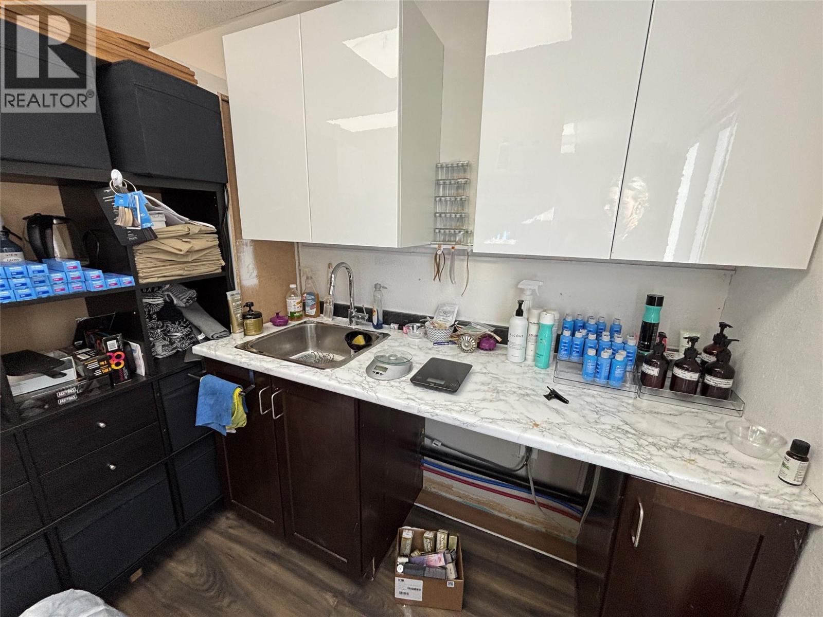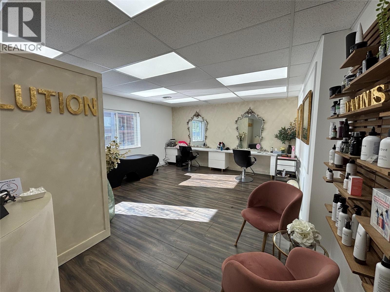 Bright, modern, and move-in ready, 201–1579 Sutherland Ave is a 392 SF second-floor unit offering a turnkey opportunity in a desirable central area of Kelowna. The space features durable vinyl plank flooring and a wall of south-facing windows that flood the unit with natural light, creating an inviting and elevated environment for both clients and customers. Currently built out as a hair salon, the open-concept layout offers excellent flexibility for a variety of uses, complemented by thoughtful improvements including two sinks—one of which is located within a well-designed storage area featuring ample counter space and shelving. Located within a well-maintained professional office building, the unit includes one dedicated parking stall, convenient access to a shared front parking lot for clients and customers, and use of common second-floor washrooms. A rare opportunity to secure a bright, functional, and versatile space in one of Kelowna’s most accessible central locations. Lease is triple net; the gross monthly rent includes estimated additional rent of $7.50 psf 2025. (id:58842)