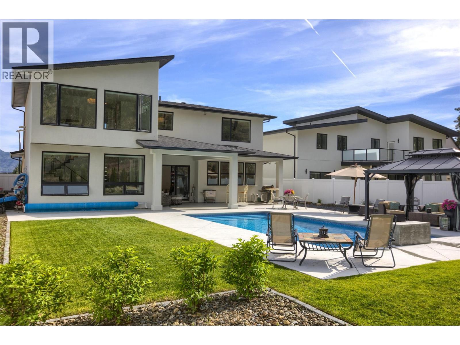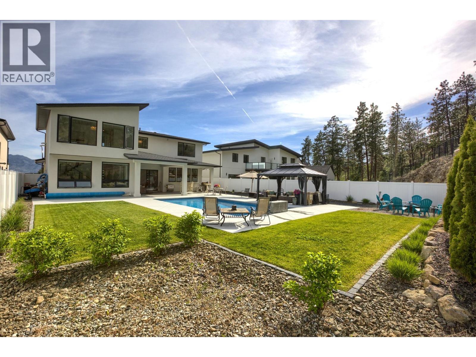 Step into this one of a kind modern residence where thoughtful design meets effortless luxury. Nestled on a quiet cul de sac, this ideally shaped lot allows the main living area to showcase the expansive, resort-style backyard framing a lavish, sparkling pool with waterfall, kitchen pass through, multiple patio areas, and manicured lawns and gardens. The main level’s expansive open concept layout is both inviting and functional, perfectly balancing everyday comfort with ease of entertaining. At the heart of the home is a chef inspired kitchen featuring pass through windows, high end appliances, an oversized quartz island, two wine fridges, built in wall ovens, a beverage station, a side by side refrigerator, and a true prep kitchen. Upstairs, you’ll find three generously sized bedrooms including a luxurious primary suite with a walk in closet and a spa like ensuite complete with a freestanding tub, glass shower, and heated floors. A flexible rec area with a wet bar rounds off this level, ideal for lounging or cozy TV nights. Whether you're welcoming extended family or looking for rental income, the bright, fully self contained one bedroom legal suite is thoughtfully located above the garage providing both privacy and separation from the main home. This exceptional home is complete with an expansive driveway and a triple car garage, all set on a newly developed, peaceful cul de sac.. (id:58842)