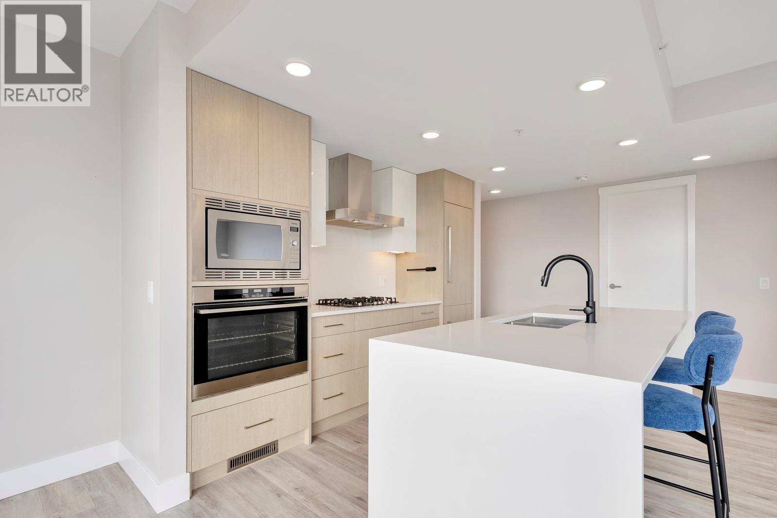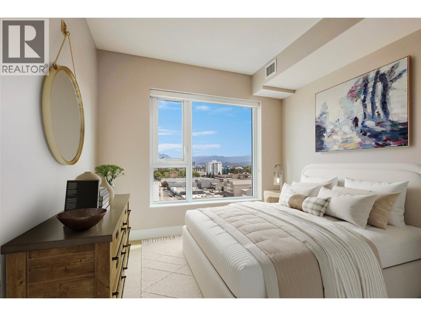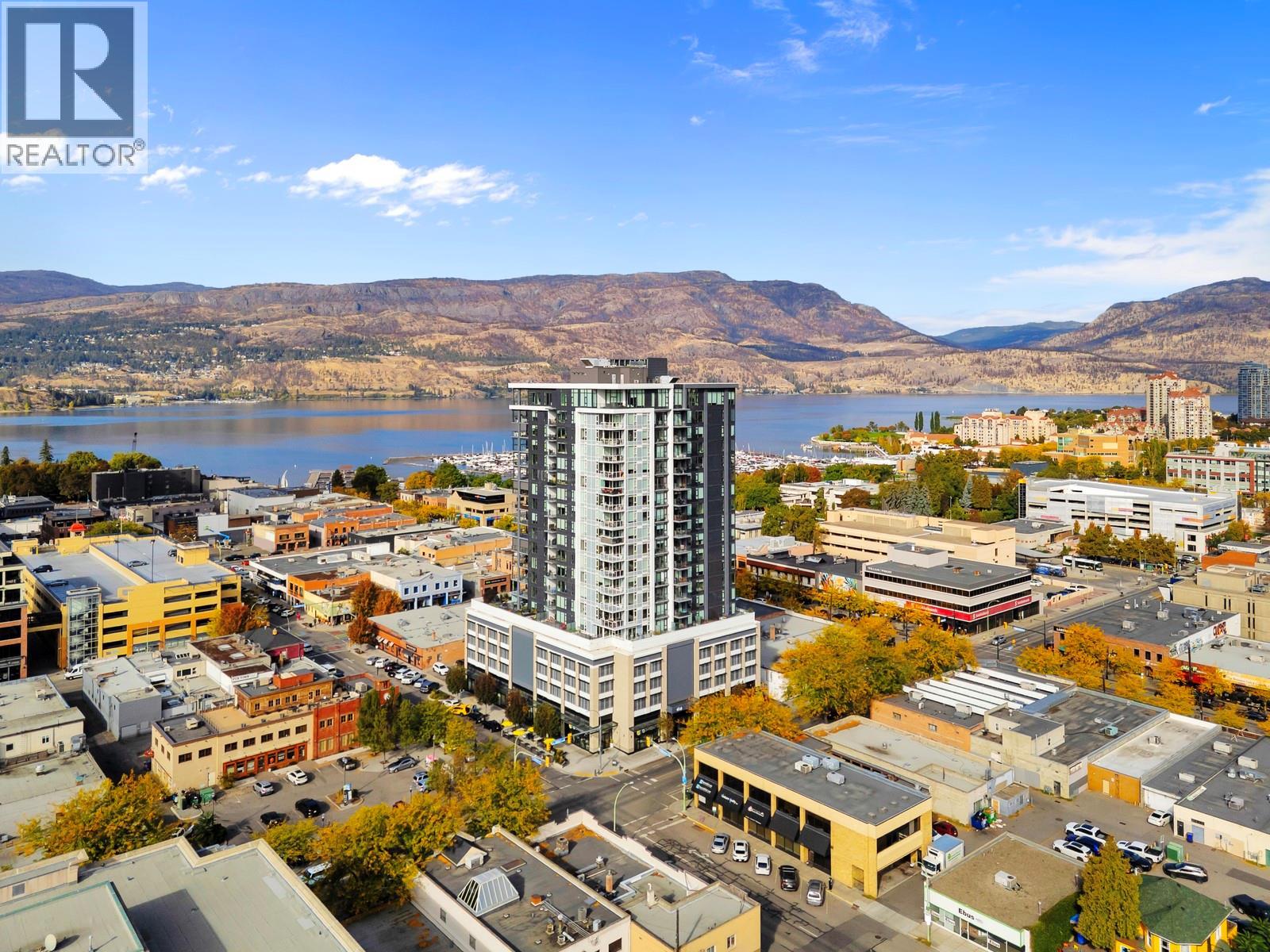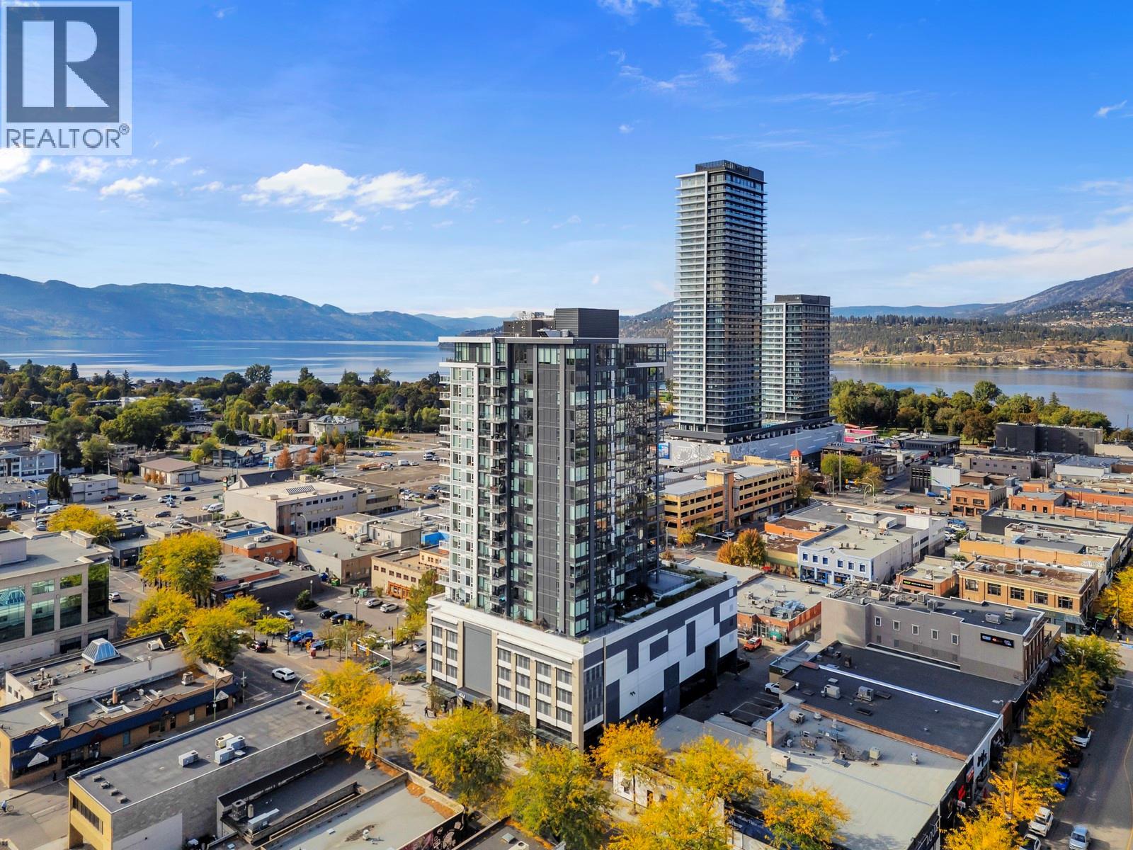 Nestled in the sought-after Ella building, this spacious corner condo offers the best of downtown Kelowna living. Enjoy a bright, open design that blends modern comfort with everyday convenience. The south/east facing corner layout features large floor-to-ceiling windows that fill the home with natural light and a generous covered patio—perfect for relaxing, outdoor dining, or entertaining. Inside, the smart split-bedroom floor plan provides privacy, while the full-size kitchen with a large eat-up island makes hosting easy. Added touches include integrated appliances, blinds, a laundry closet with extra counter space and storage, and warm finishes throughout that make the space feel inviting. Building perks include secure parking, dual elevators, a rentable guest suite for visiting family or friends, and a thoughtful range of amenities that help keep strata fees low. Pet lovers will appreciate the two-pet policy with no size limit and the convenient dog wash station. Located just steps from Bernard Avenue and Lake Okanagan, you’ll enjoy a walkable lifestyle with shops, restaurants, and the waterfront all nearby. This vacant home is ready for you to move in and enjoy downtown living at its best. (id:58842)