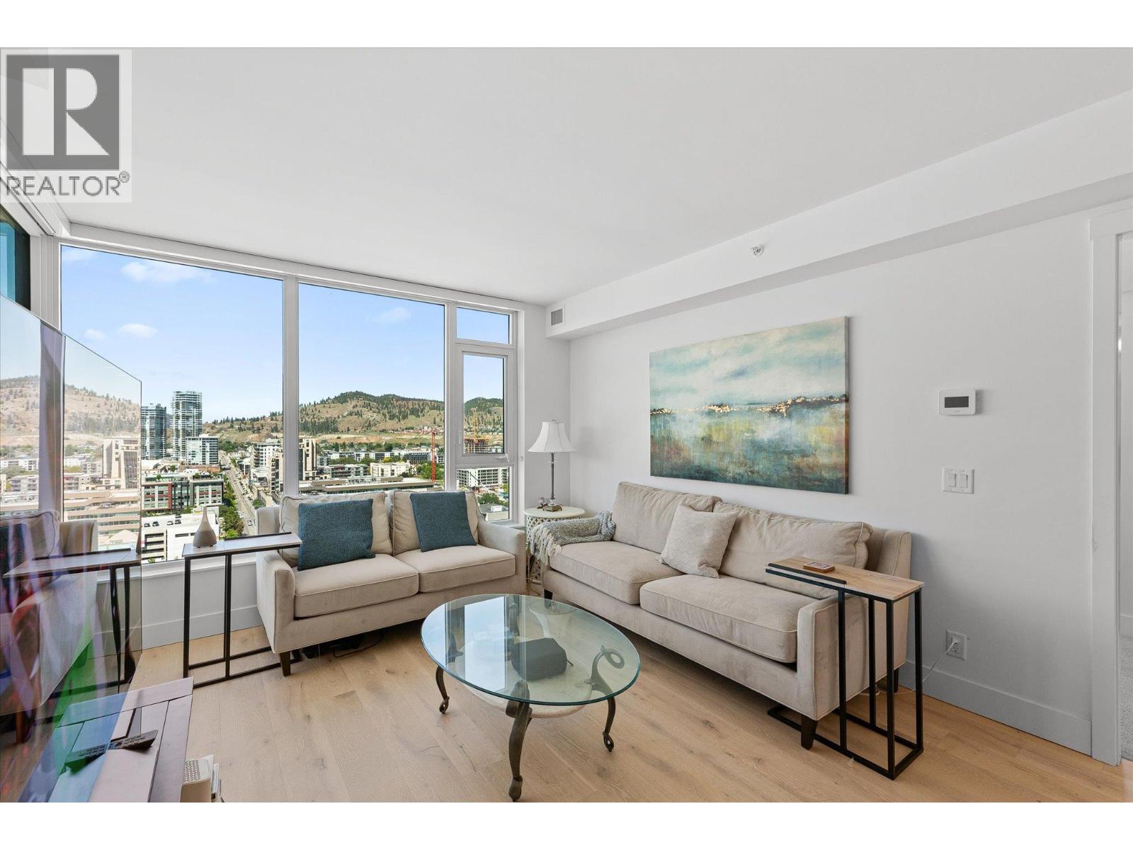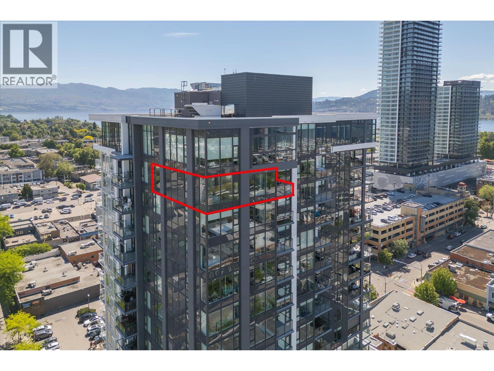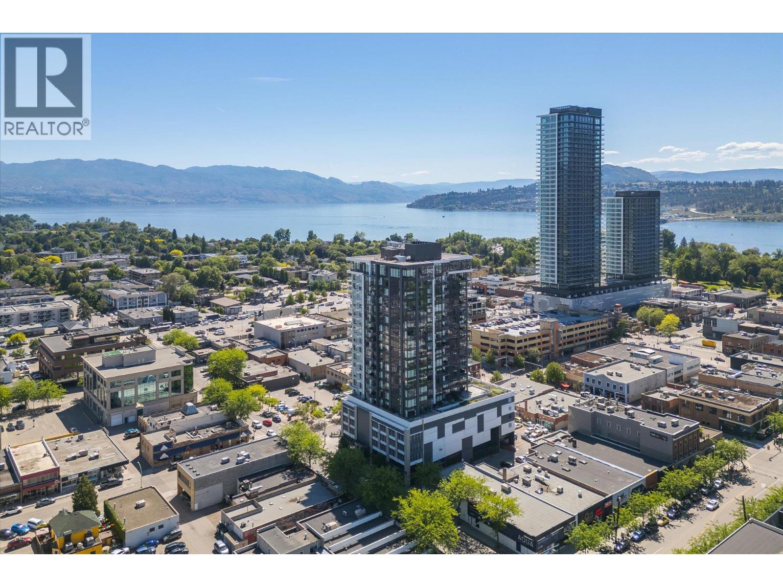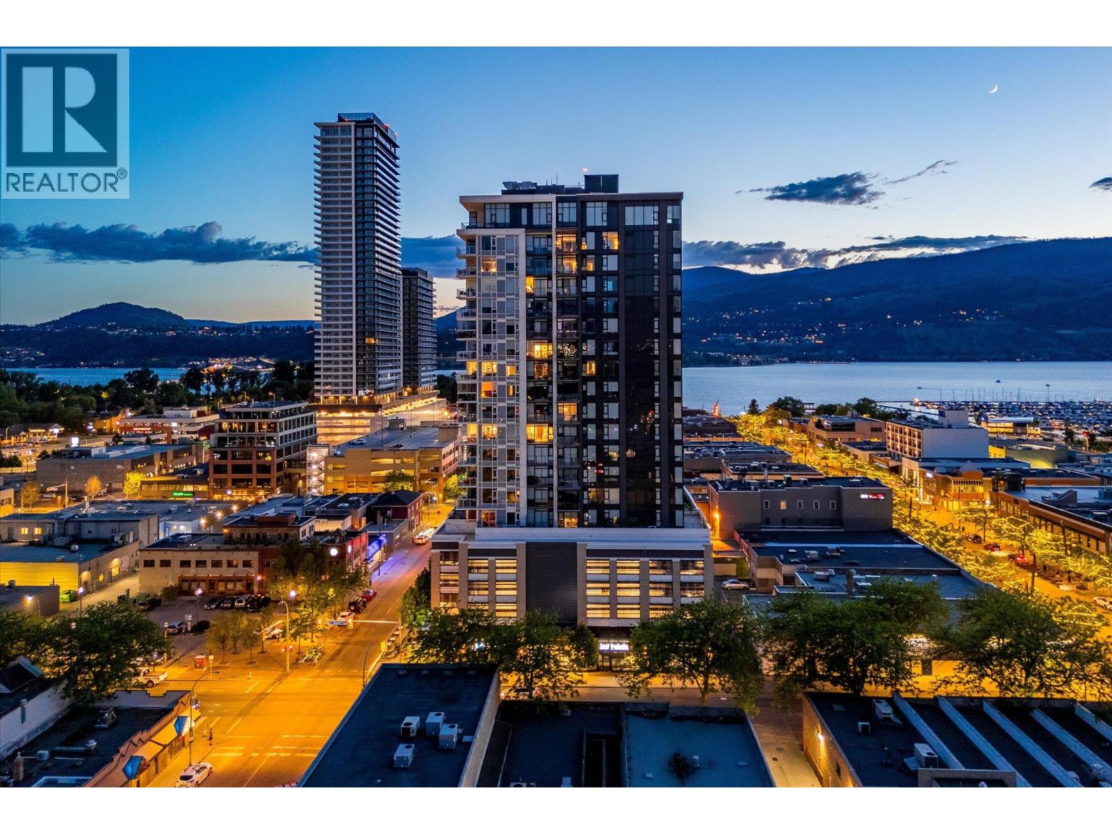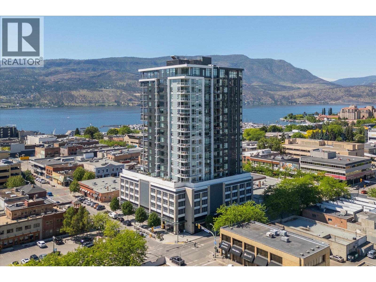 LAKEVIEW SUB-PENTHOUSE CORNER UNIT WITH 2 SECURE PARKING STALLS! This unit in ELLA blends modern design with sweeping lake views and the ultimate downtown lifestyle that's stylish, elevated, and perfectly located. This bright, corner-unit condo soars above the city, offering panoramic vistas of the lake, marina, and mountains that stretch out from nearly every window. Inside, clean lines, massive windows, and thoughtful upgrades elevate the space. The sleek kitchen features a gas range, wall oven, built-in wine fridge, waterfall countertops, and tons of storage— perfect for hosting or keeping things effortlessly organized. The open-concept layout flows into the living area, designated dining space, and out to a covered patio built for all-season enjoyment, complete with a gas BBQ hookup, ceiling-mounted heater, and jaw-dropping views. Wake up to the lake in the serene primary suite, complete with a walk-in closet outfitted with built-ins and a stylish ensuite featuring a dual vanity and bidet. Enjoy the added convenience of 2 parking spots *rare*, and a storage locker. Designed for urban living without compromise, ELLA offers thoughtful amenities like a pet wash, EV charging, and a bike wash/repair station—with no size or height restrictions on pets. Step outside and find yourself in the heart of it all: beaches, parks, hikes, cafes, restaurants, and shops are just steps away. Step into downtown living done right —book your showing and experience Kelowna from the top. (id:58842)